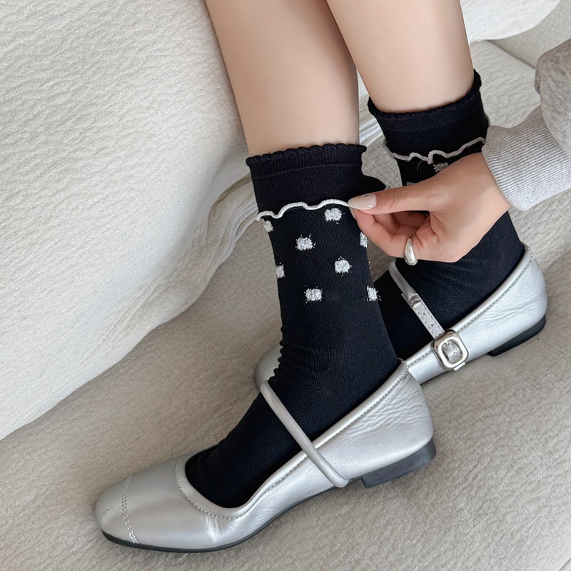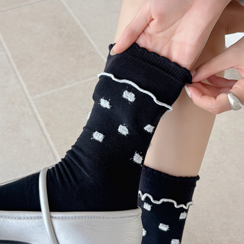 袜子女无骨堆堆精舒棉袜子学院风女袜秋冬简约百搭黑白简约标条纹