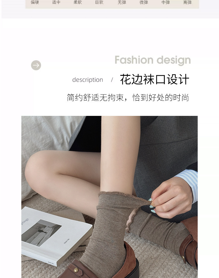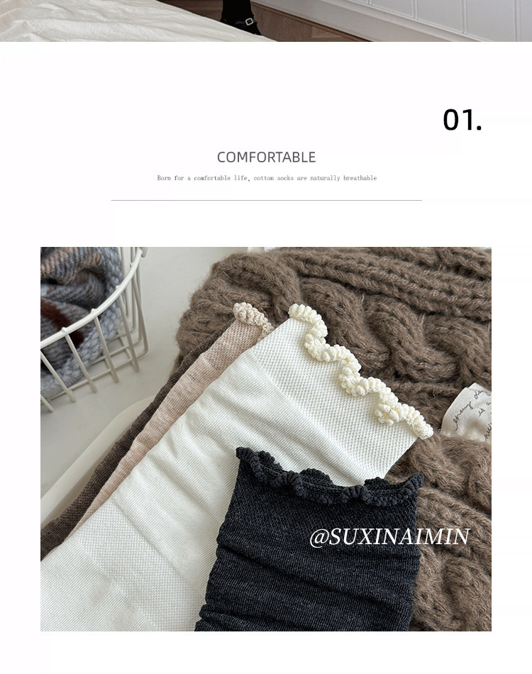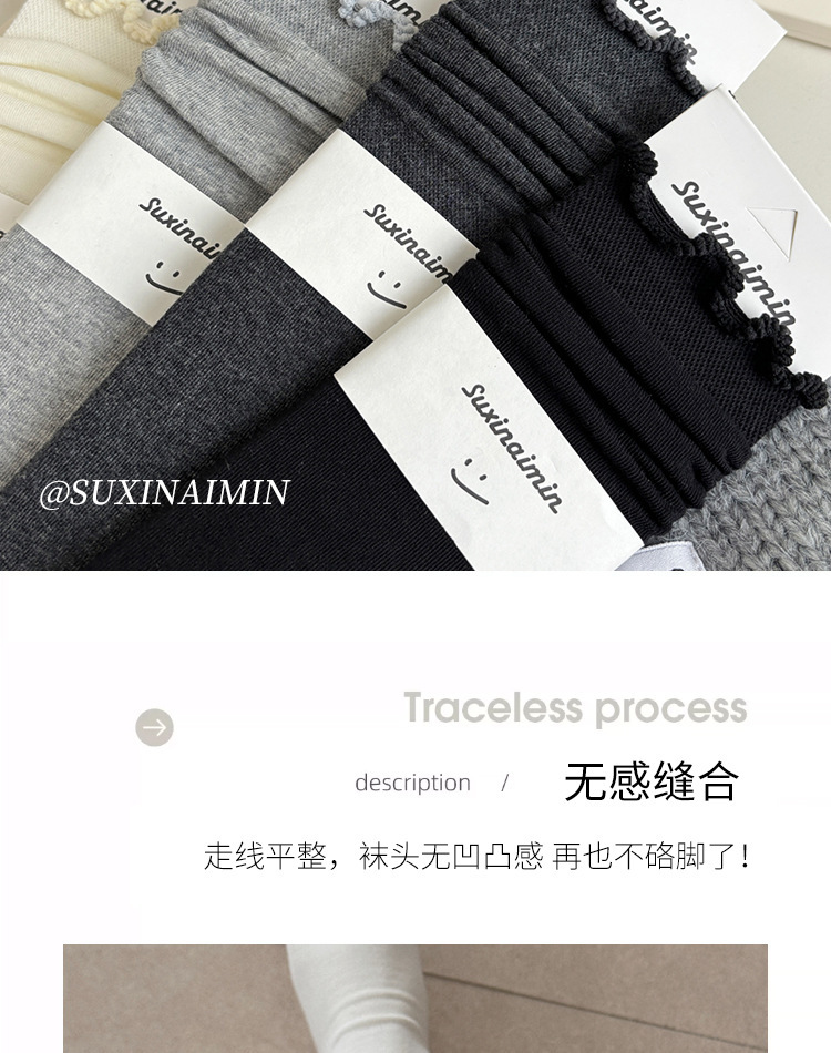 suxinaimin袜子女秋冬花苞木耳边纯色月子袜棉百搭无骨中筒堆堆袜