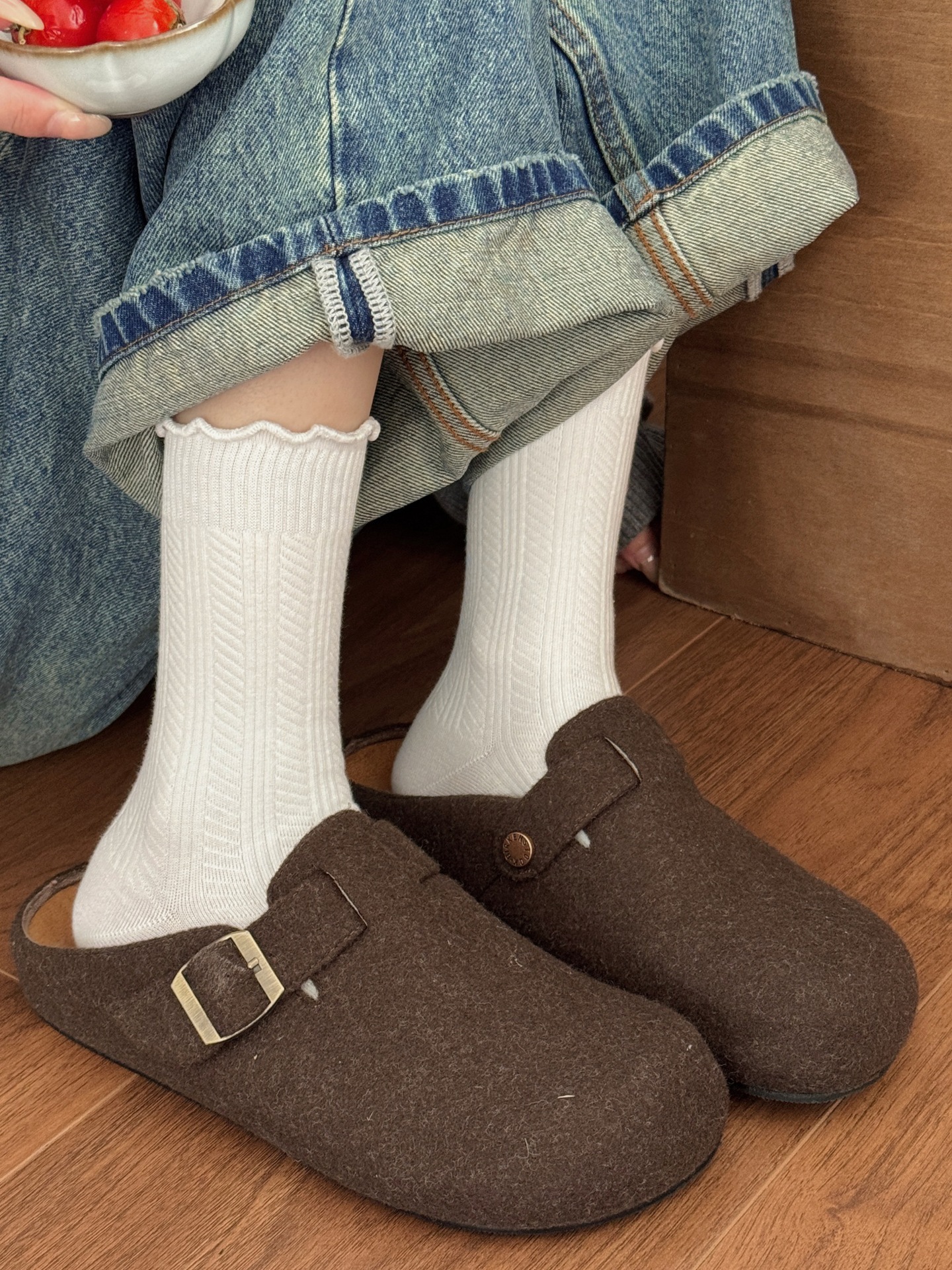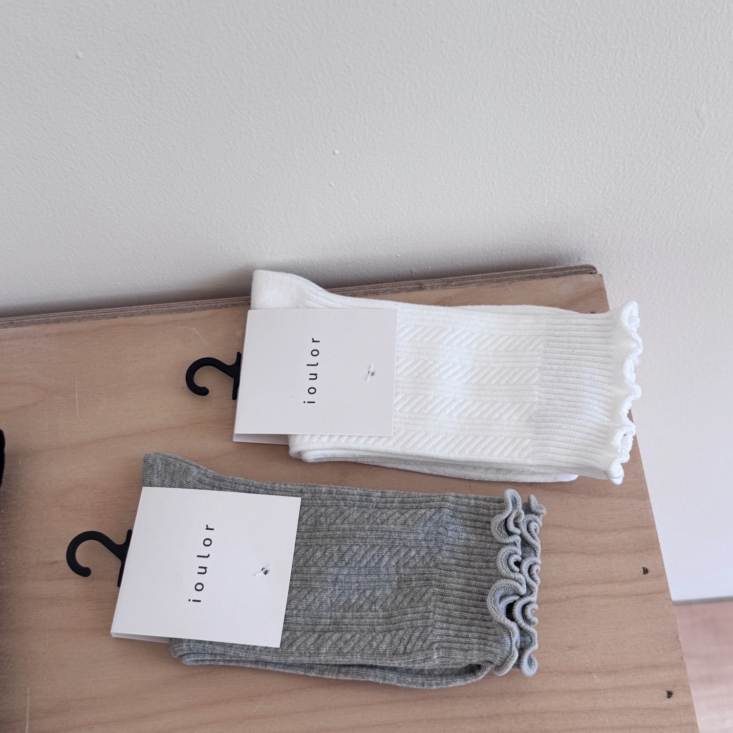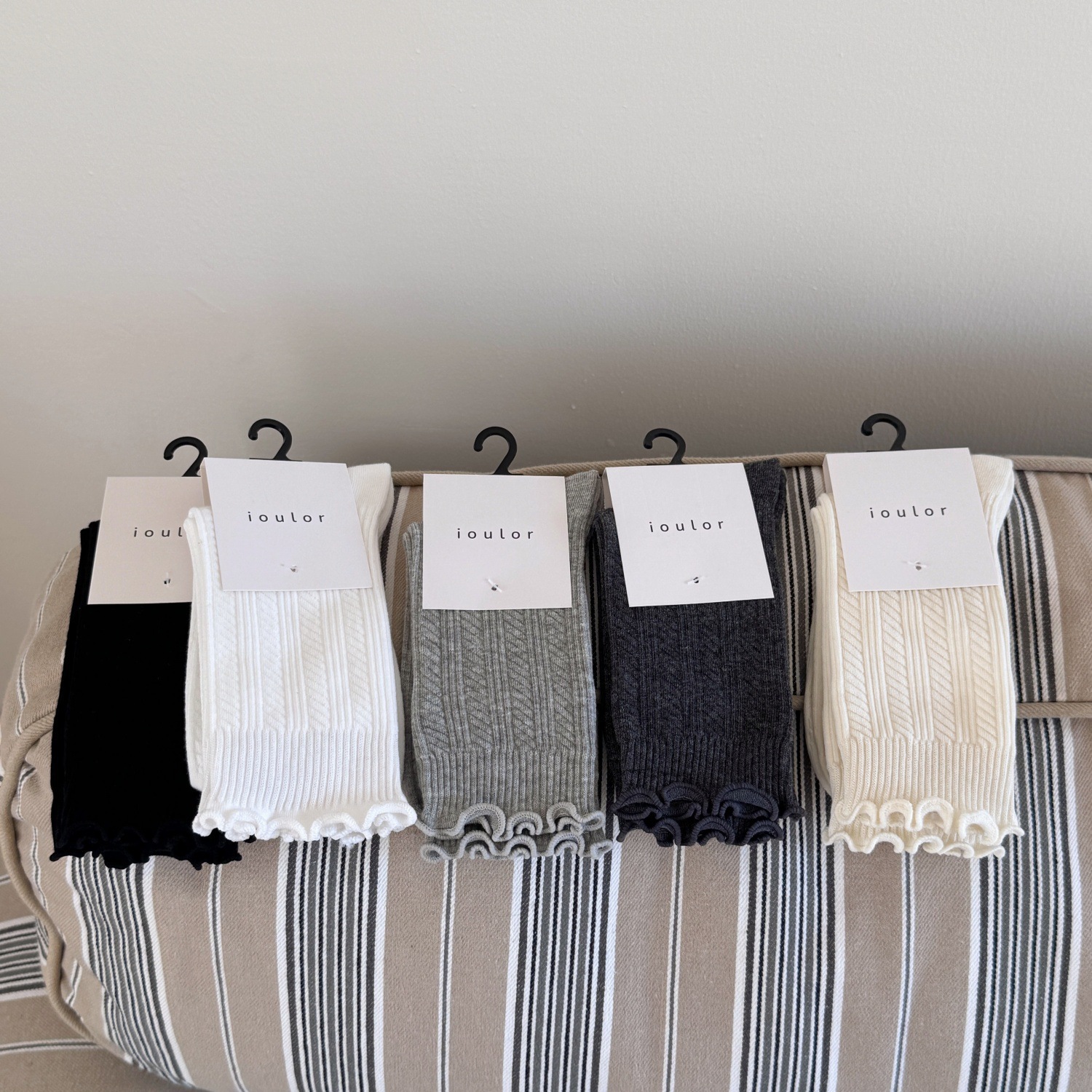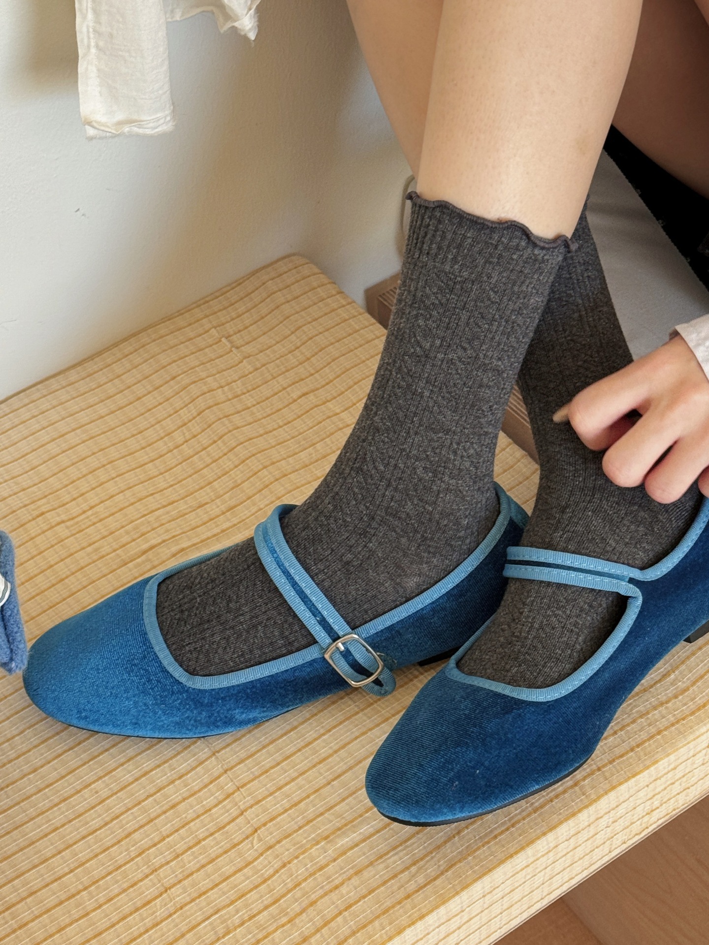 早秋新款木耳边袜子女中筒袜精梳棉袜竖纹芭蕾风堆堆袜诸暨袜子