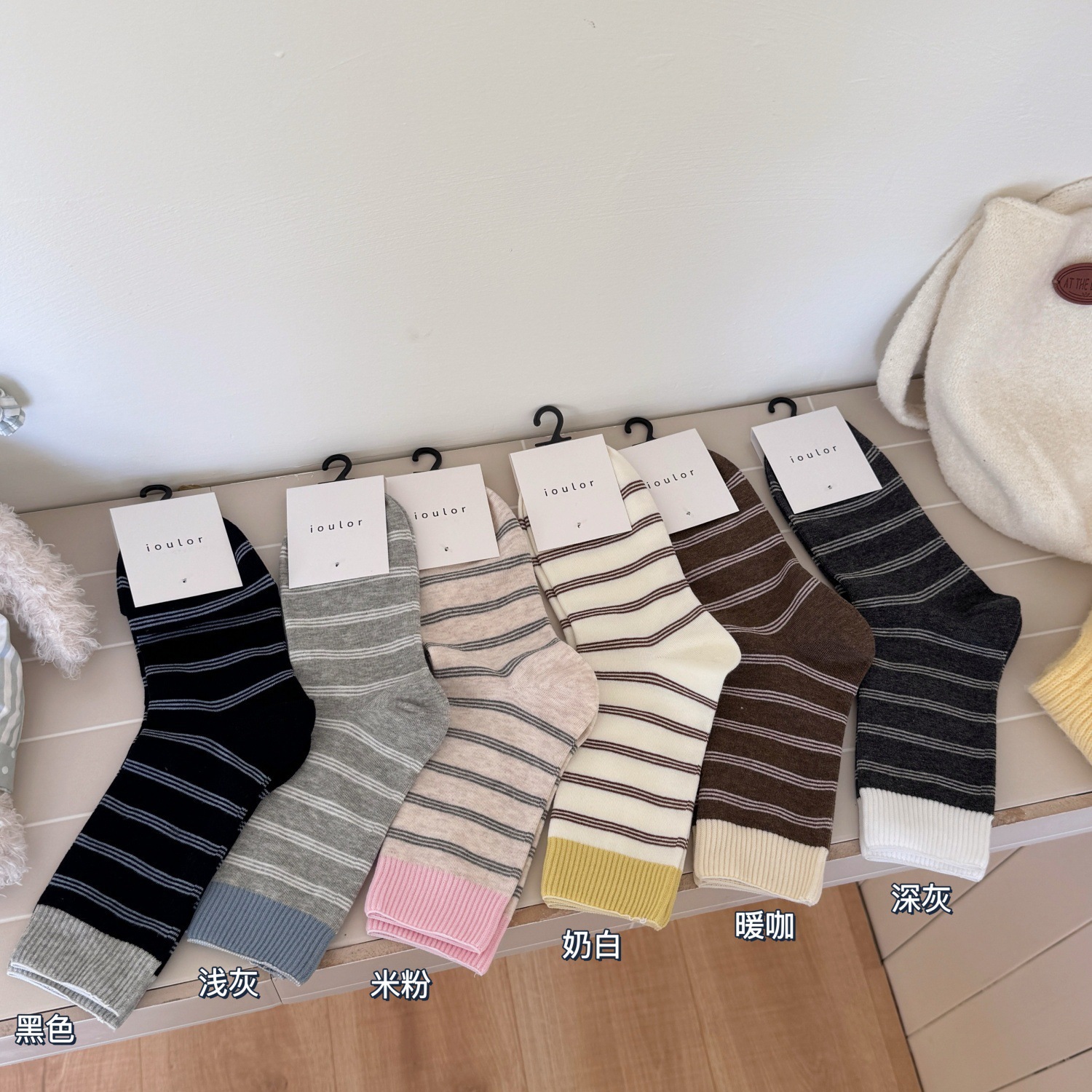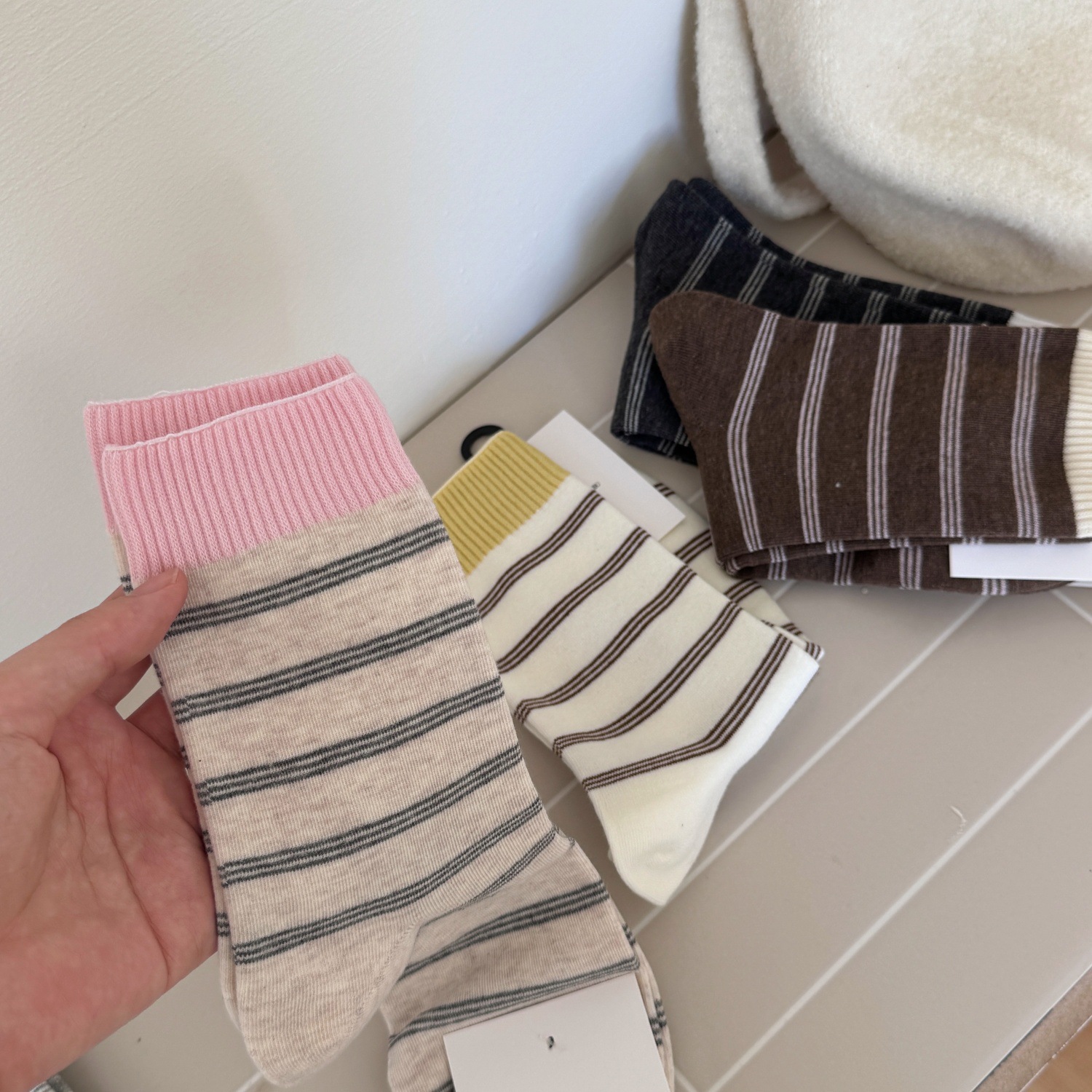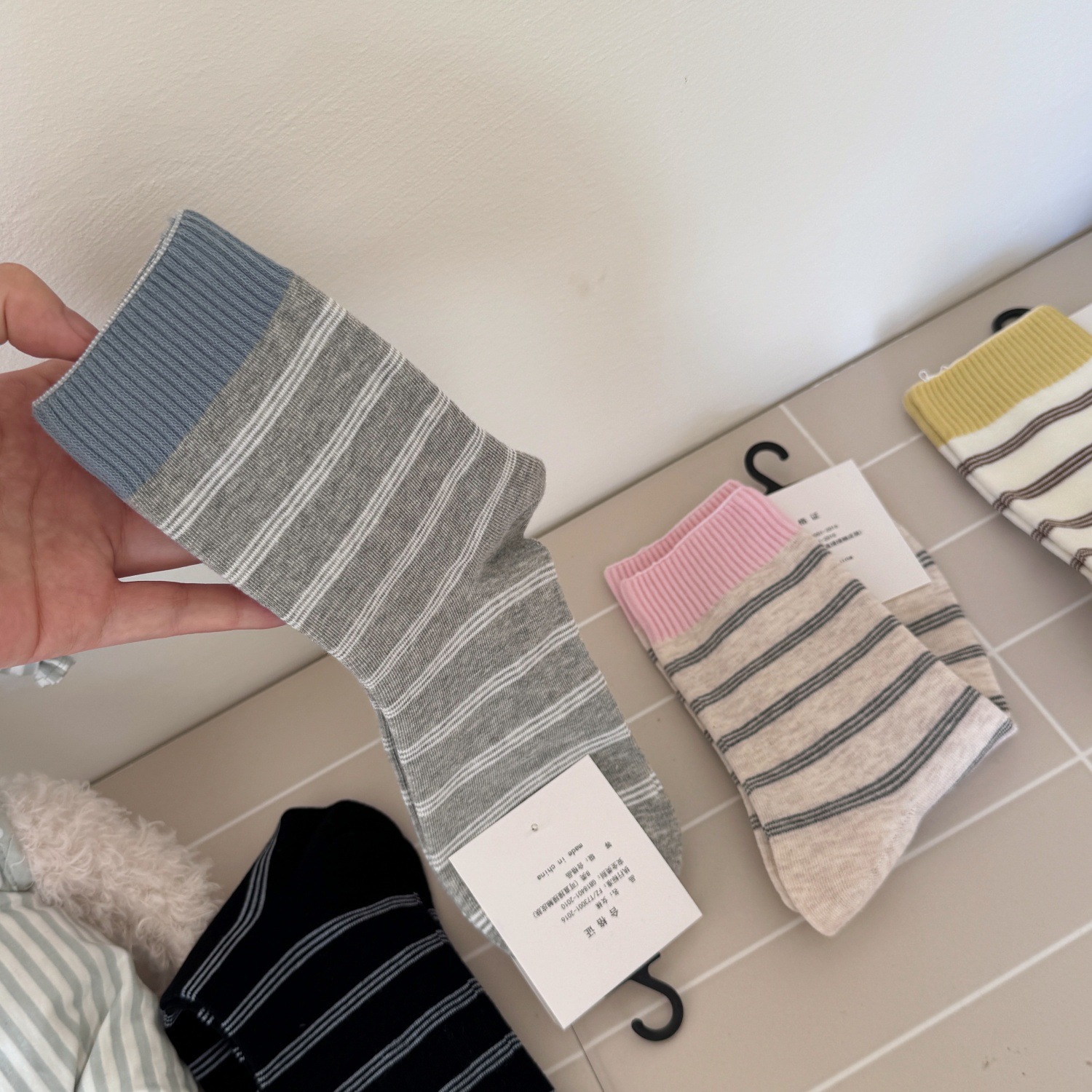 秋冬新款袜子女日系条纹拼色中筒袜精梳棉吸汗女生堆堆袜诸暨袜子