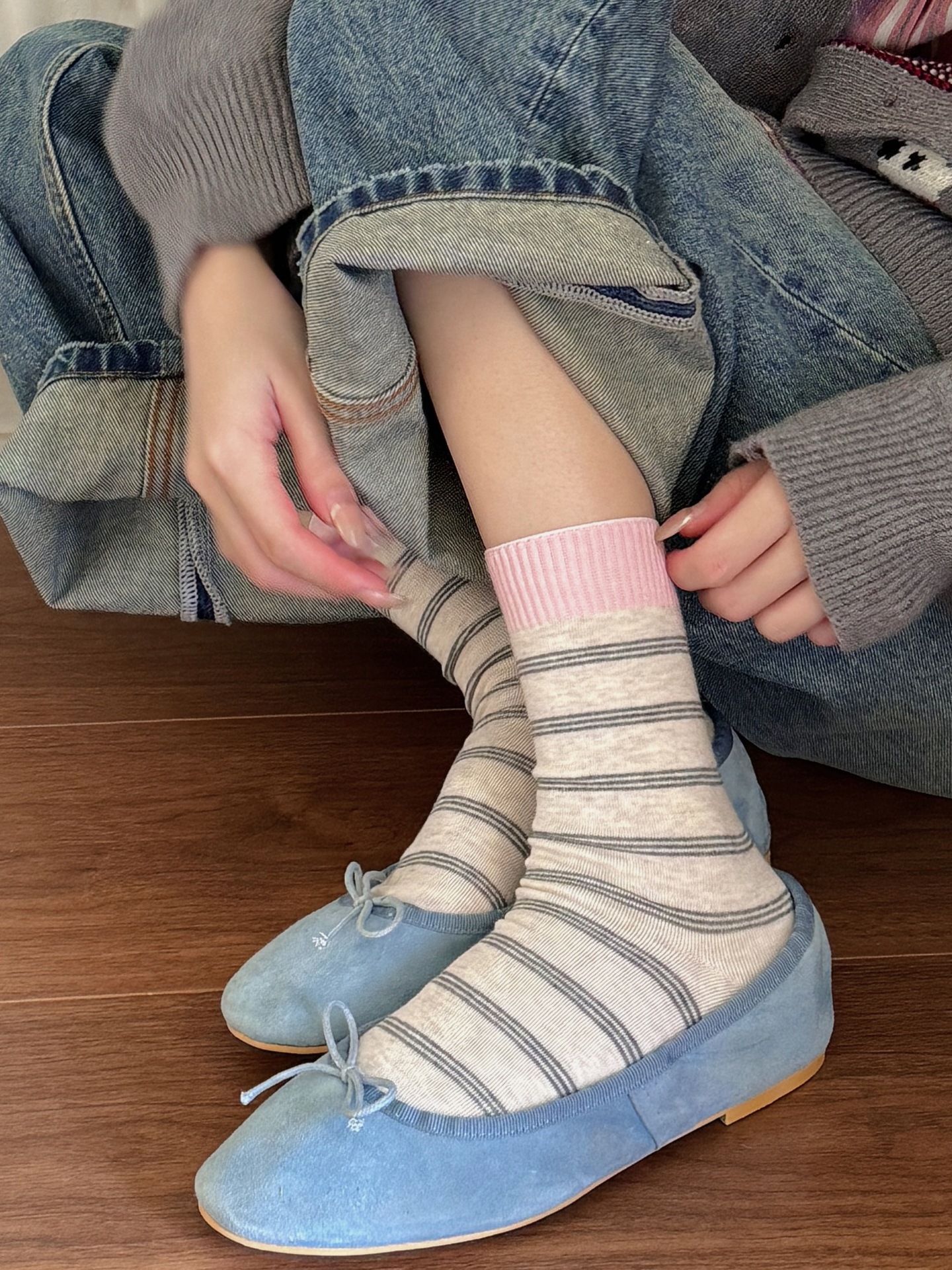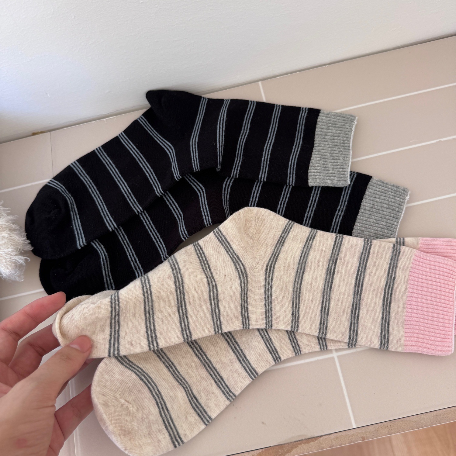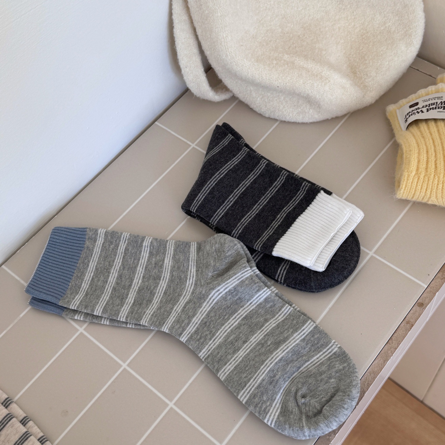 秋冬新款袜子女日系条纹拼色中筒袜精梳棉吸汗女生堆堆袜诸暨袜子