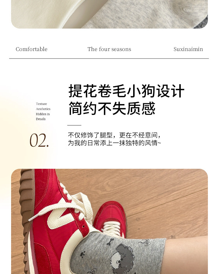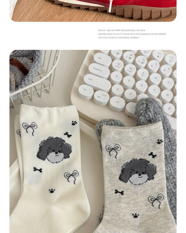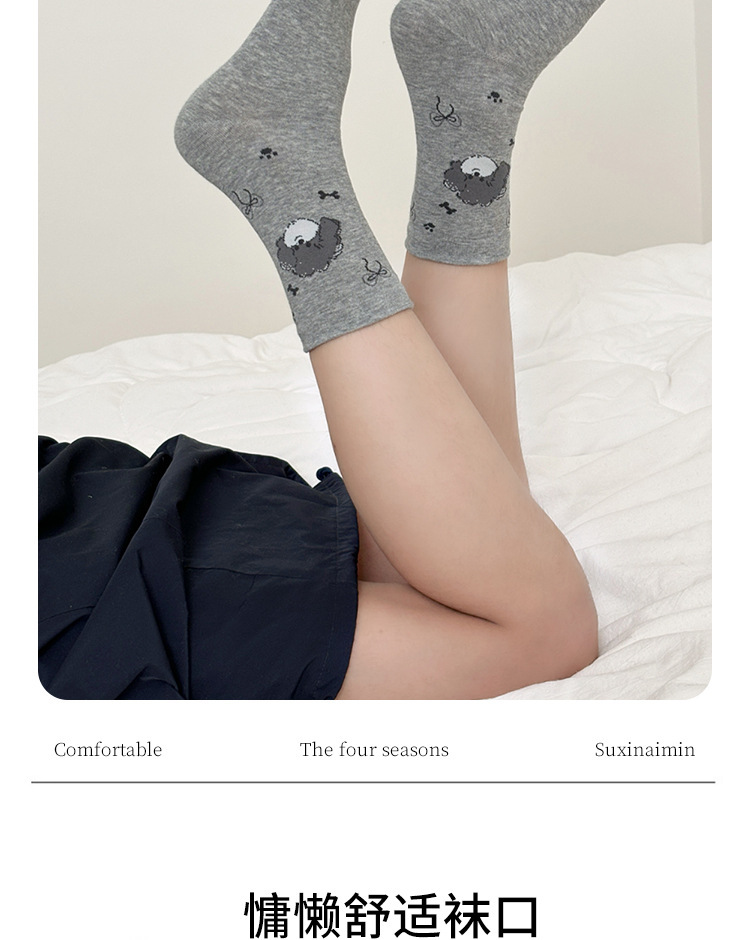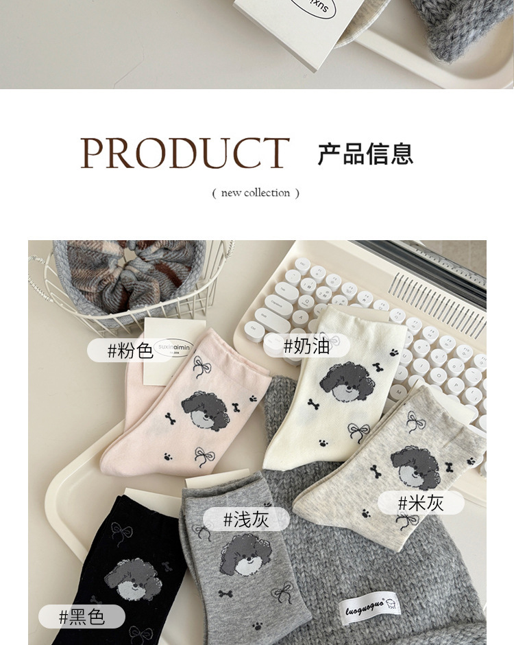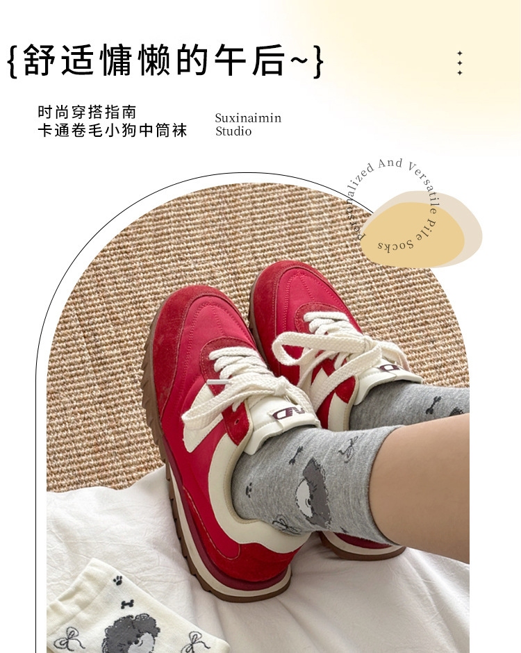 原创萌趣搞怪袜子女ins潮春秋日系可爱袜卷毛小狗中筒袜一件代发