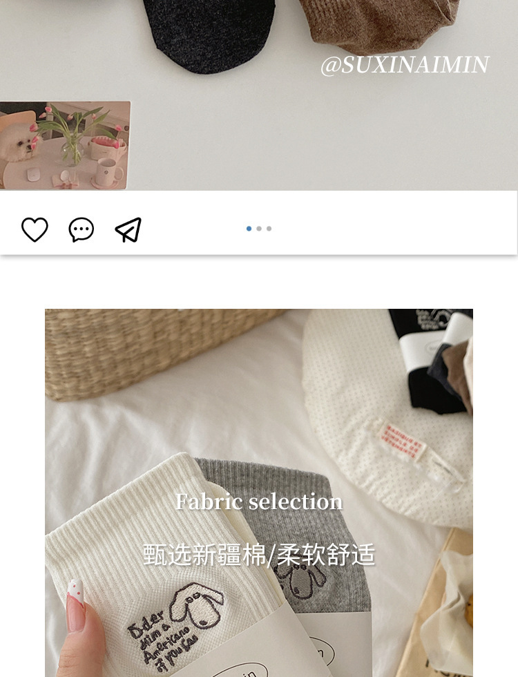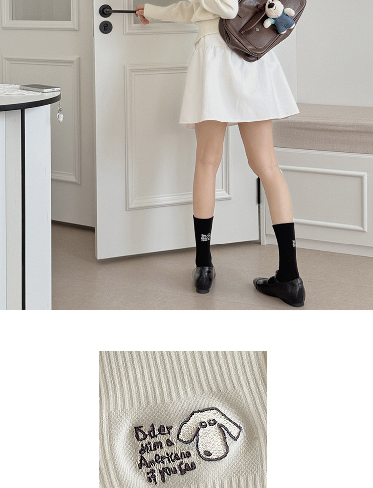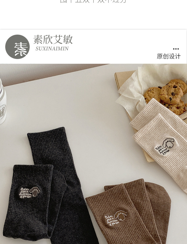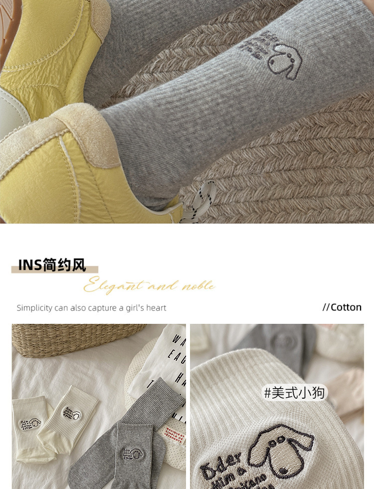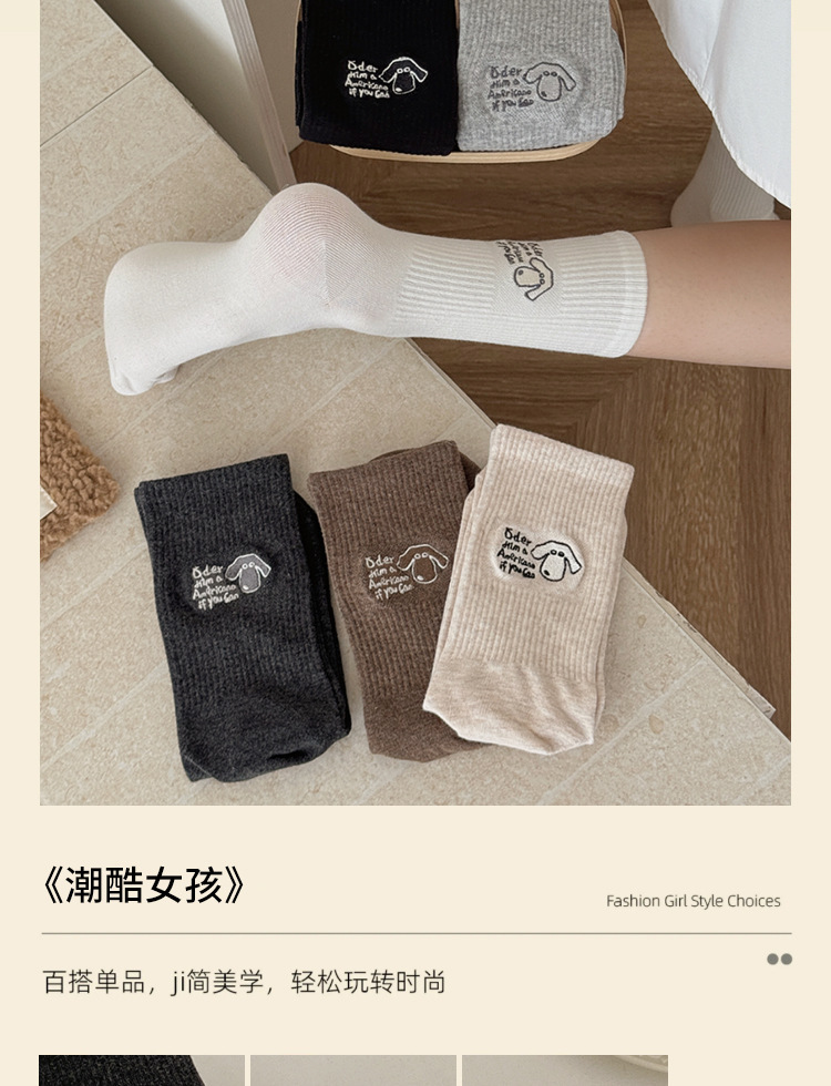 秋冬袜子女刺绣美式小狗ins可爱日系潮运动中筒堆堆袜支持一代发