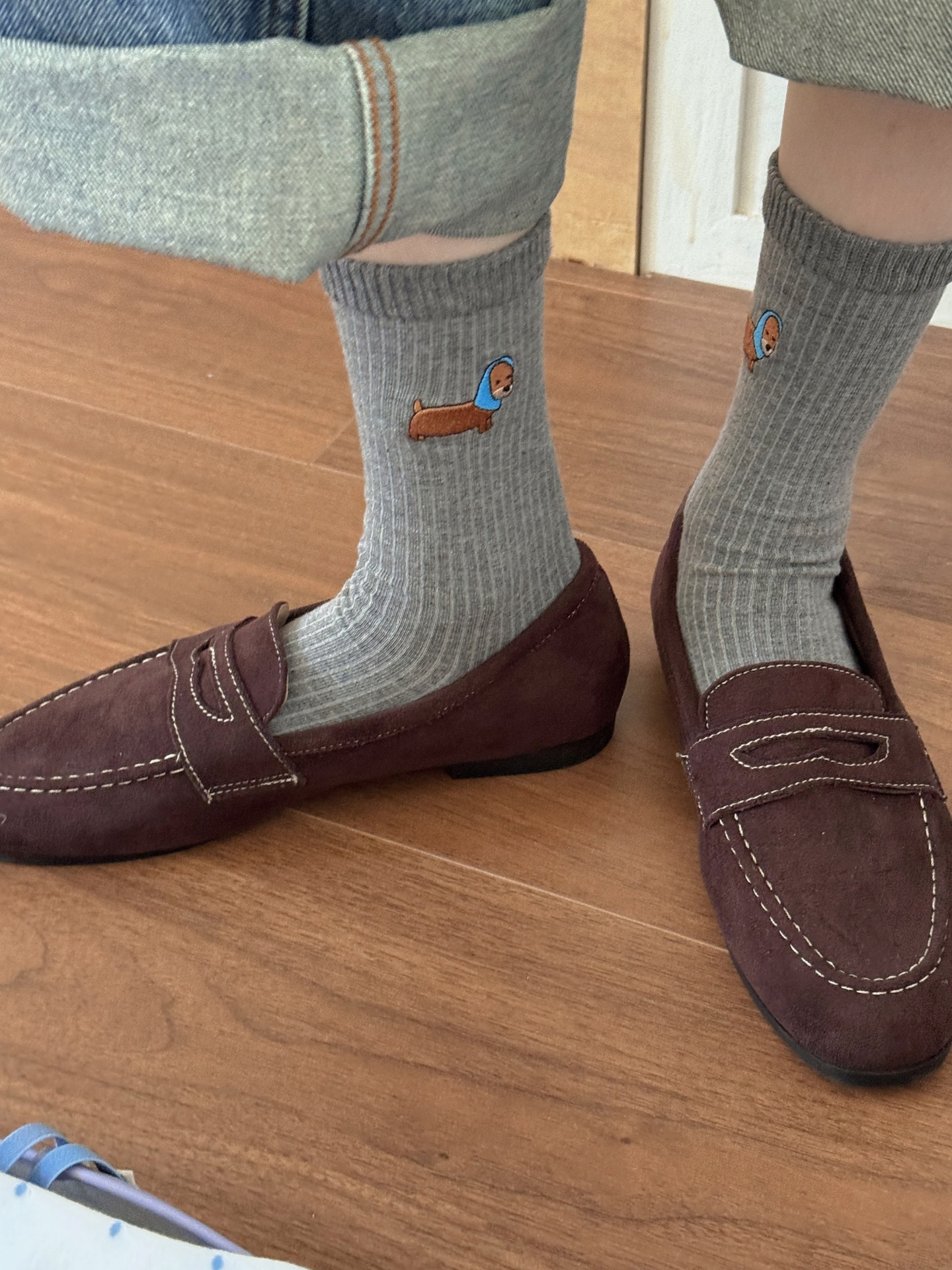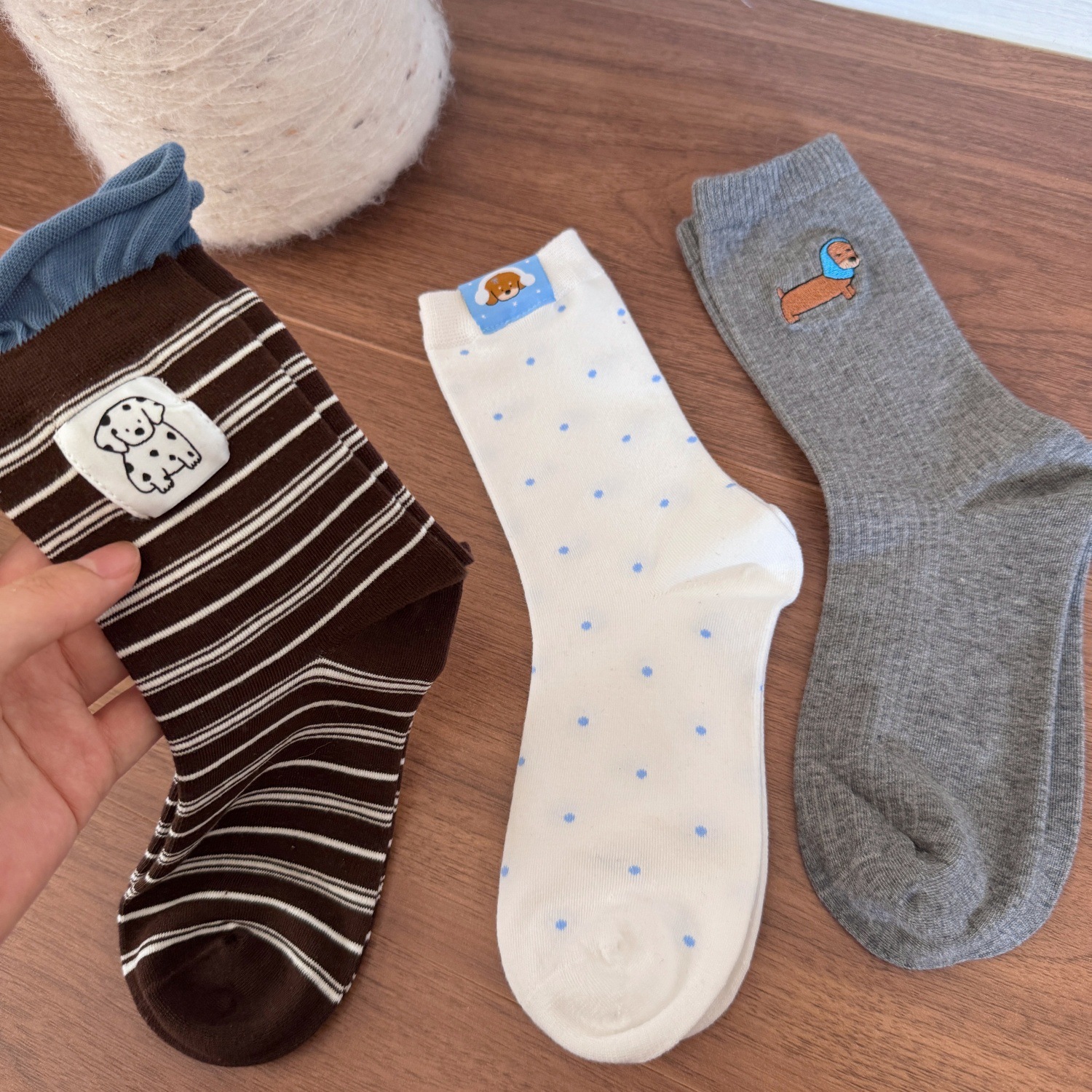 洛丽塔卡通刺绣腊肠狗ins袜子2025秋冬百搭精梳棉吸汗无骨中筒袜