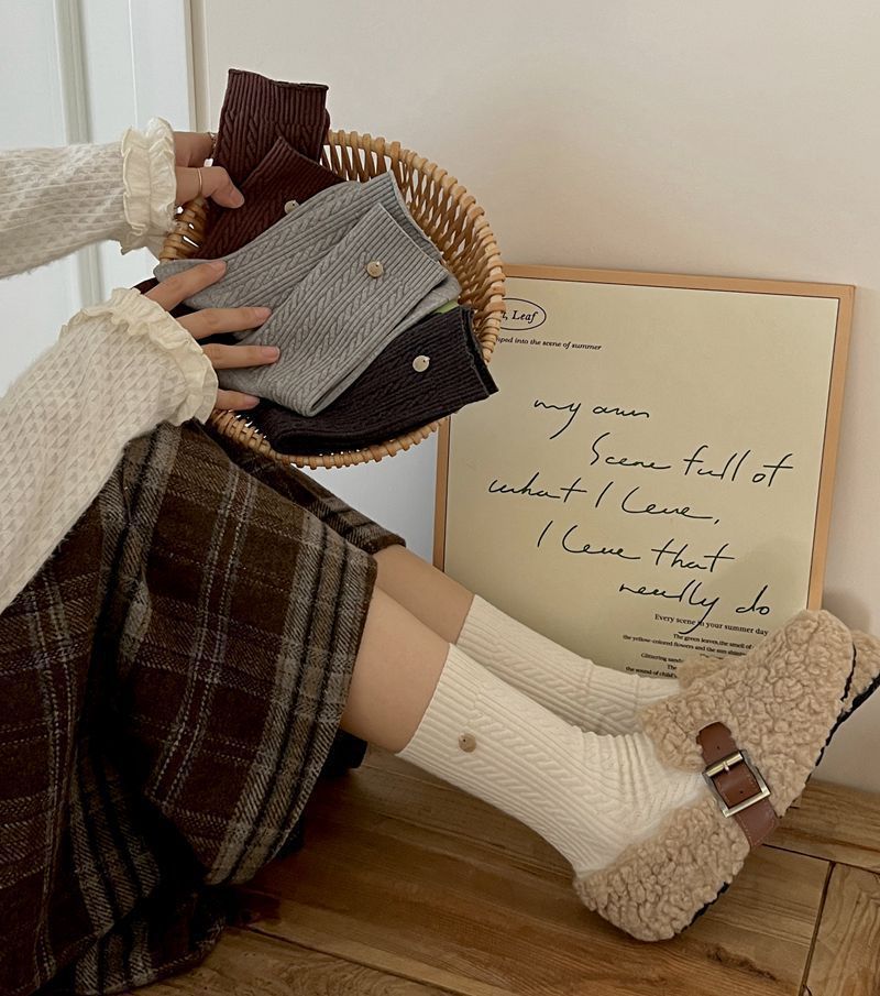 songmu韩系氛围感”egg纽扣兔绒袜子女中筒袜秋冬加厚保暖堆堆袜