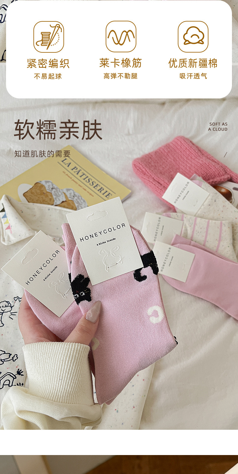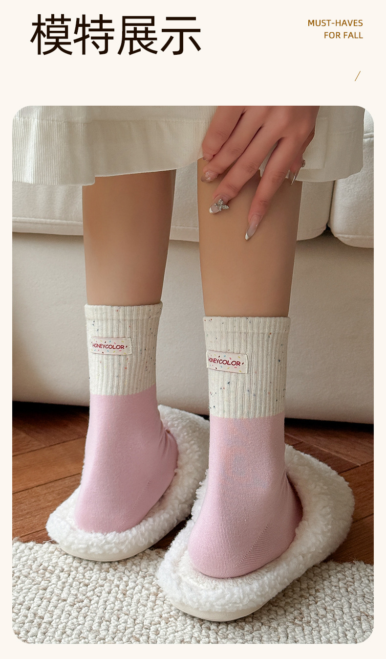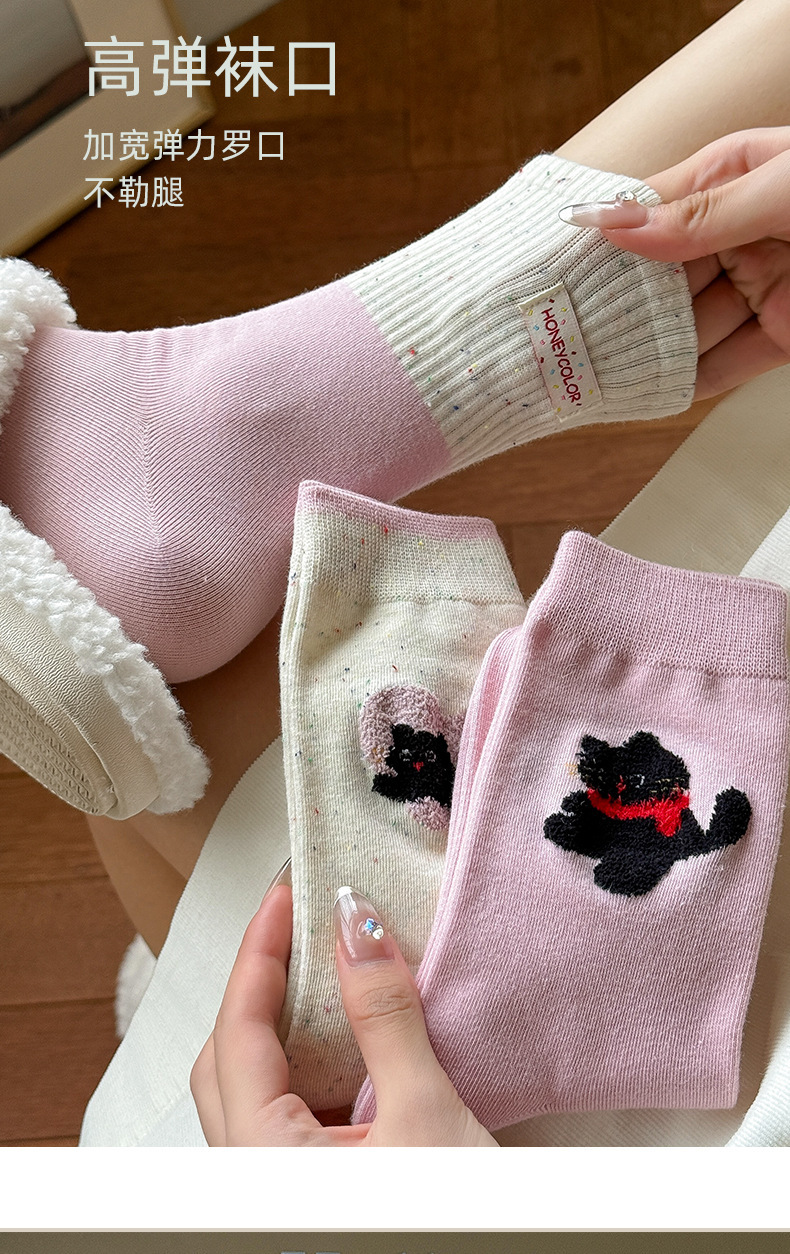 袜子女春秋中筒袜日系可爱卡通点子纱布标小猫咪堆堆袜诸暨棉袜子