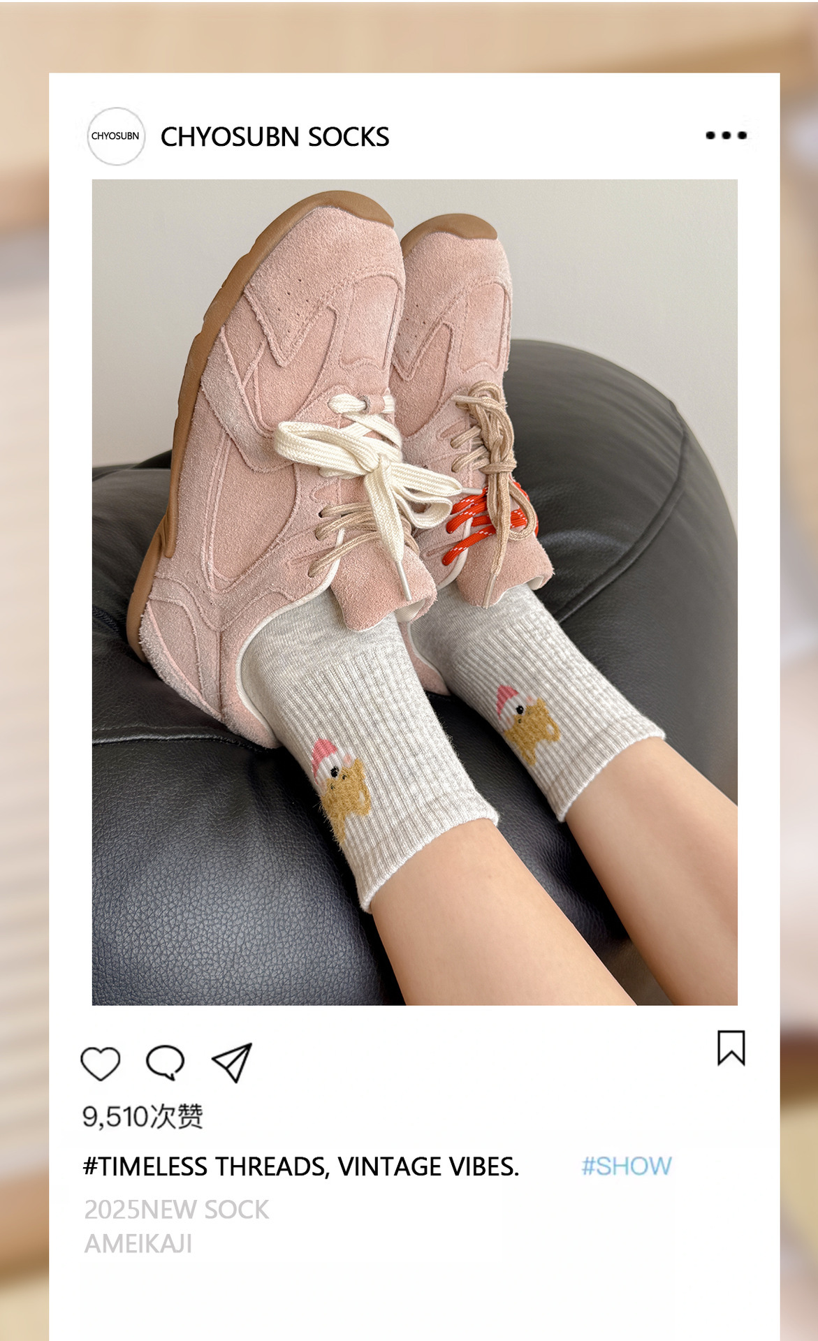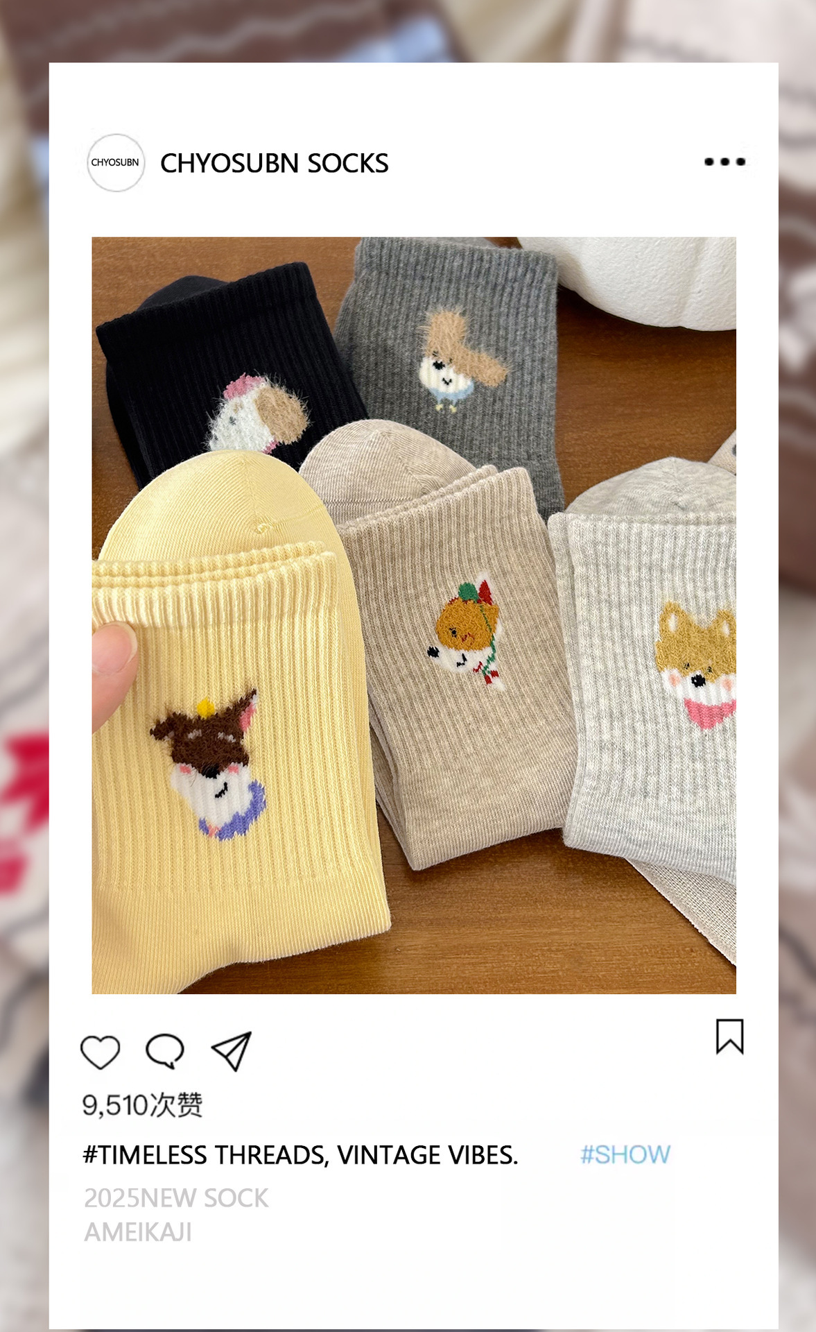 2025秋冬新品袜可爱小狗袜子女中筒袜透气纯棉学生百搭春秋ins潮