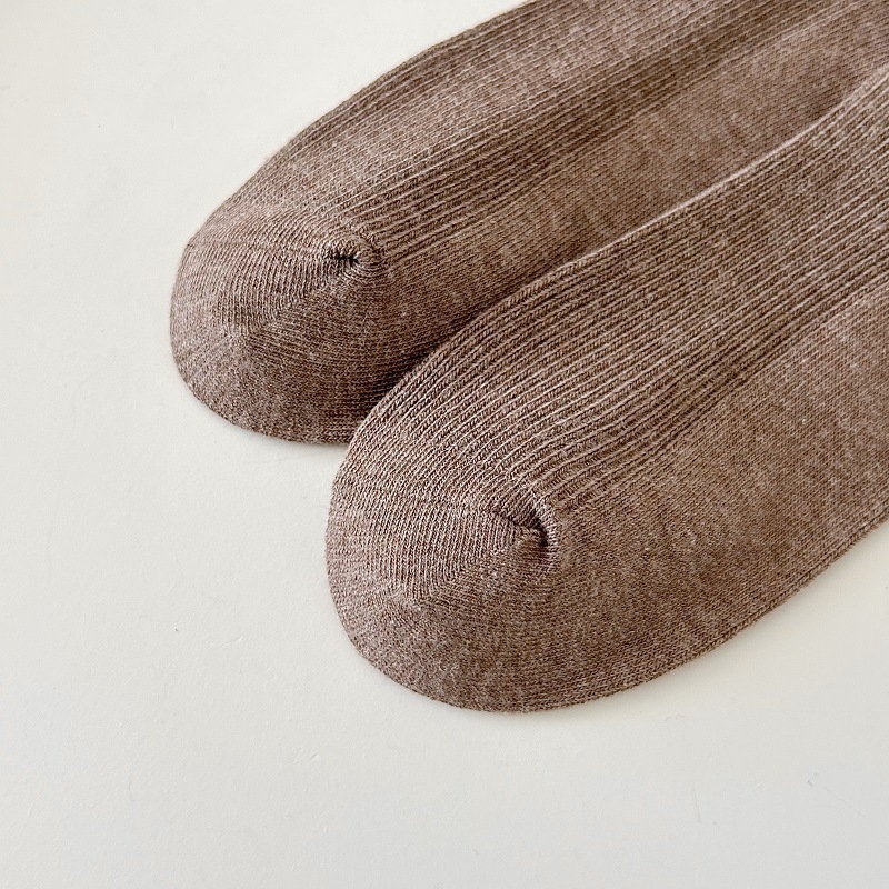 袜子女春秋薄款日系奶白色竖条双针精梳棉纯色ins日系中筒堆堆袜