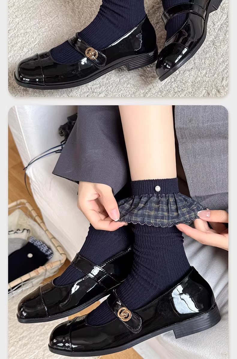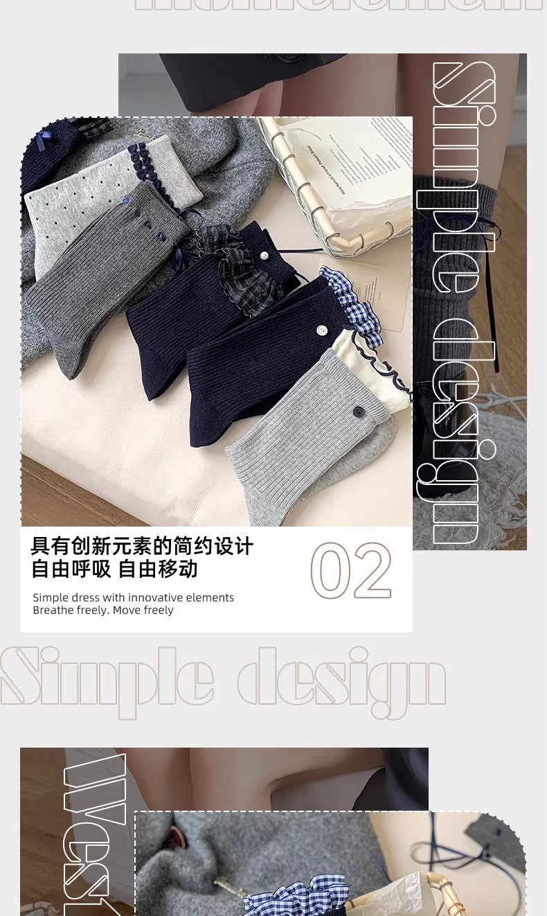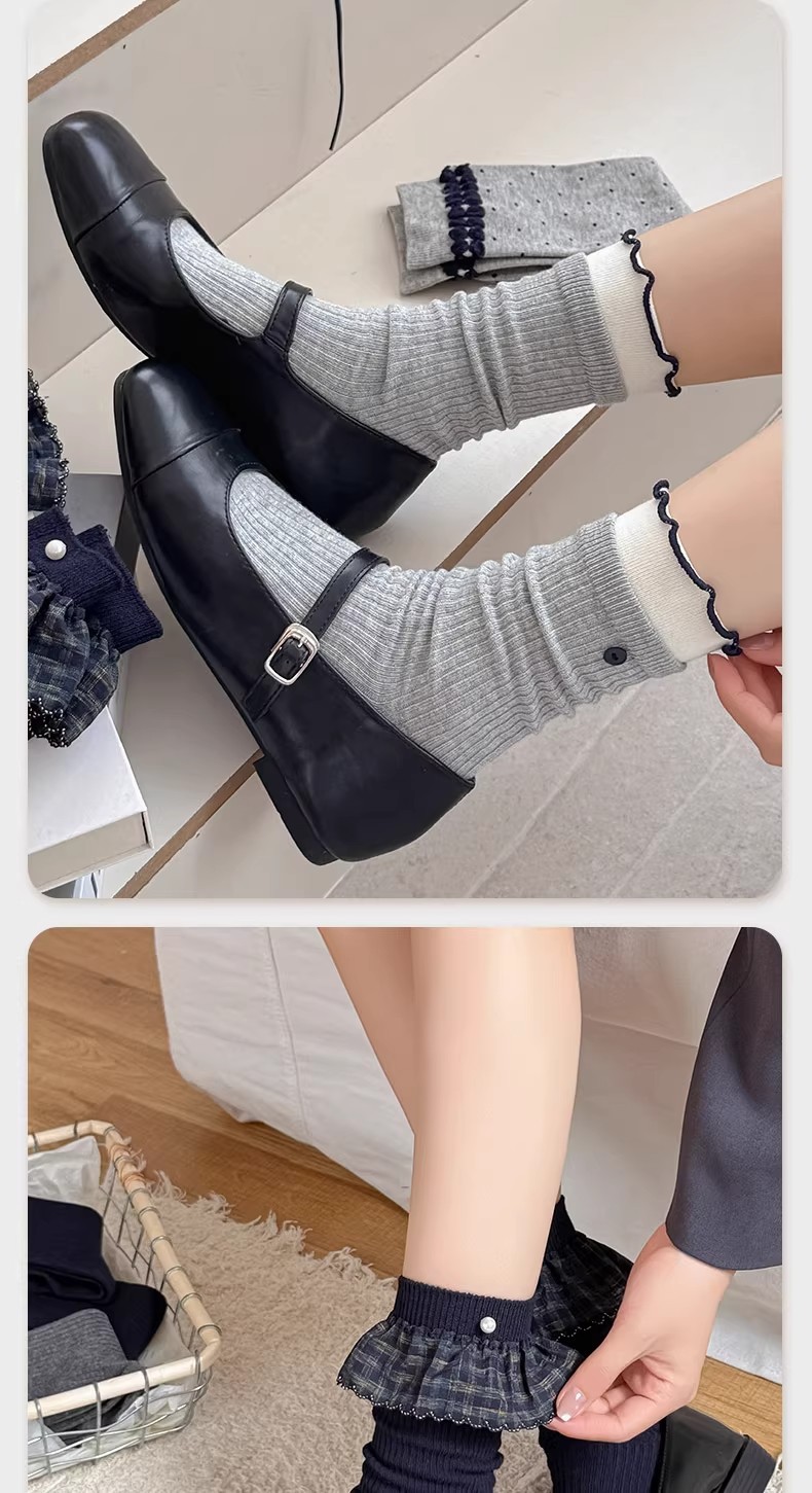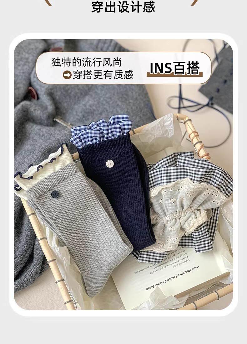 早秋新款灰蓝色蕾丝花边袜子女洛丽塔饰品袜韩版搭配小皮鞋爆款袜