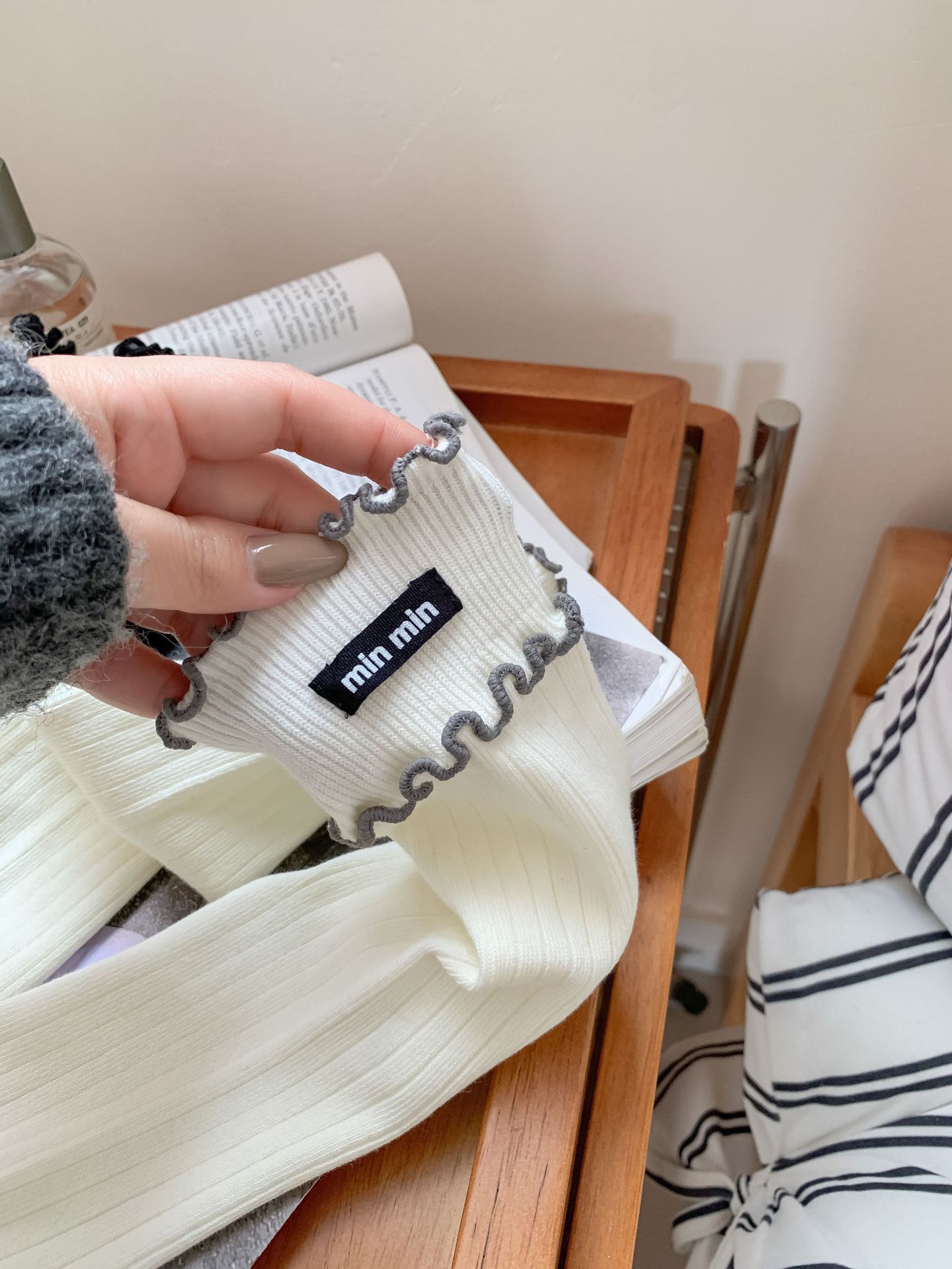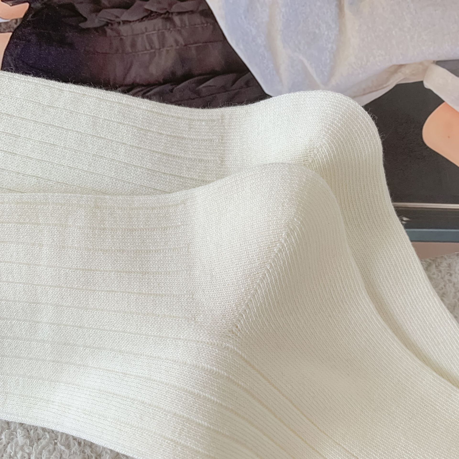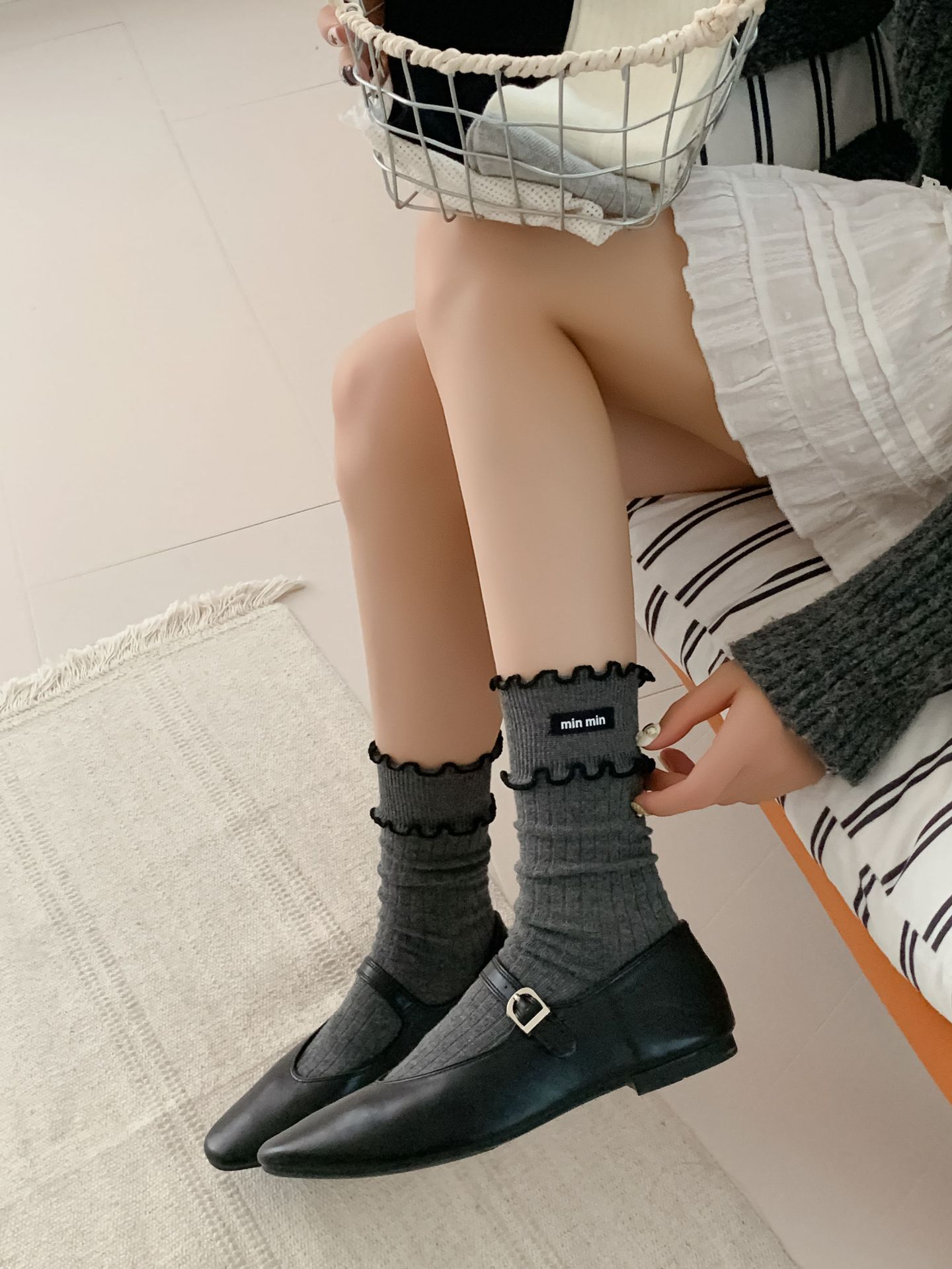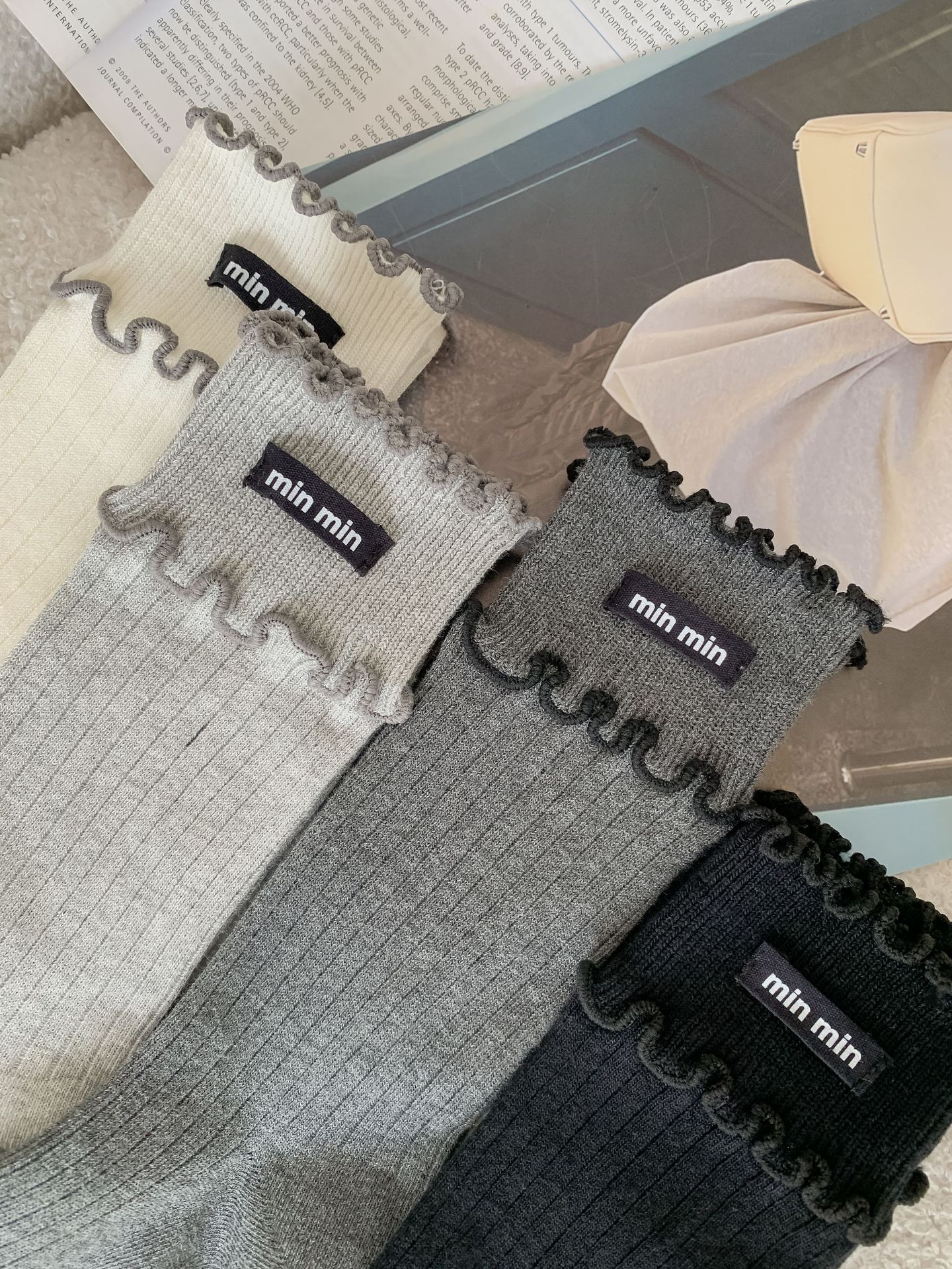 25年秋冬新款女士中筒袜miu系木耳边字母布标简约韩系堆堆袜子女