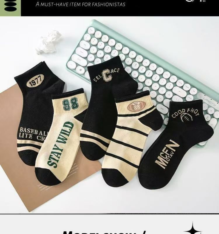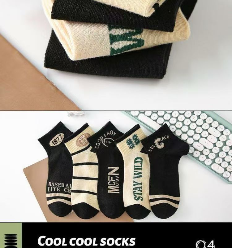 跨境简约袜子男短款夏季薄款透气防臭袜男款低帮男生百搭情侣袜子