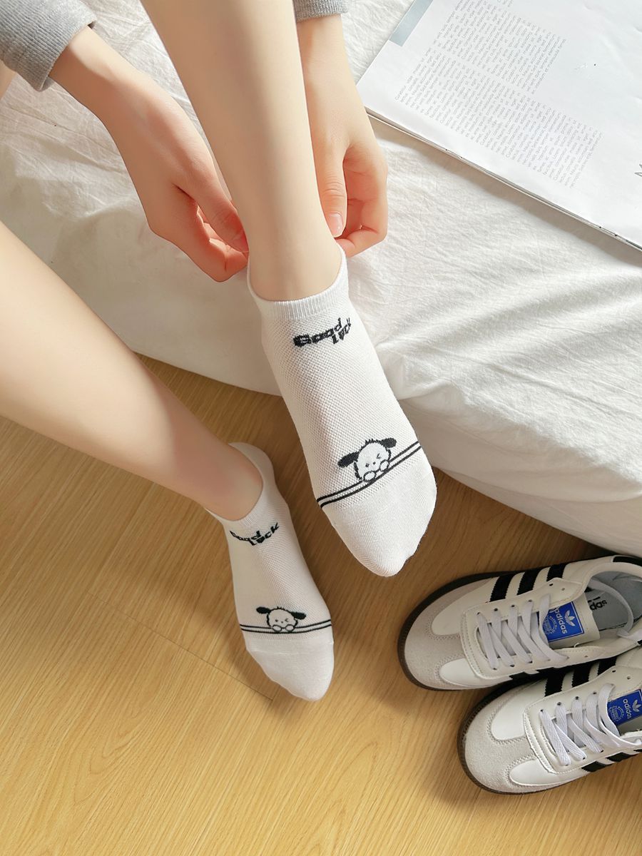 袜子女春夏季薄款短袜ins潮流可爱甜美透气百搭短筒袜小白狗船袜