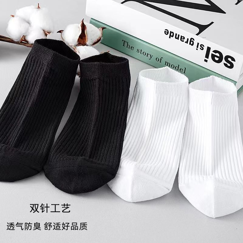 严选纯色黑白短筒袜子夏季薄款女诸暨夏天男士情侣运动袜批发