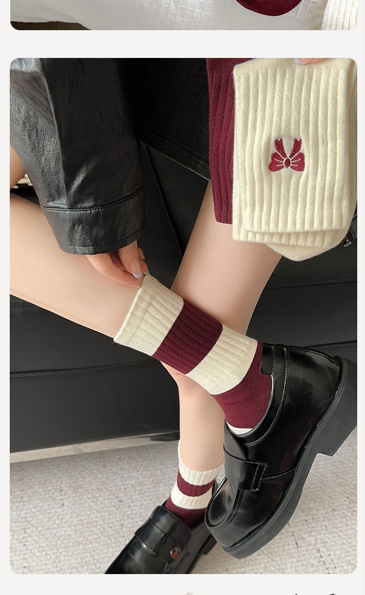 秋冬新款袜子女士安哥拉红中筒女袜批发韩版潮袜学院风无骨堆堆袜