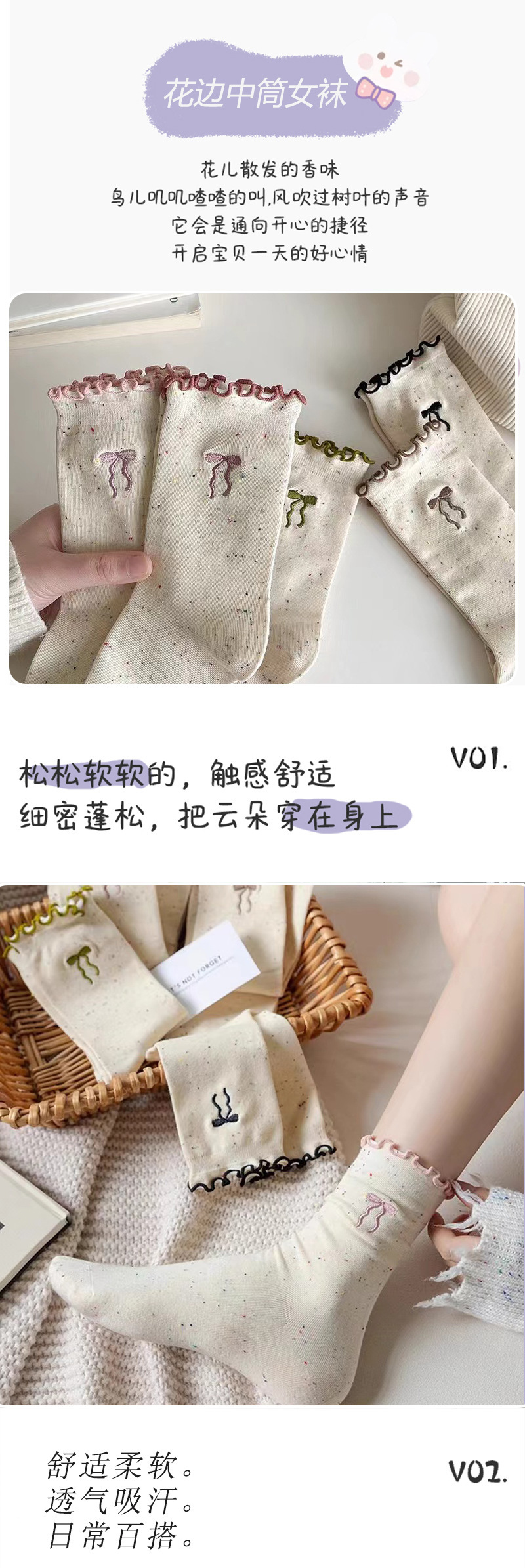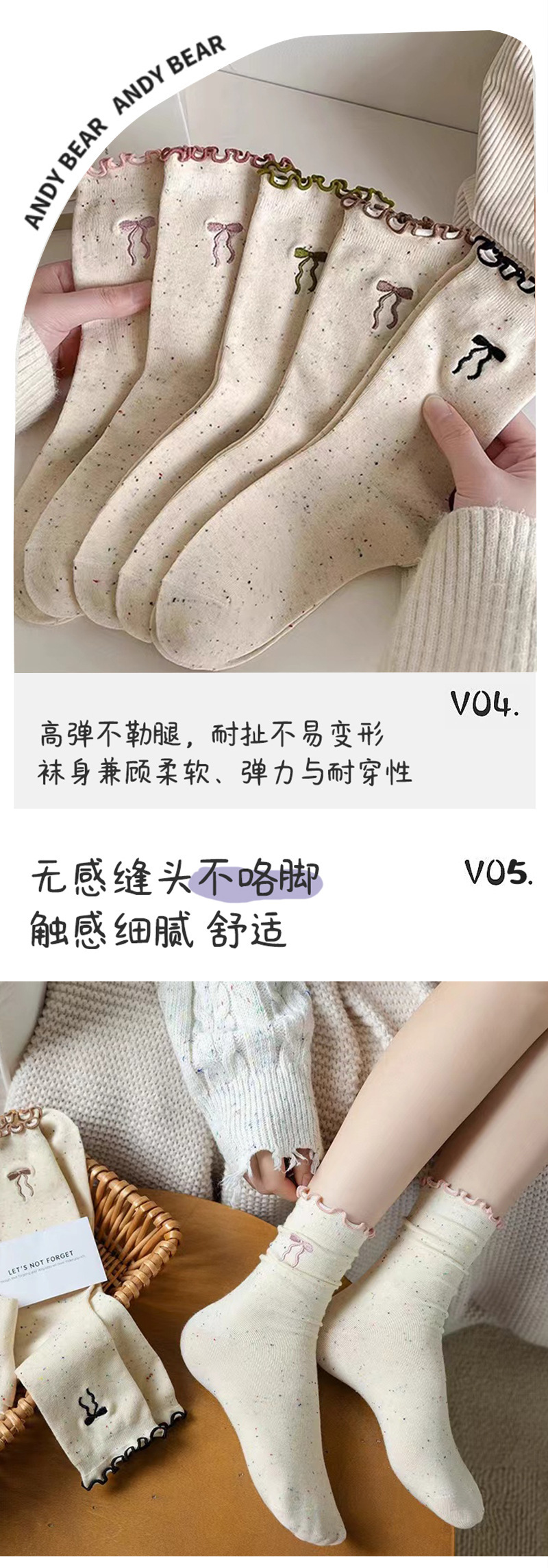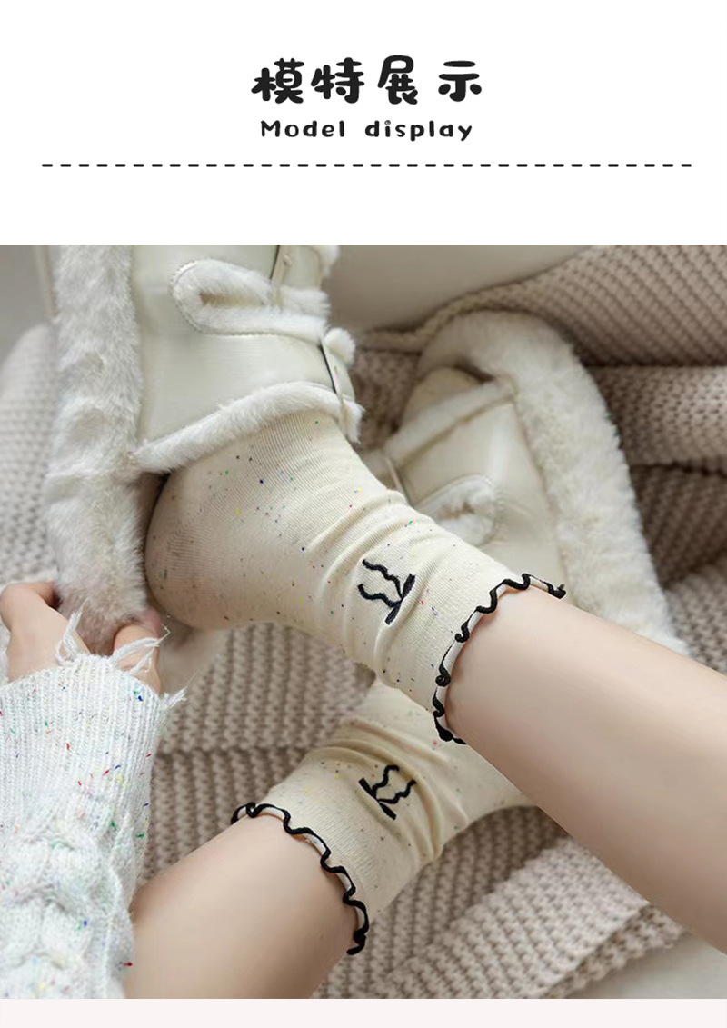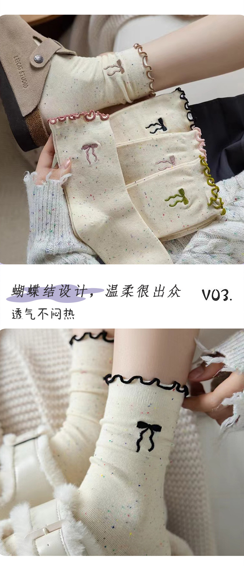 蝴蝶结袜子女士卷边中筒袜秋冬季棉袜女生长袜甜美日系点子纱ins