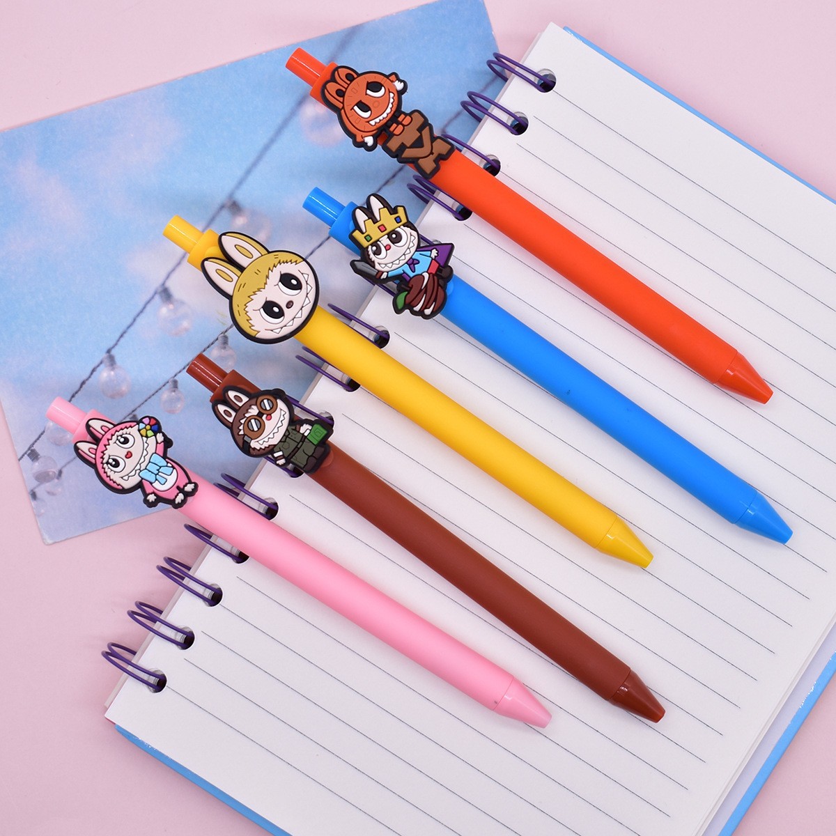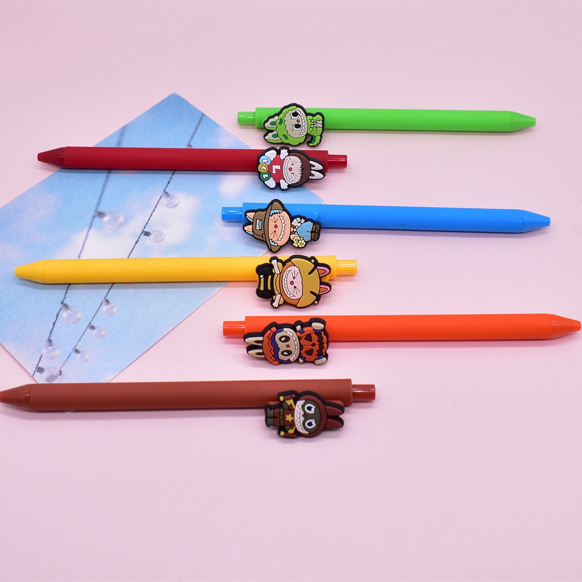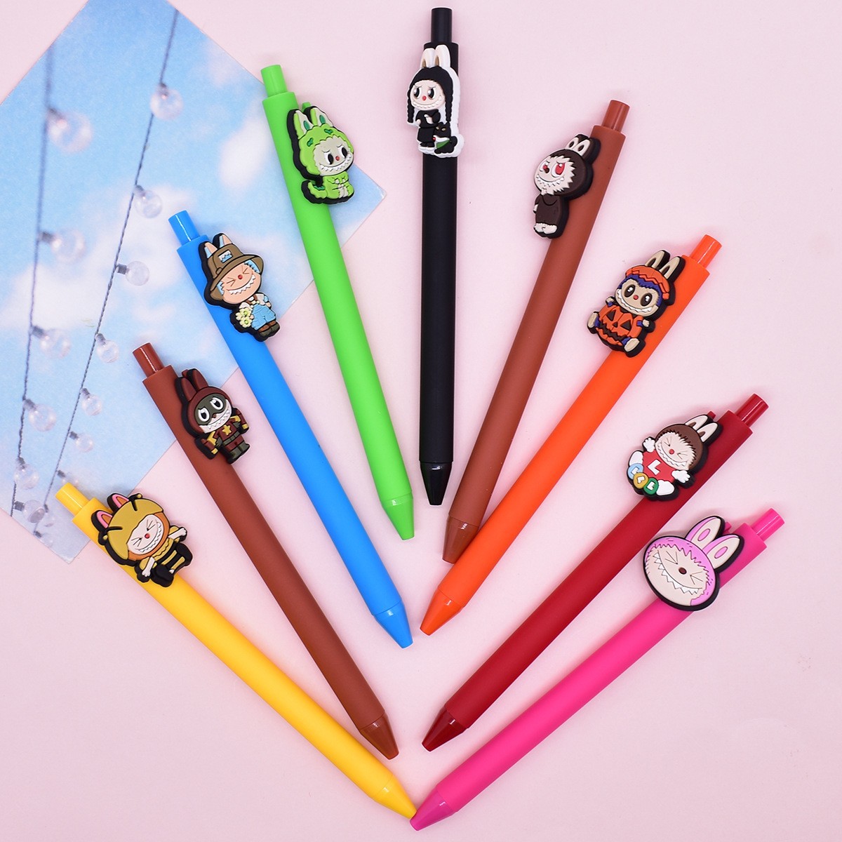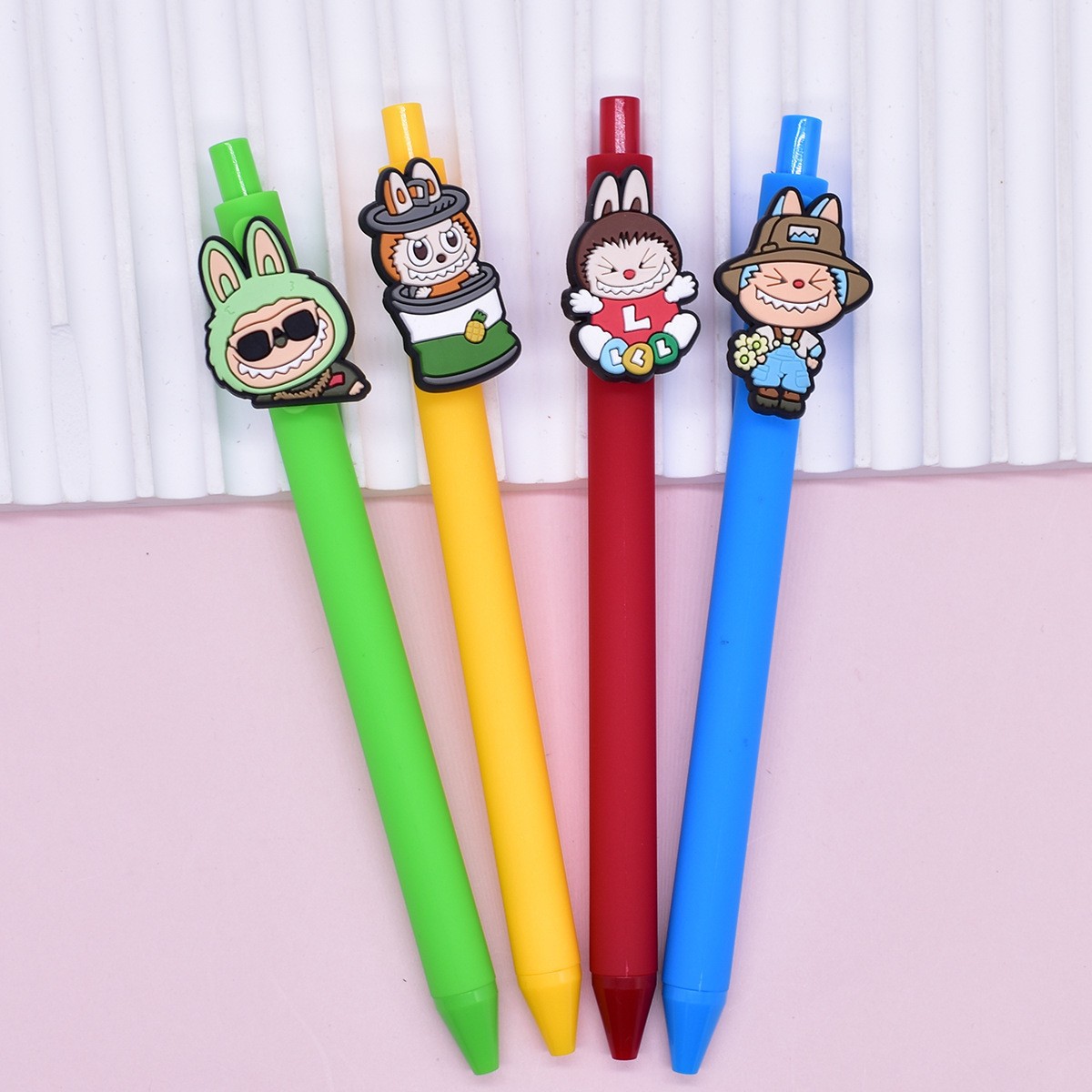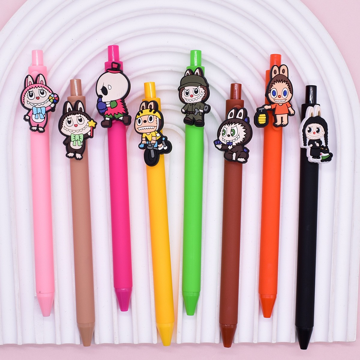拉布布按动中性笔可爱卡通LabubuPVC软胶贴片彩色ins高颜值中性笔