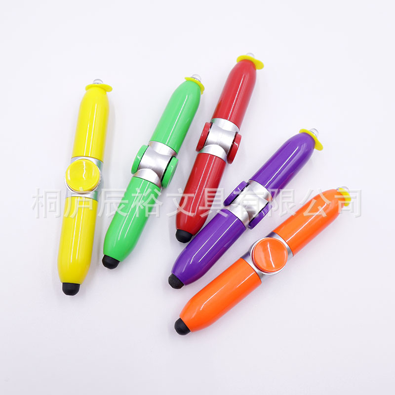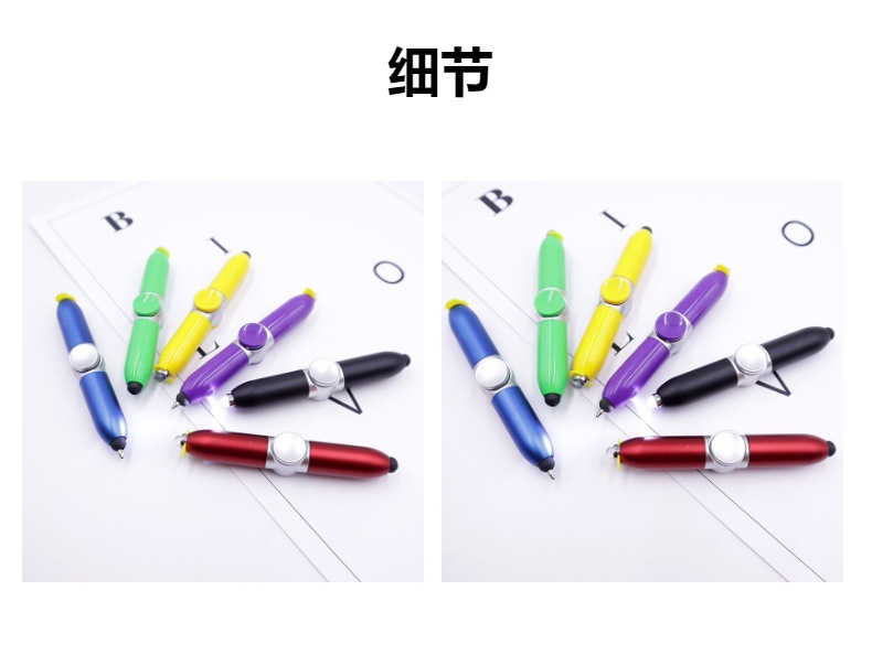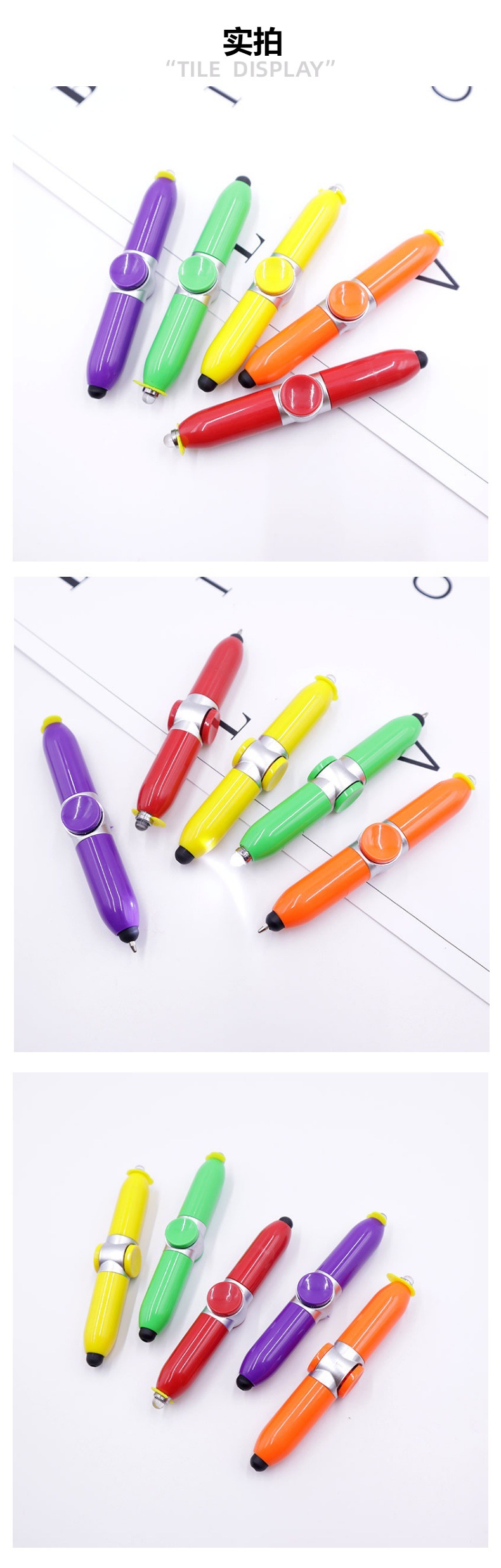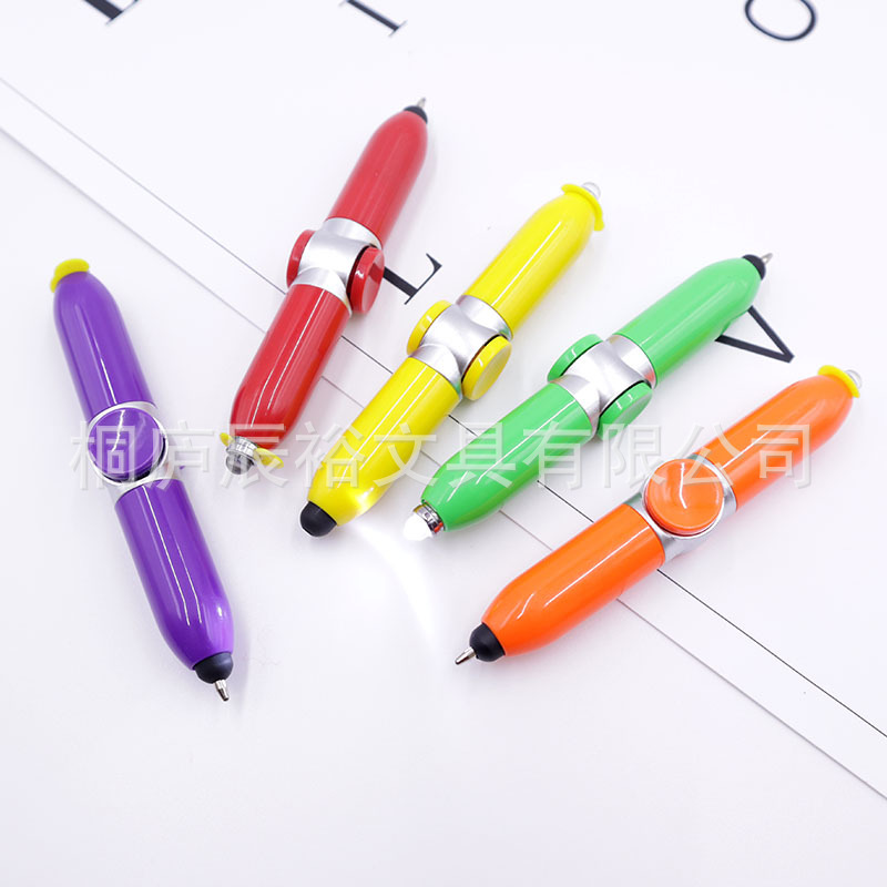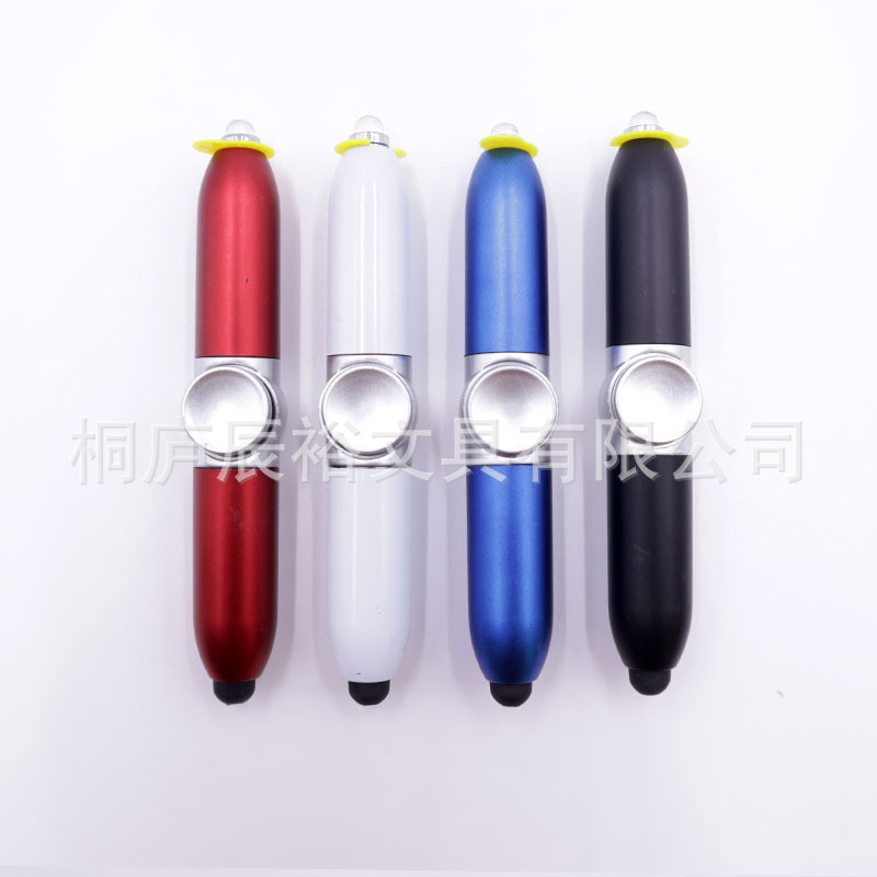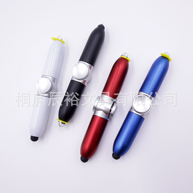 创意指尖旋转陀螺灯笔旋转触控LED灯圆珠笔减压陀螺触控笔印刷