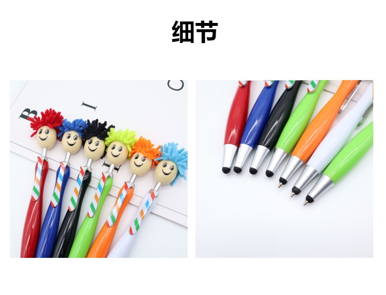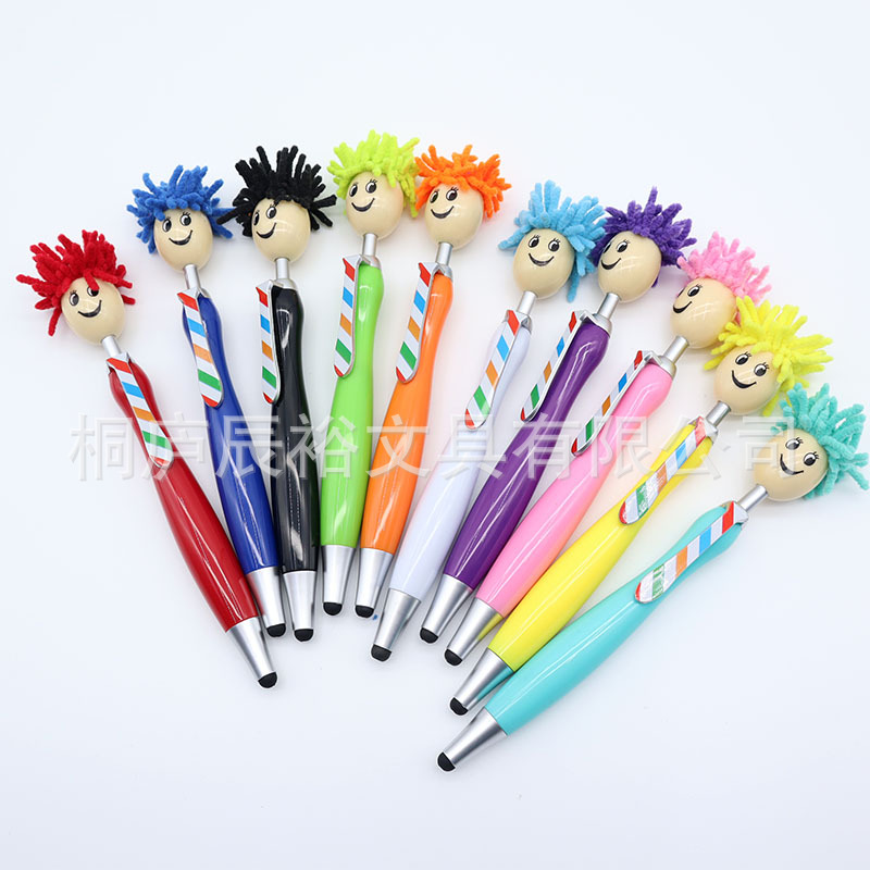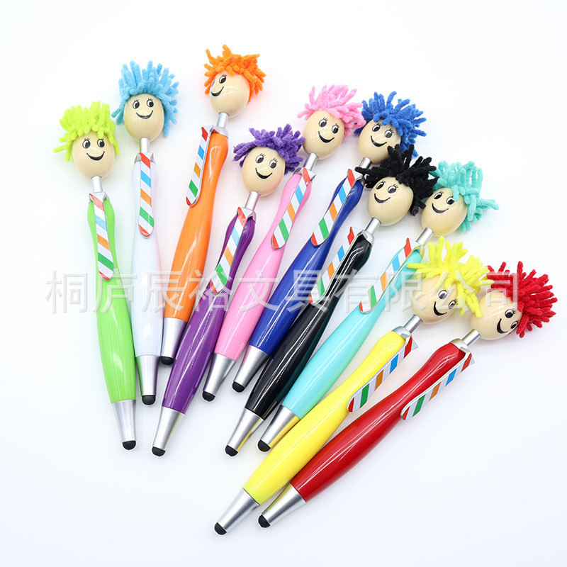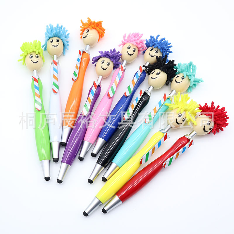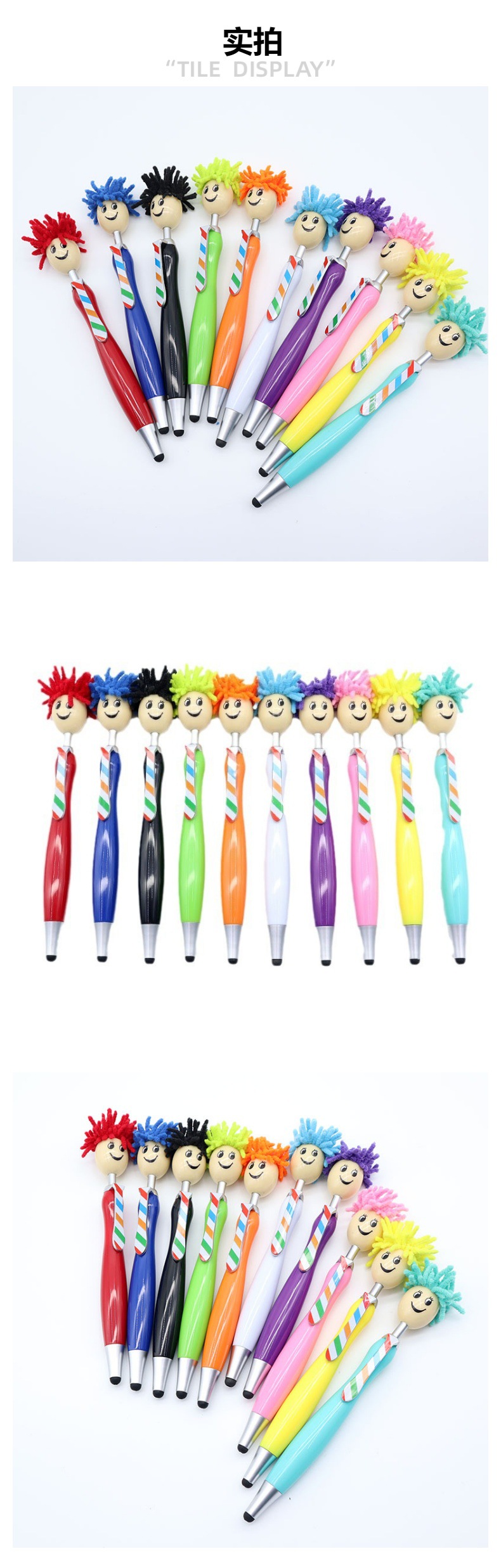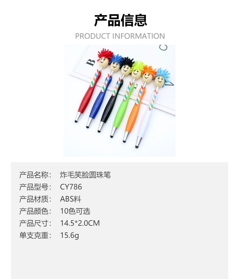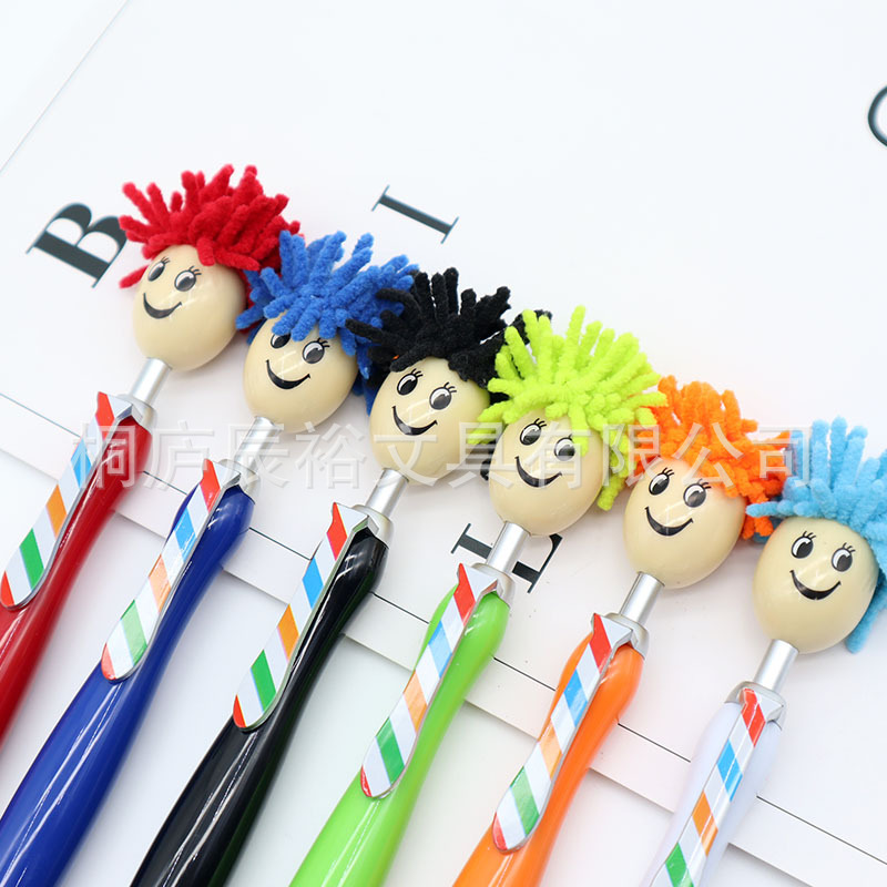 ins美式复古童趣炸毛先生触屏圆珠笔毛绒头发笑脸按动黑黑少女心