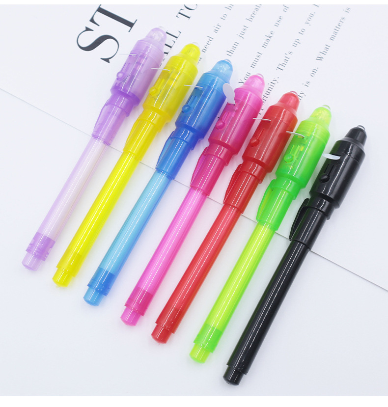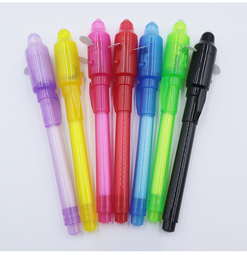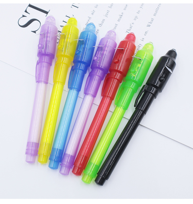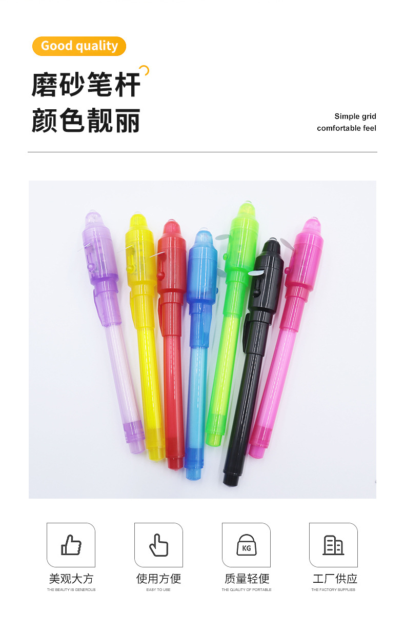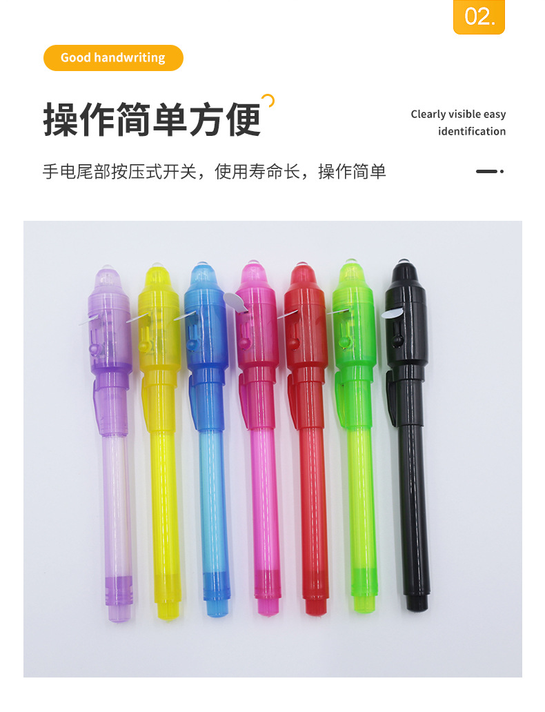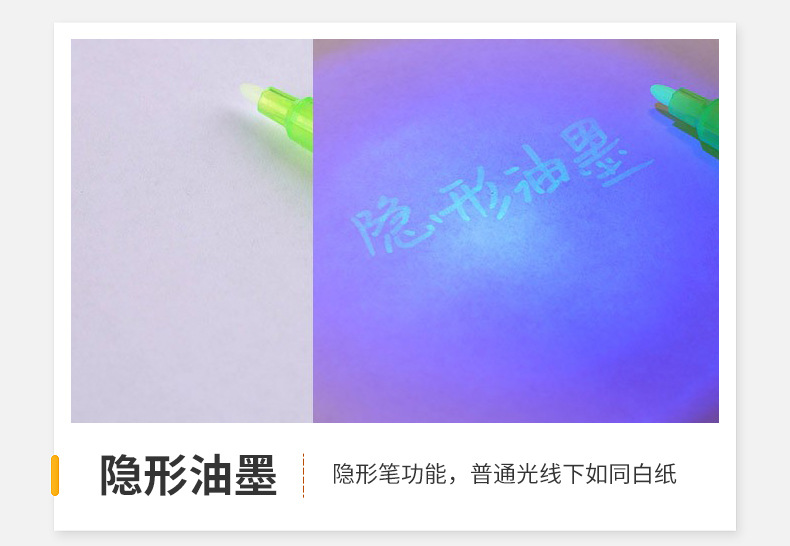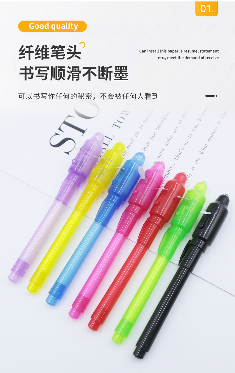 大头UV隐形灯笔LED紫外线验钞魔术7支套装荧光板亚马逊热卖发光