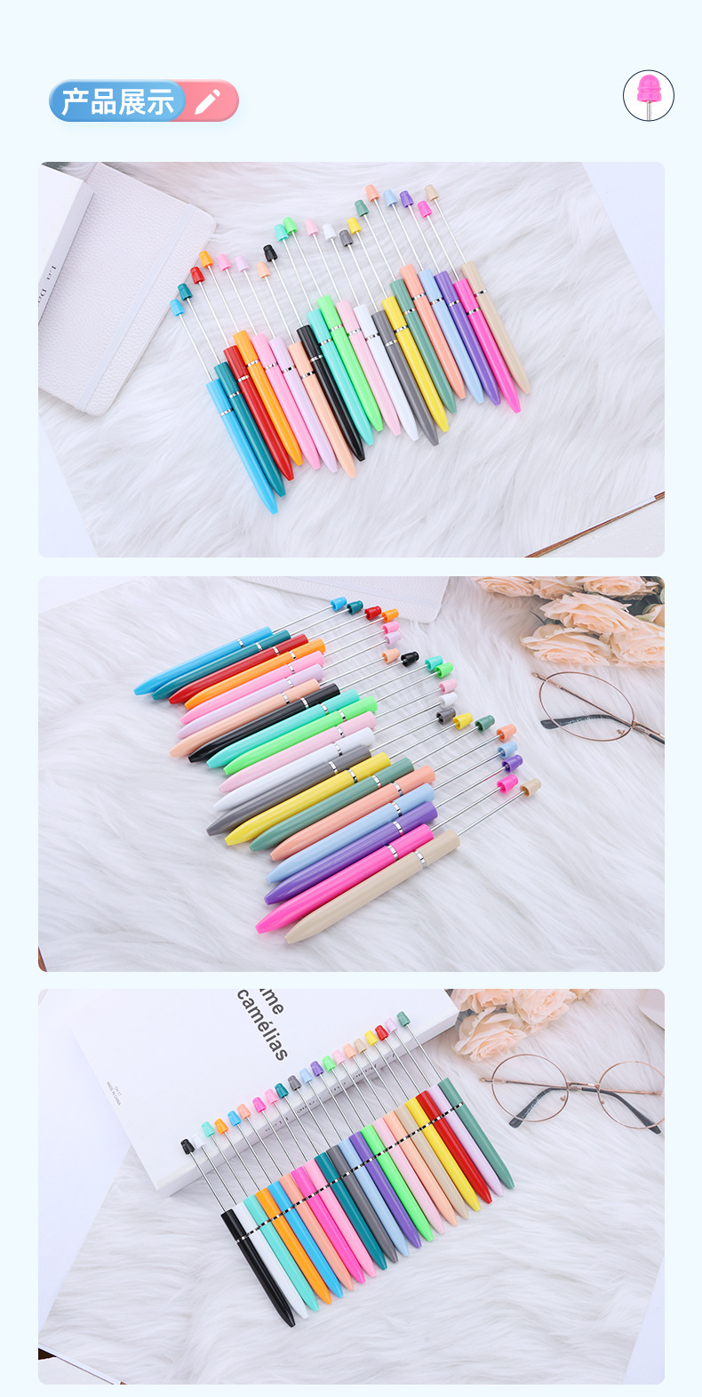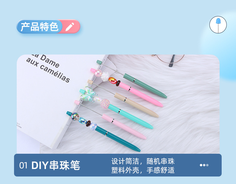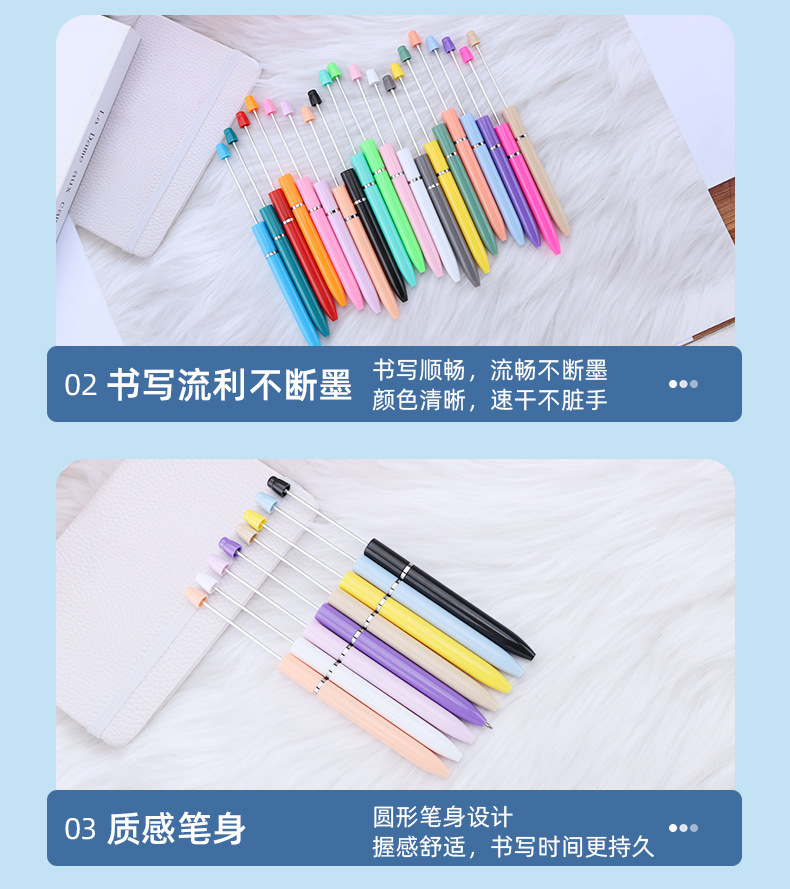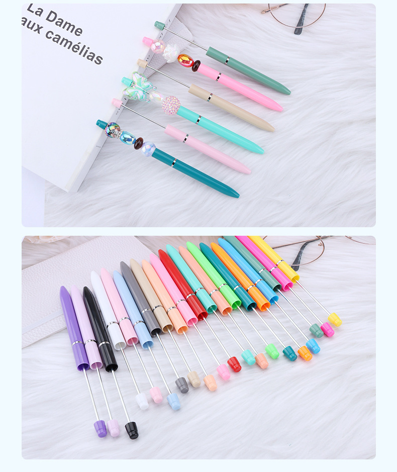 新款diy多色串珠笔 创意塑料转动圆珠笔商务礼品笔签字笔现货批发