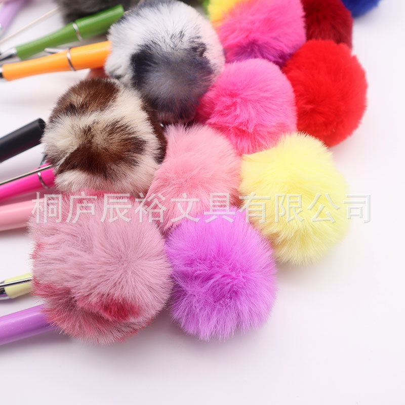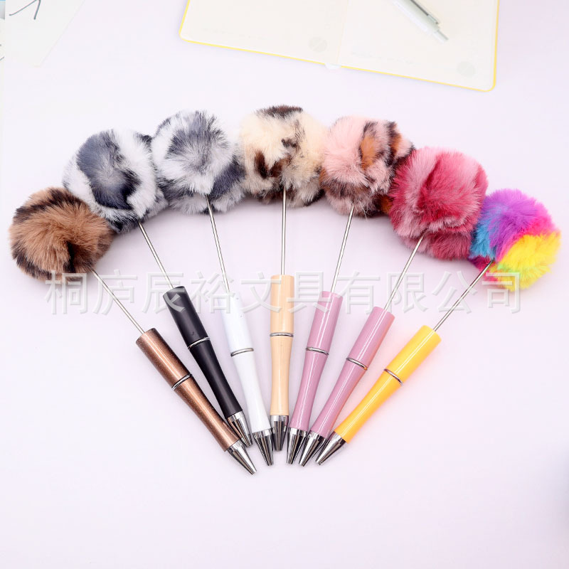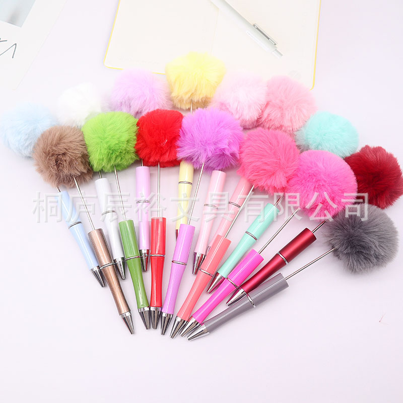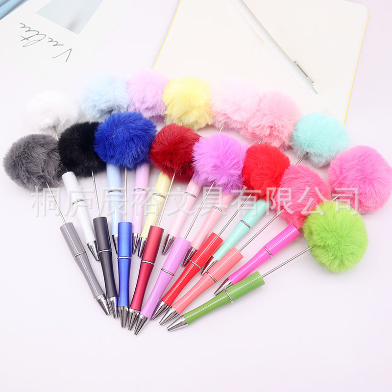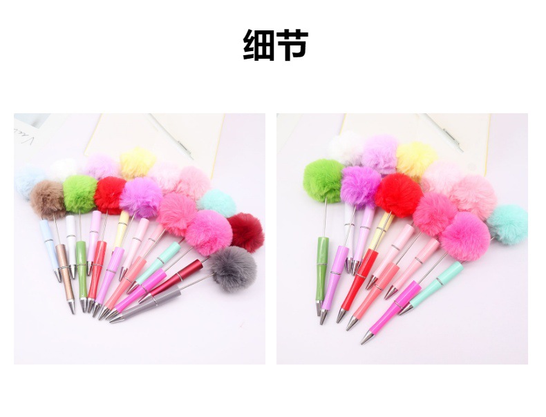 创意diy毛球串珠笔批发可爱风毛茸茸中性笔礼品笔新款多色圆珠笔