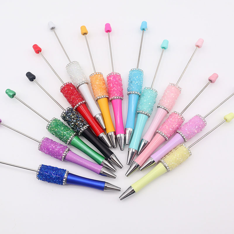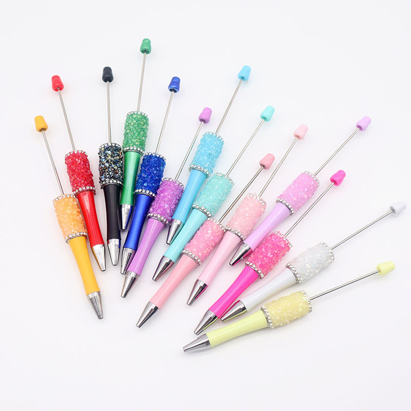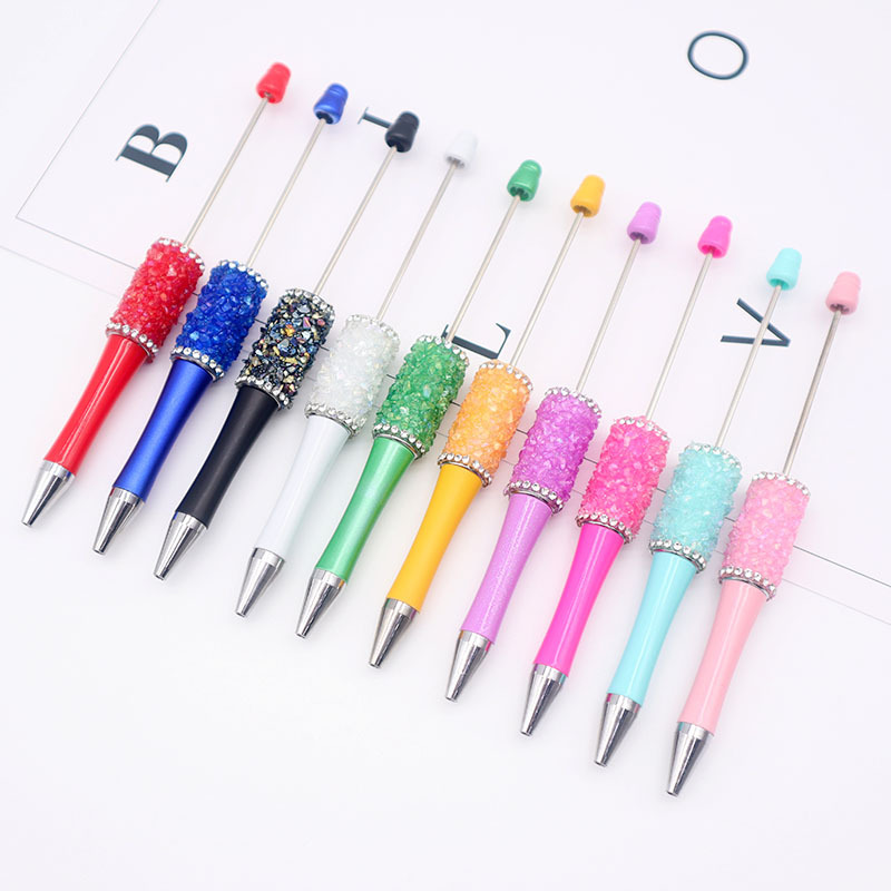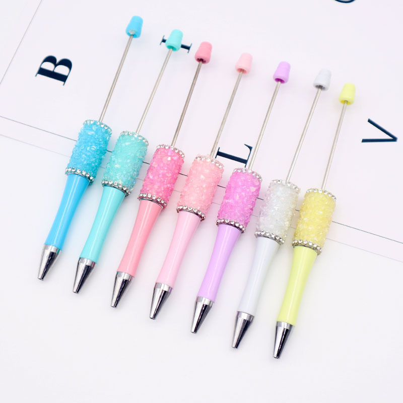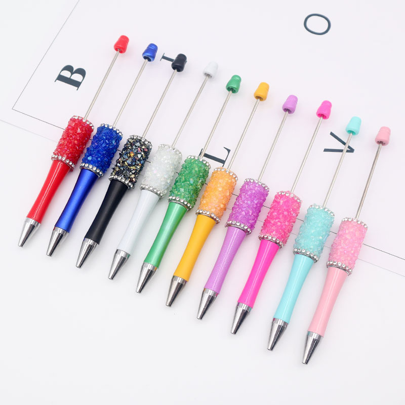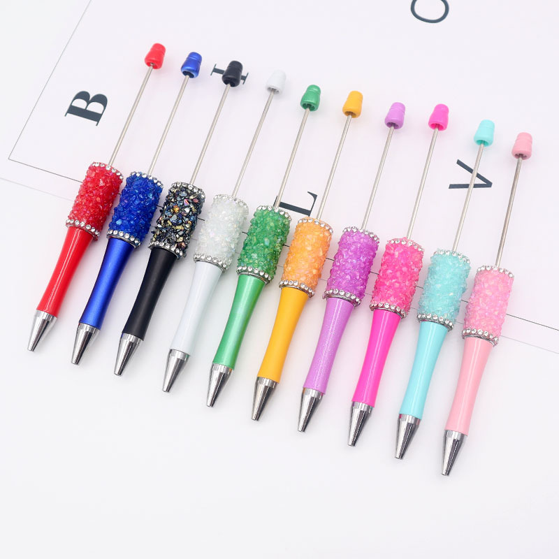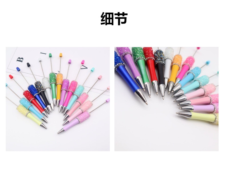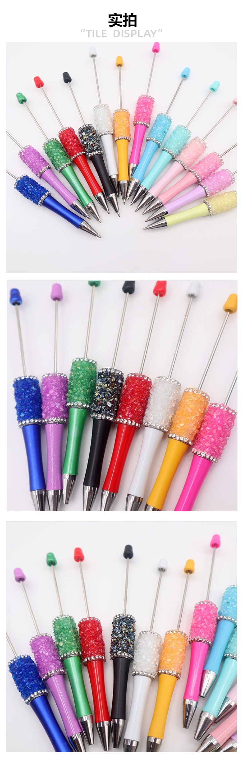 DIY水晶碎石串珠笔创意手工贴贴镶钻笔新款可爱少女心塑料笔批发