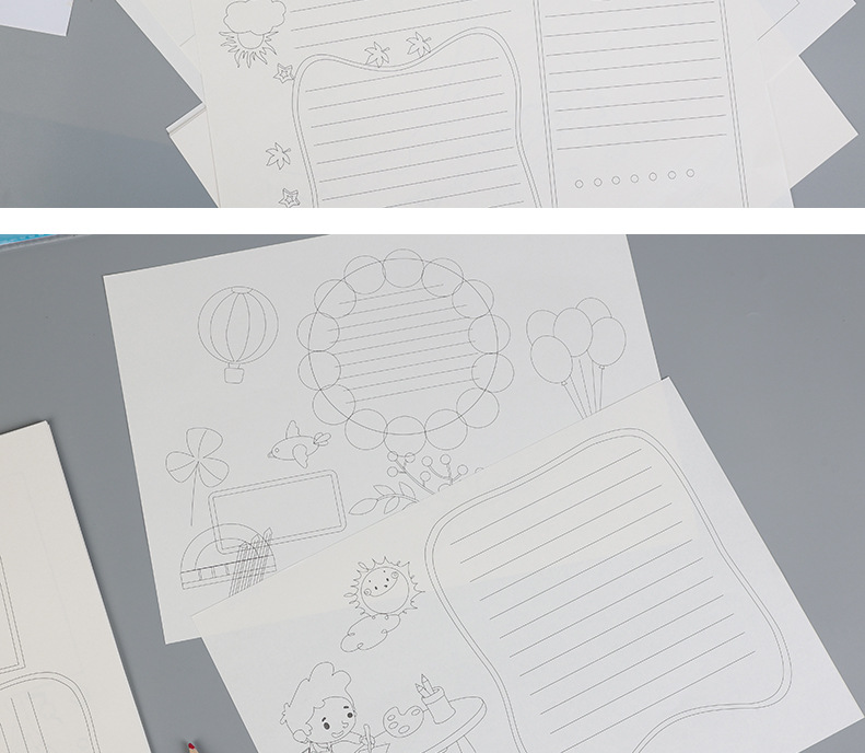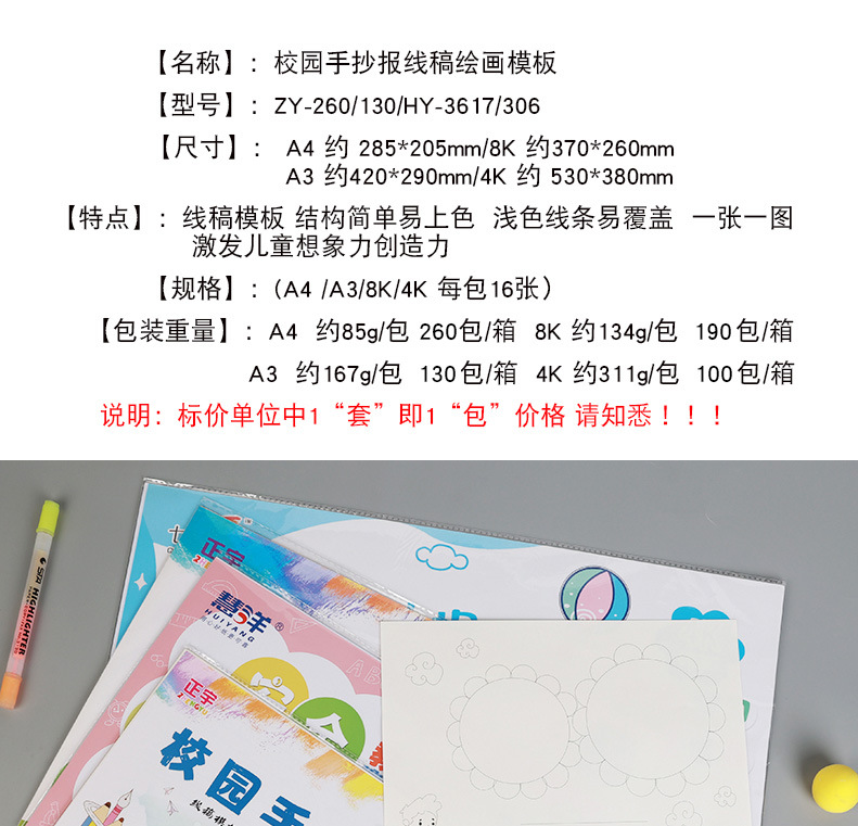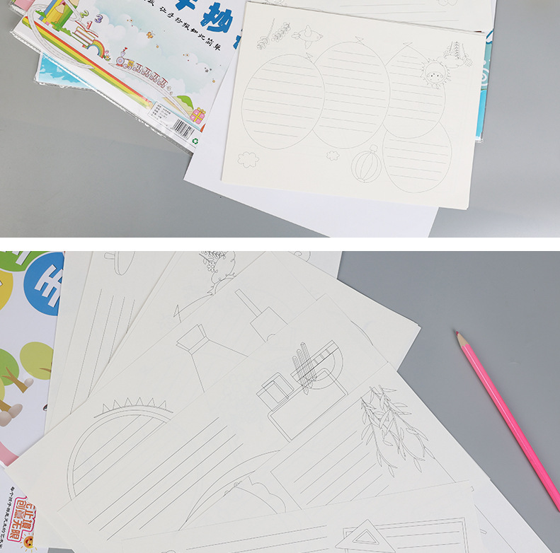 16张A4校园手抄报专用线稿小学生空白绘画模板A3 8K 4K校园黑板报