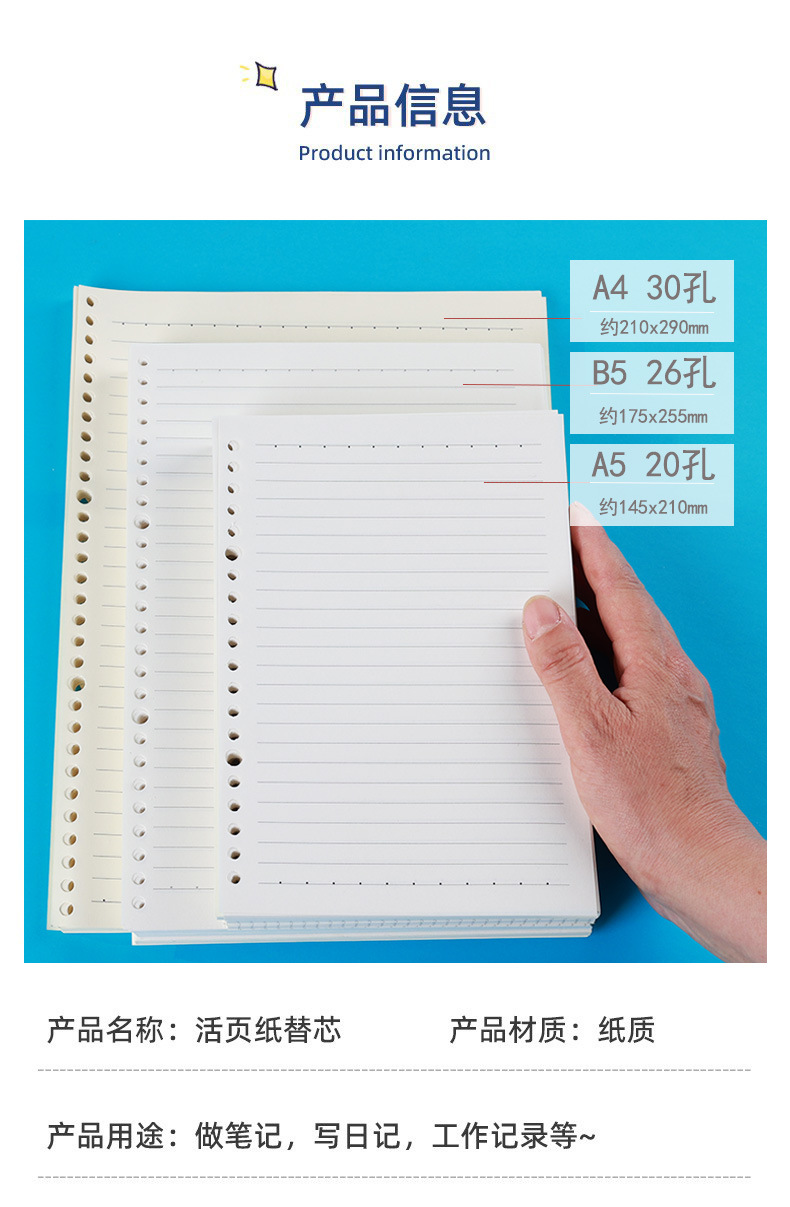 | a5 horizontal line 20 holes-60 sheets-refill(A5横线20孔-60张-替芯) | USD $0.33 | 9892 ben available |