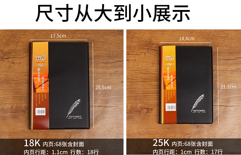 黑皮商务记事本简约办公笔记本18K25K32K36K48K60K100K会议记录本