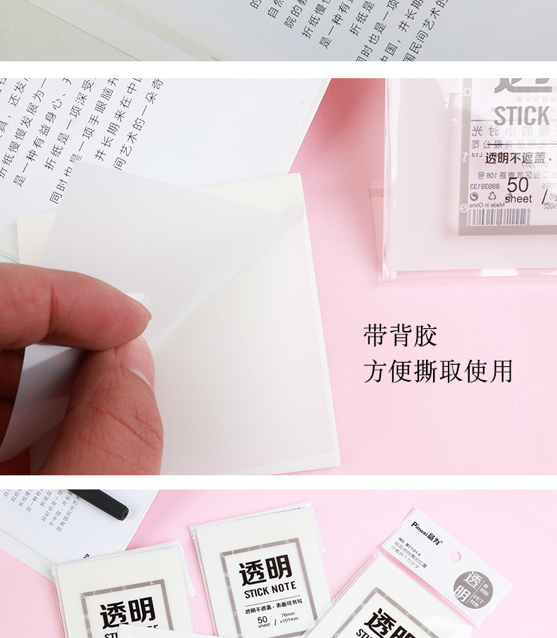 品为透明便利贴透视贴学生N次贴可粘贴可撕简约便签贴纸防水可写