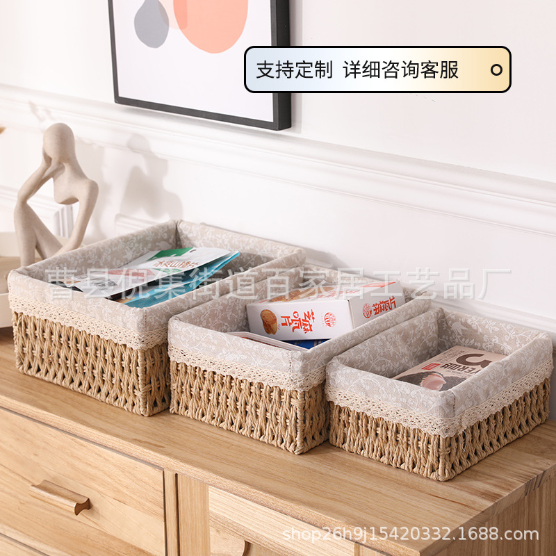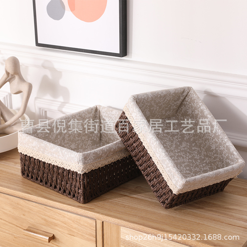 桌面收纳盒化妆品钥匙零食茶几杂物客厅玄关家用编织收纳筐收纳篮