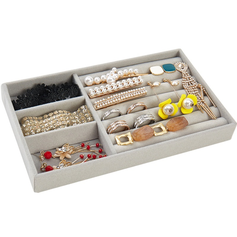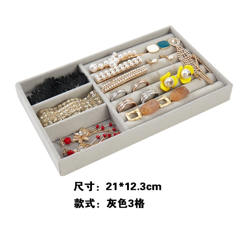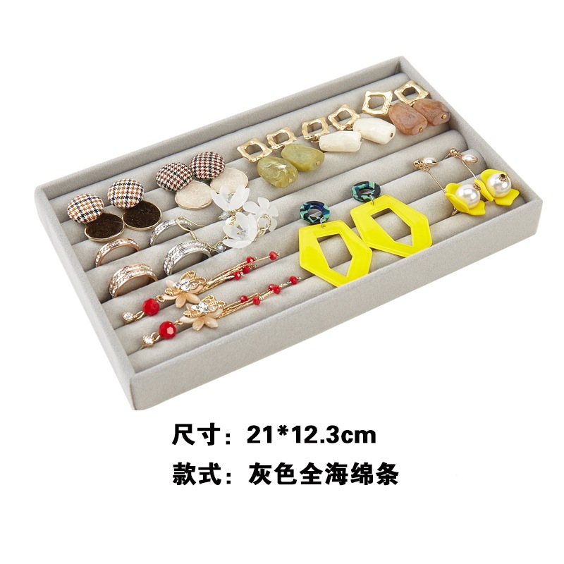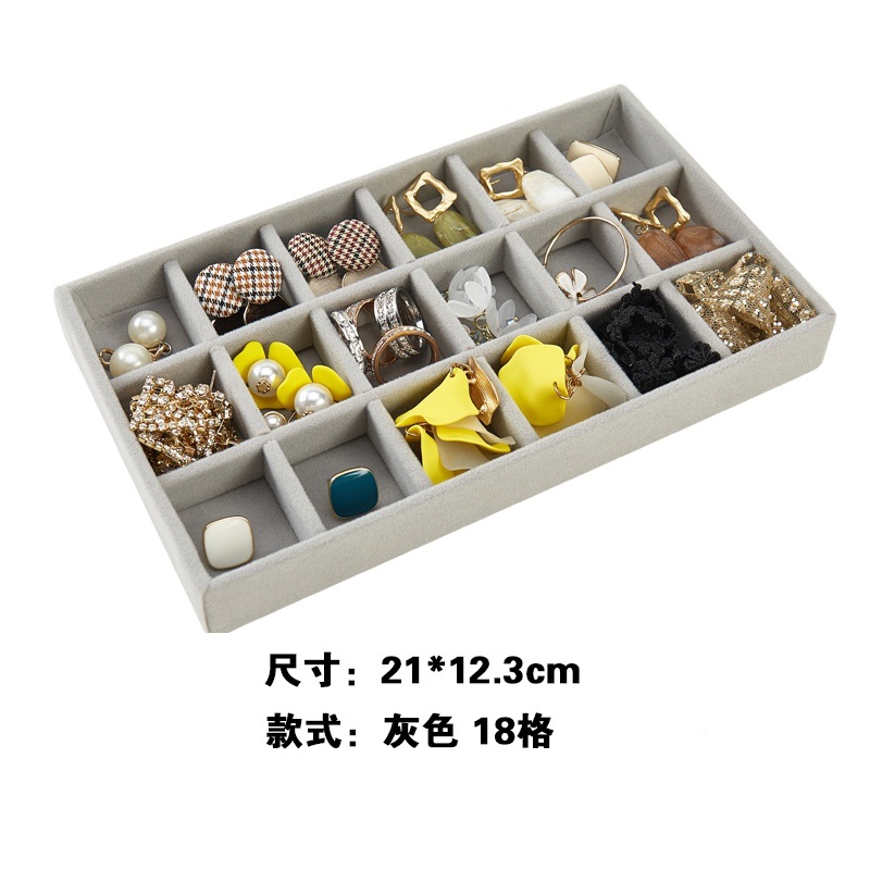 灰色植绒首饰盒耳钉耳饰收纳盒耳环盒子饰品盒首饰整理盒可叠加