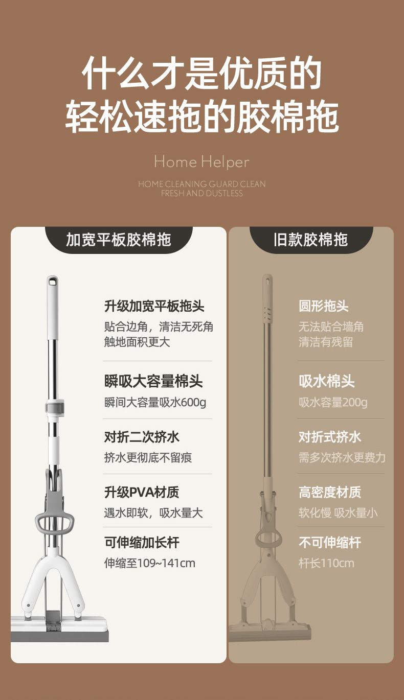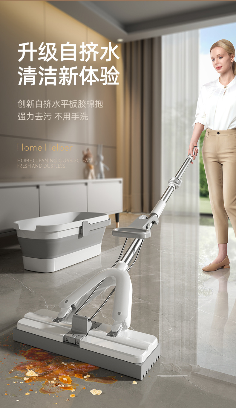 加厚海绵拖把家用新款一拖免手洗拖布净吸水拖把对折胶棉拖地神器