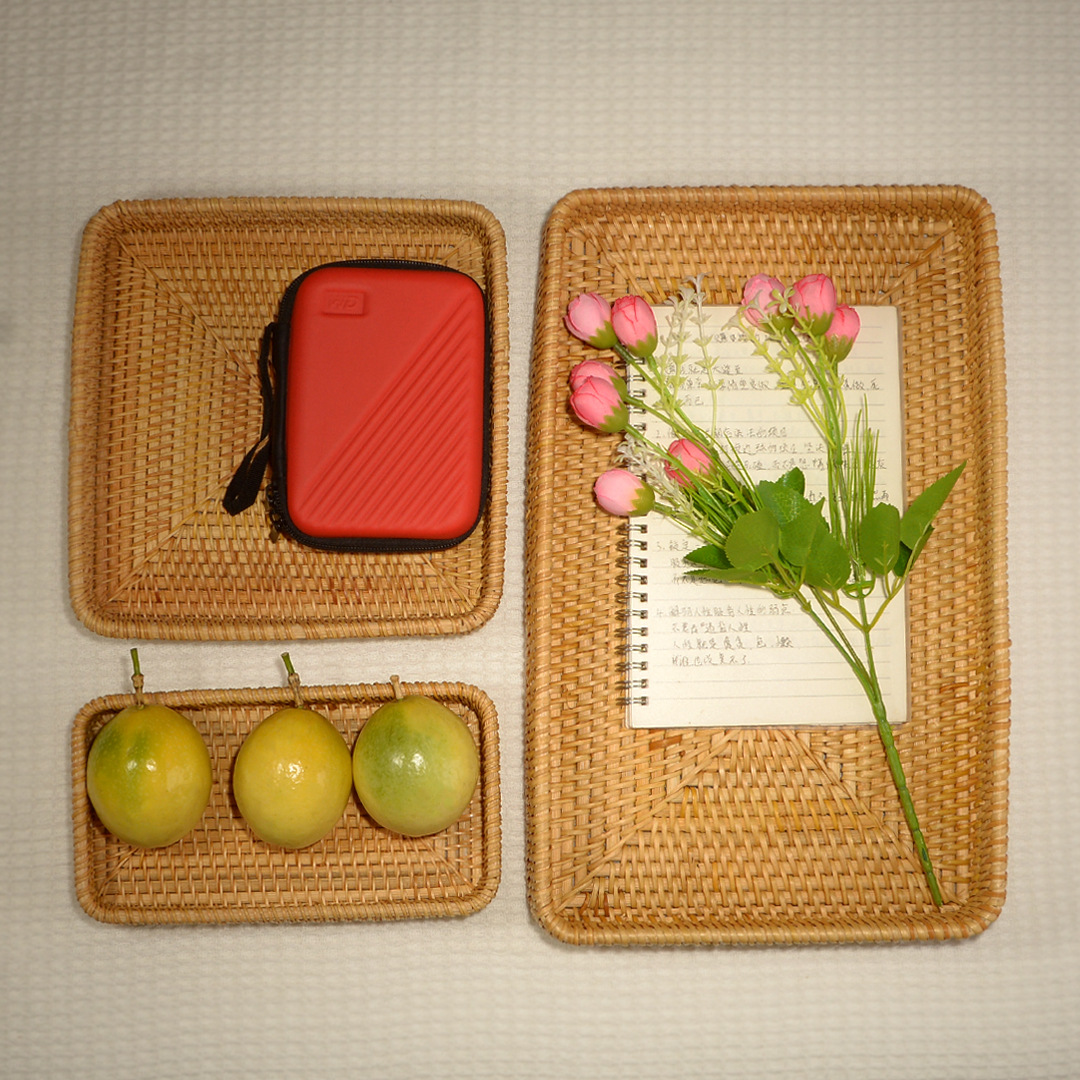 藤编收纳筐果盘日式面包篮客厅水果篮家用手工托盘酒店托盘毛巾篮