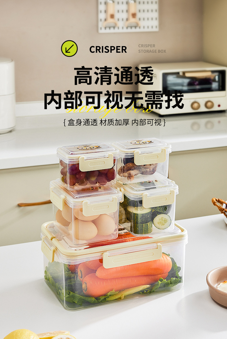 保鲜盒冰箱收纳盒专用带把手透明密封盒冷冻防潮水果整理盒大容量