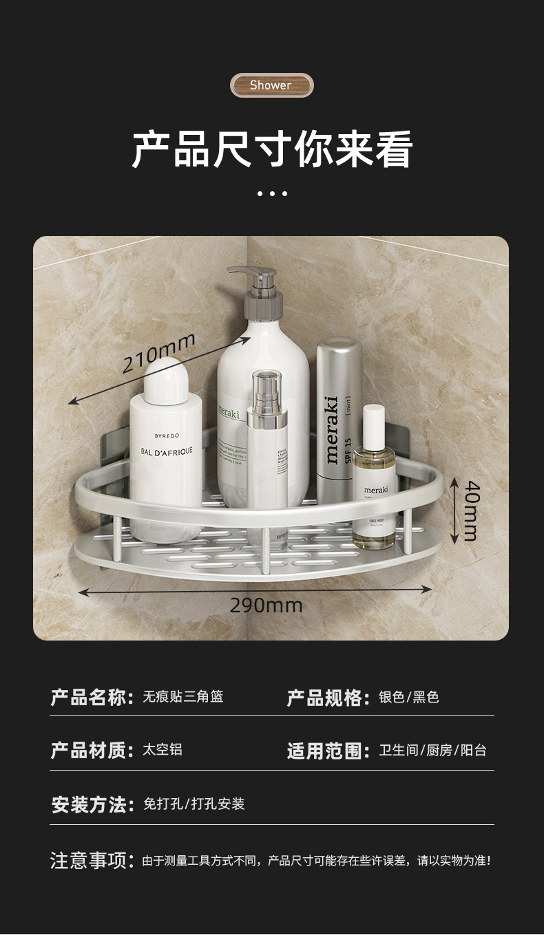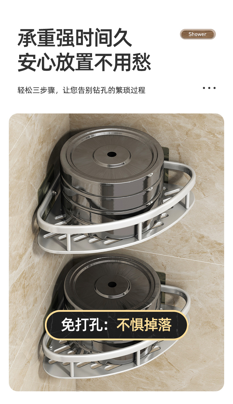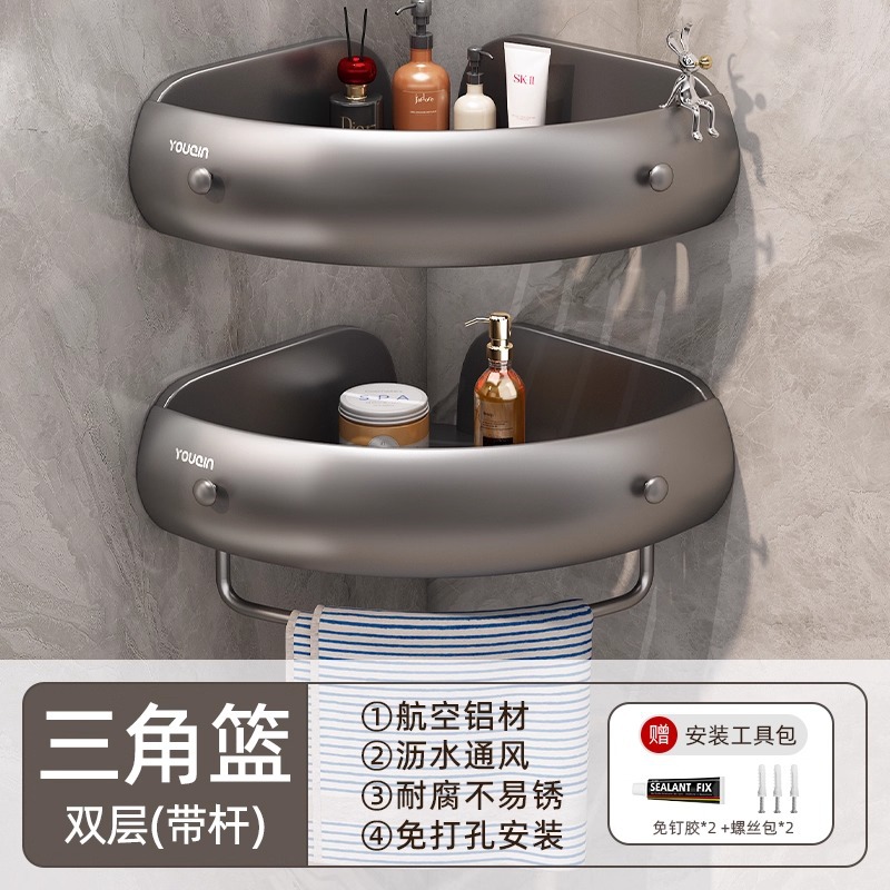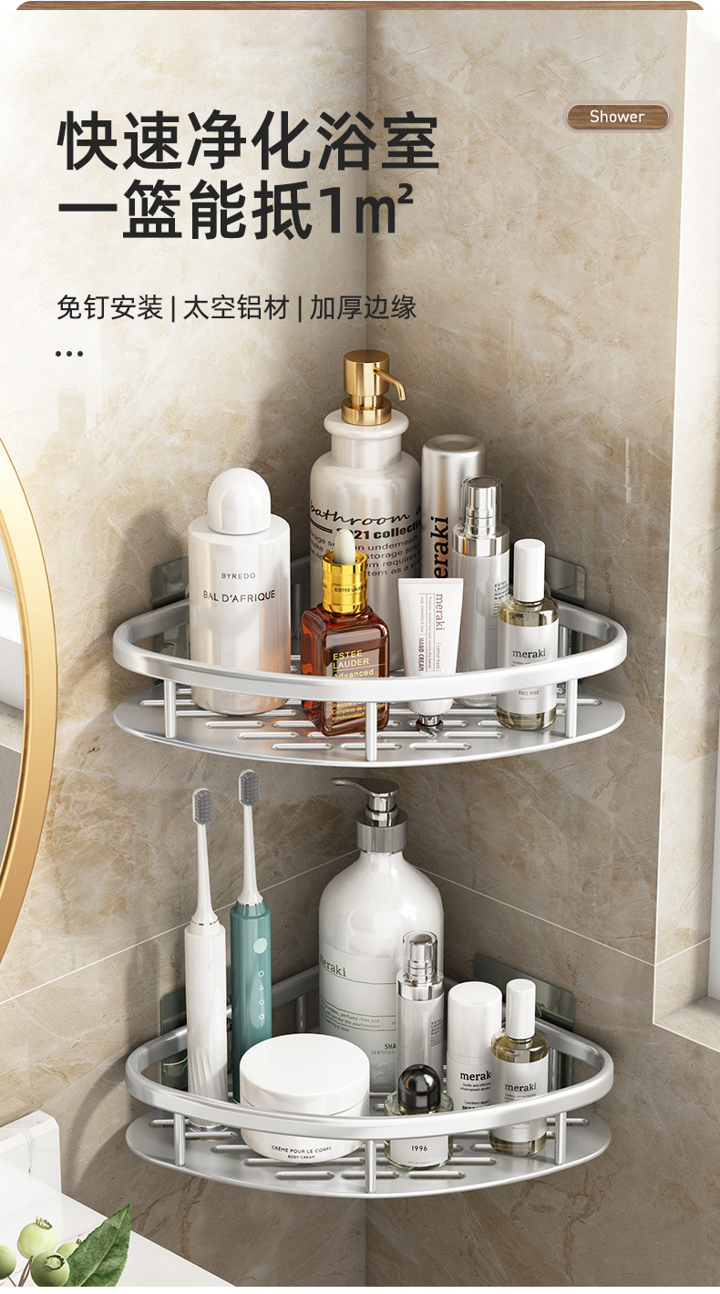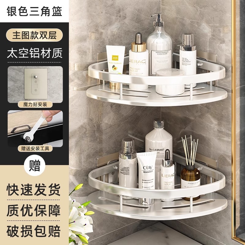 卫生间置物架免打孔浴室壁挂转角洗手台壁挂式厕所三角厨房收纳架