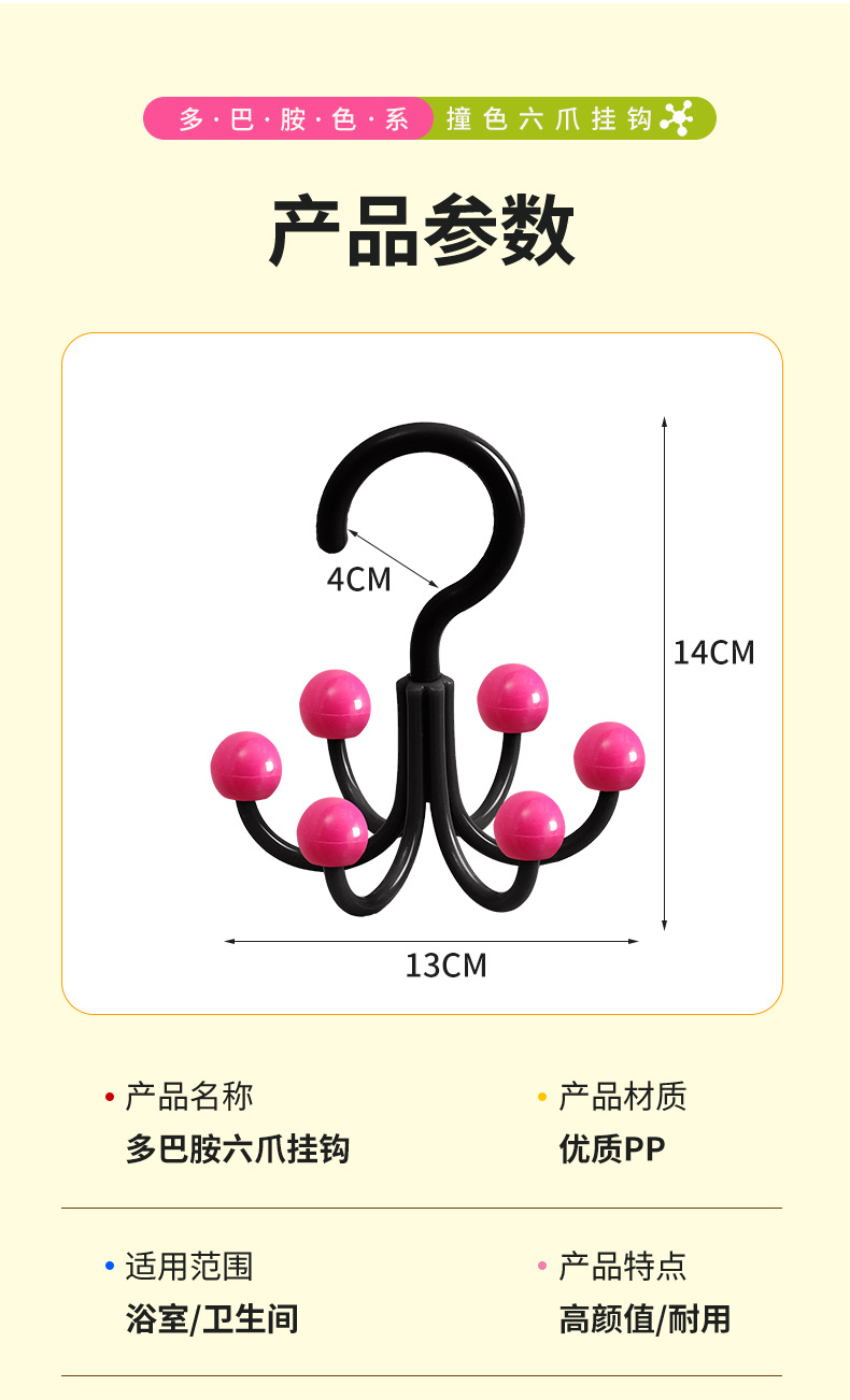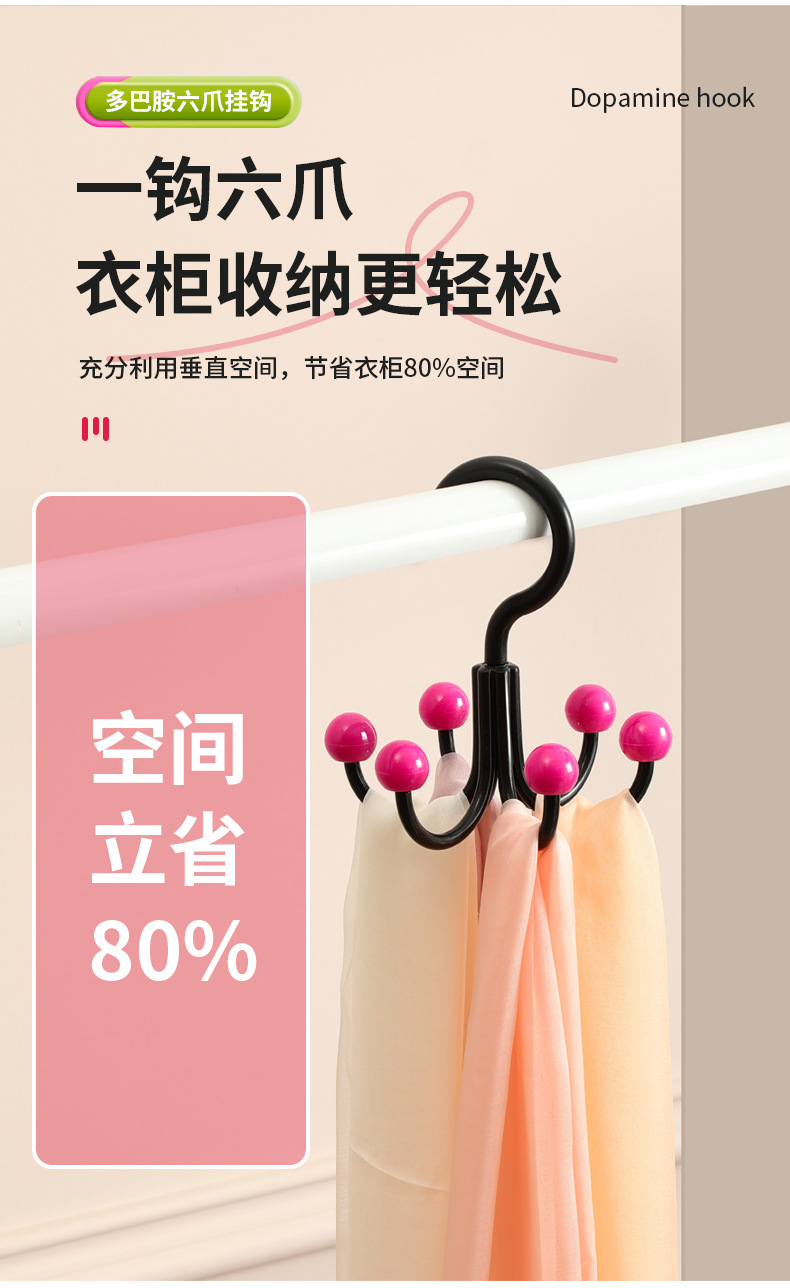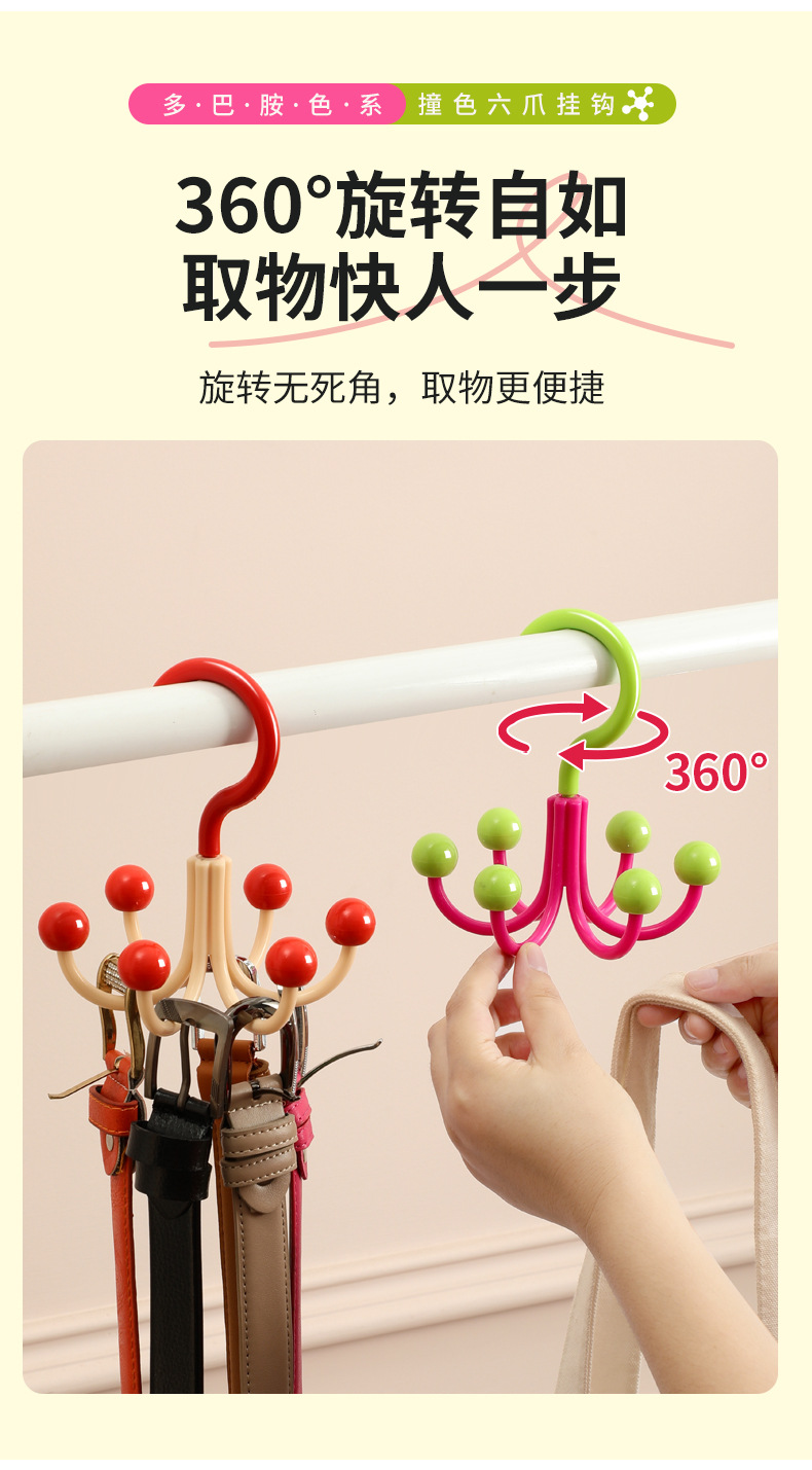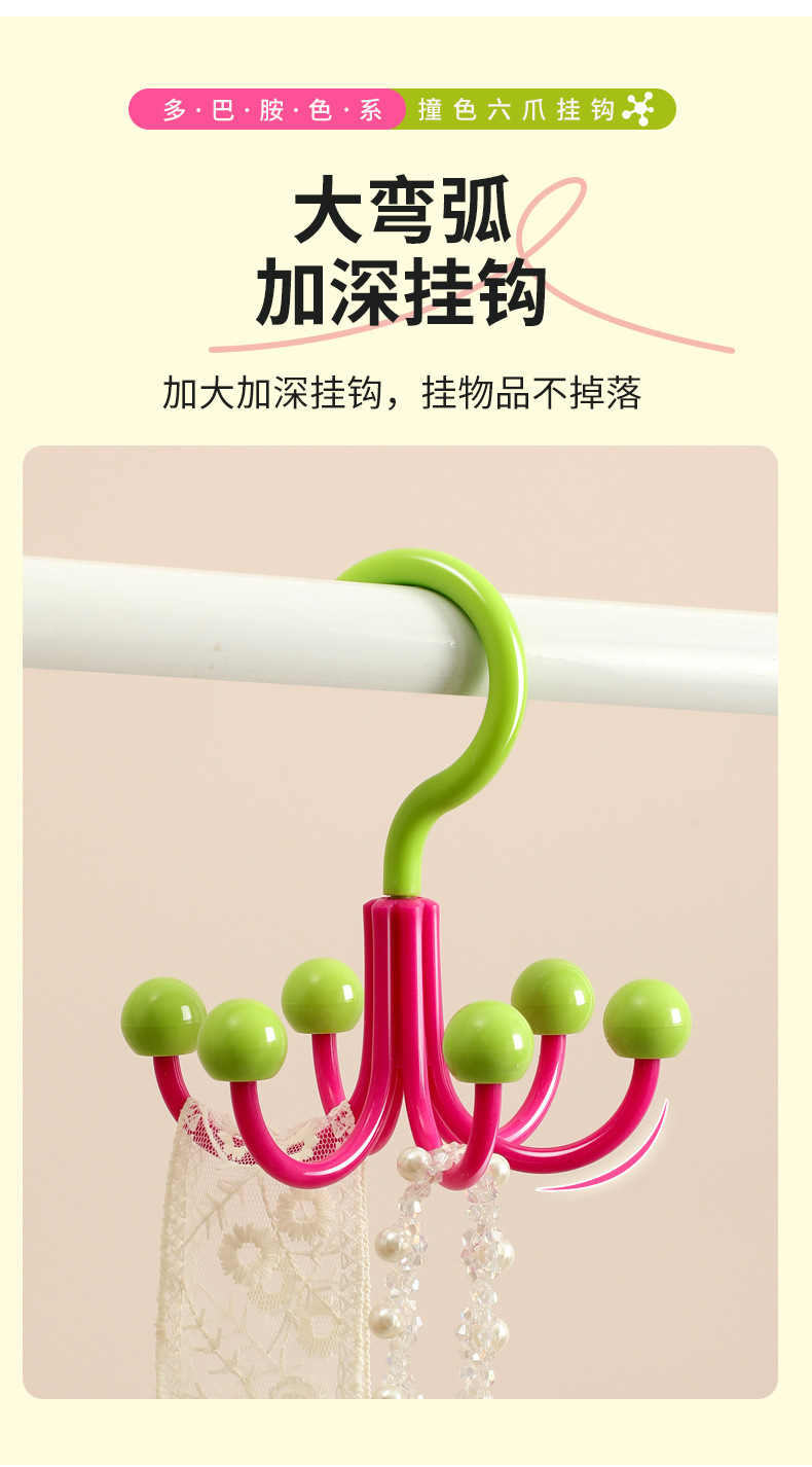 可旋转六爪挂钩挂包架家用多功能内衣衣帽挂钩收纳神器配饰挂钩