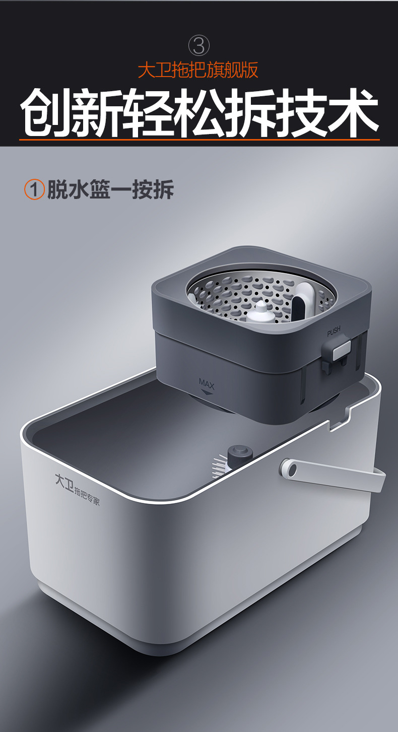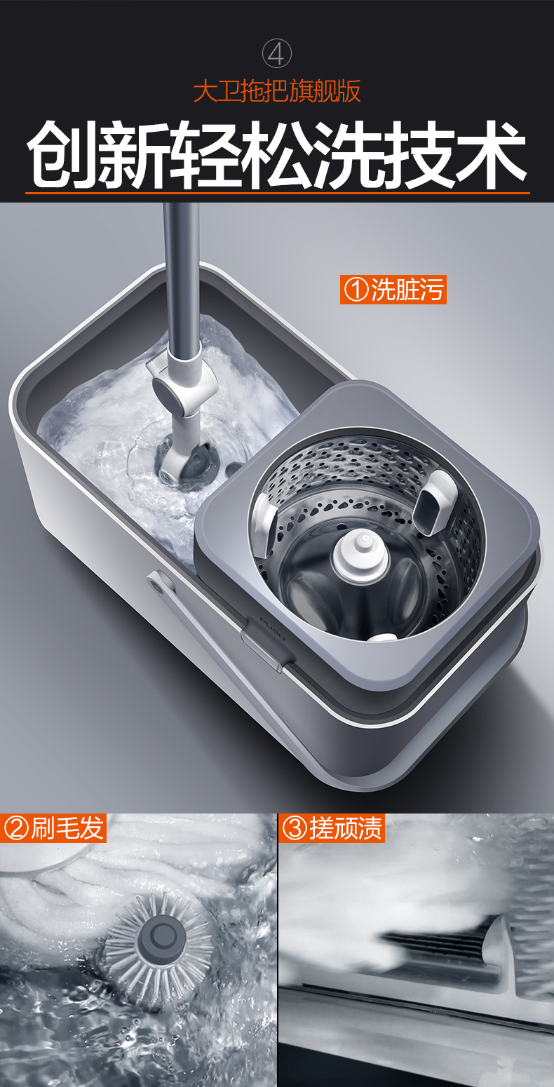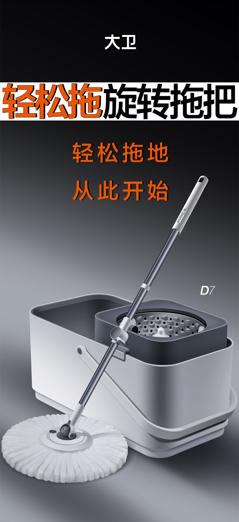 大卫免手洗拖把家用旋转2024新款懒人桶一拖墩布净甩干自动地拖布