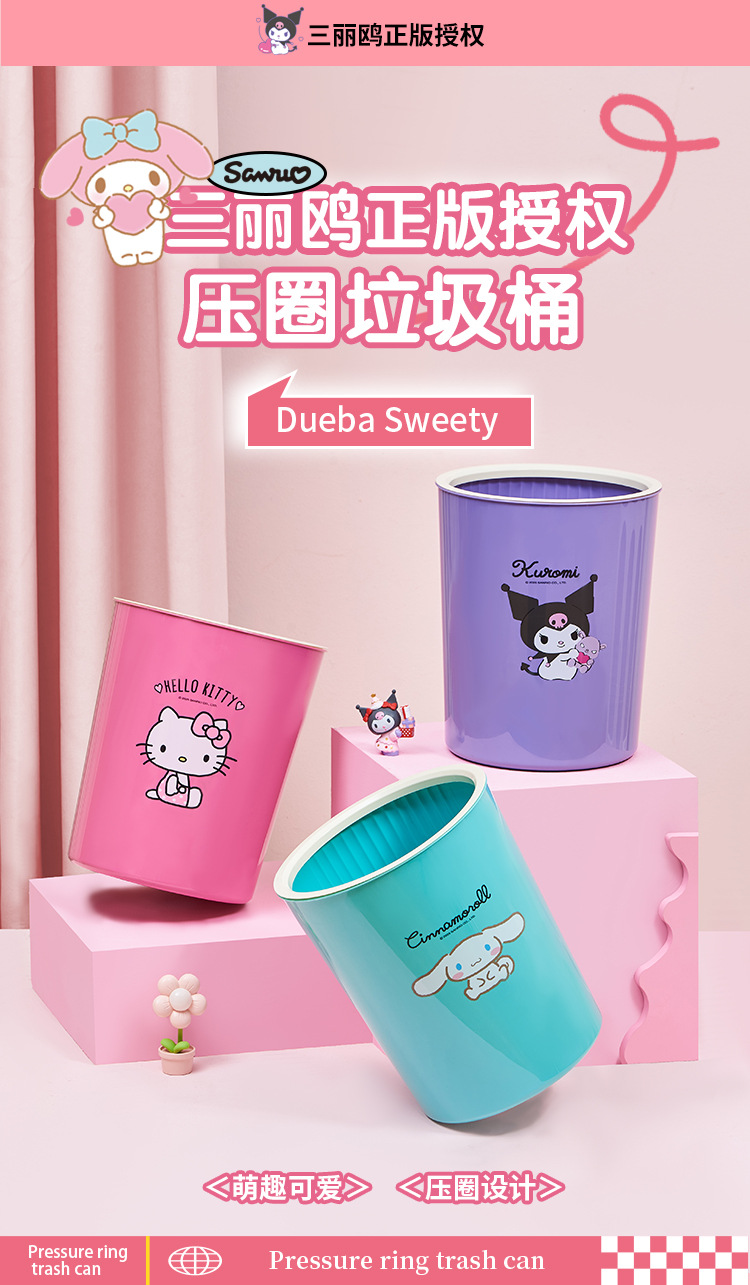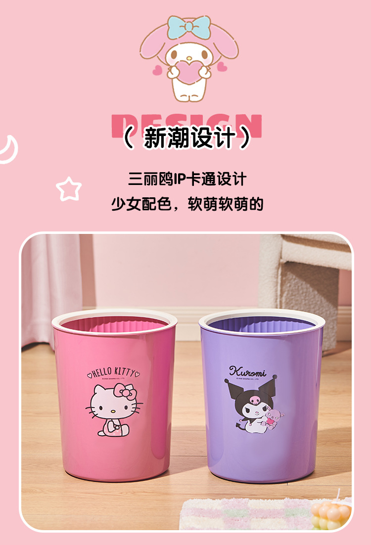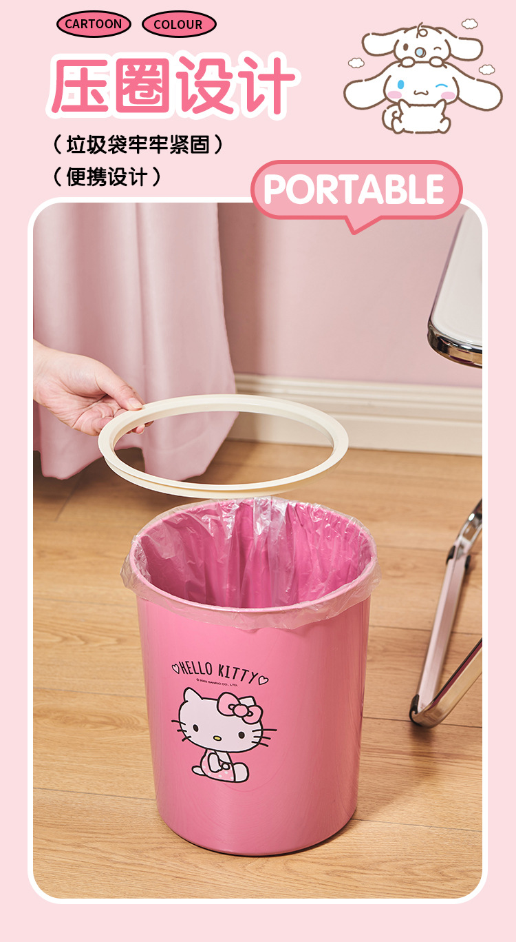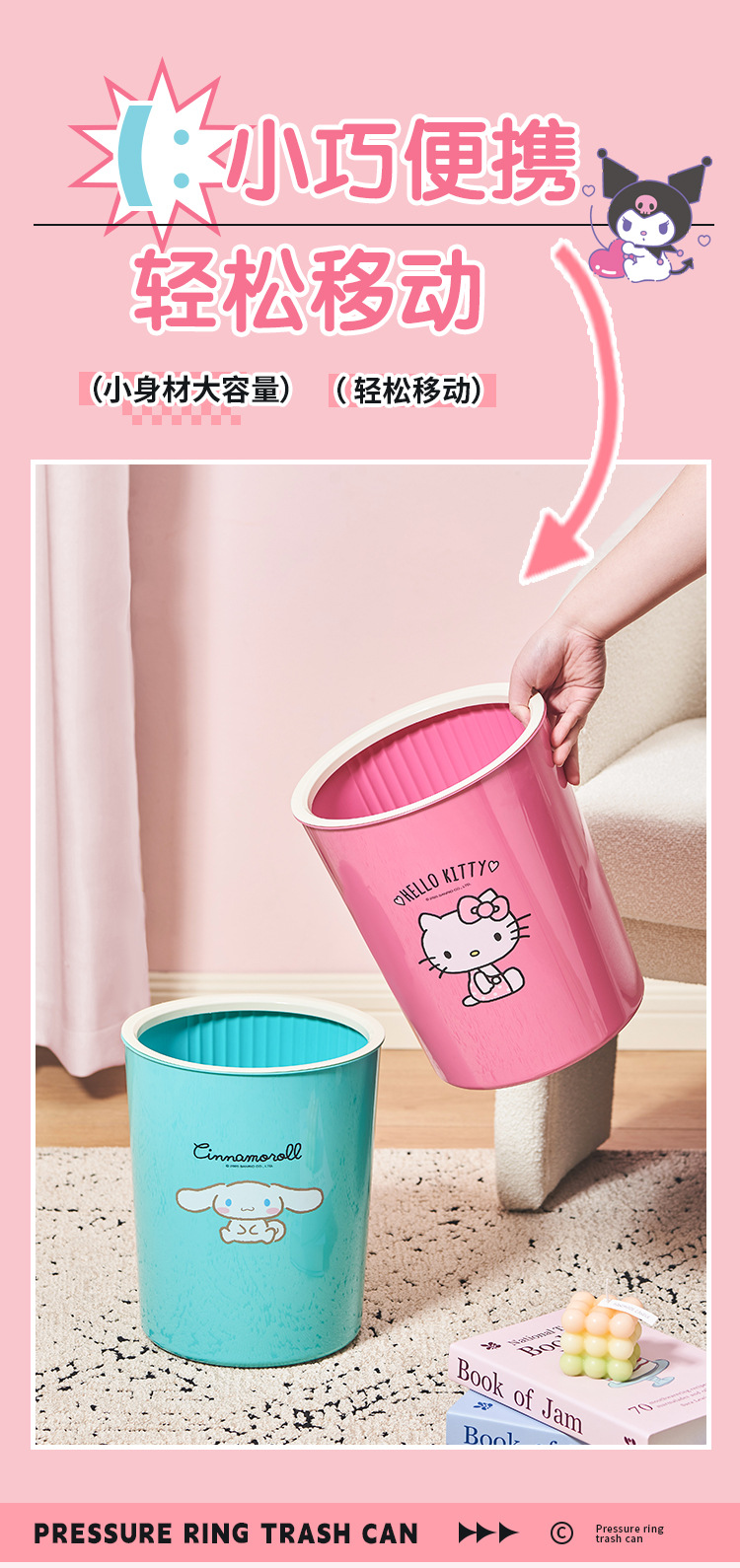 垃圾桶家用2025新款卡通纸篓客厅卧室厨房高颜值带压圈儿童垃圾桶