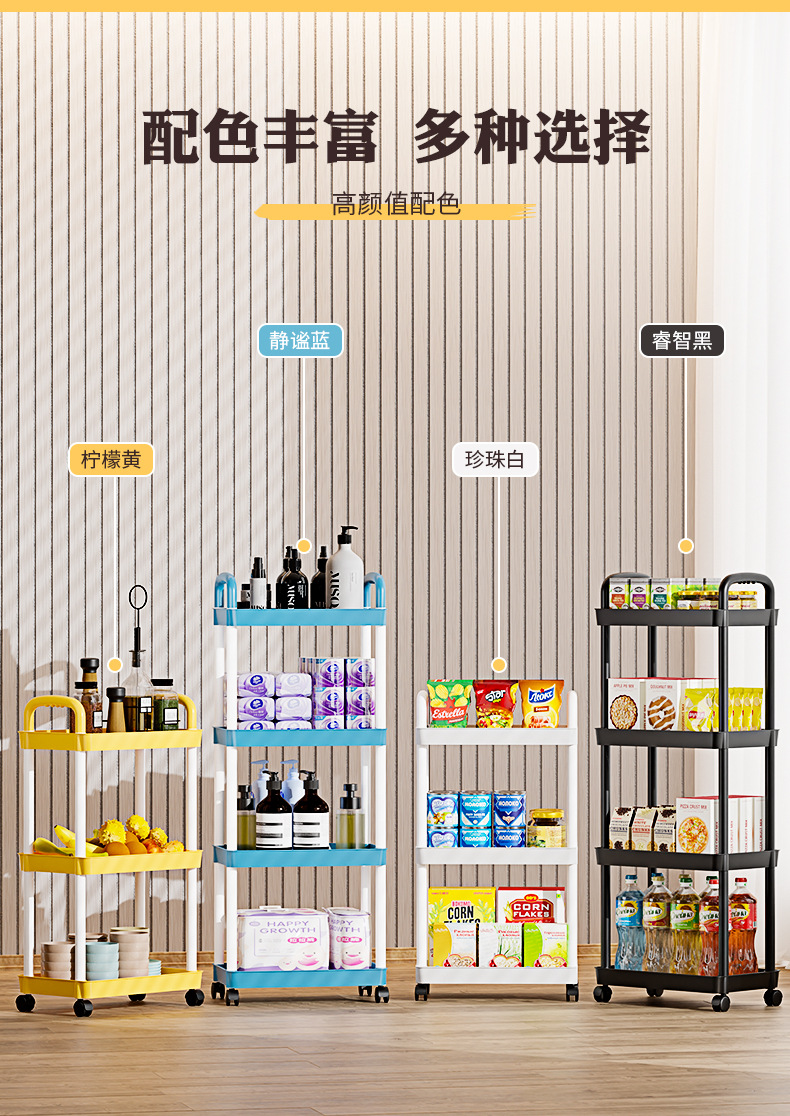 小推车置物架卧室卫生间落地多层零食厨房浴室移动收纳储物架