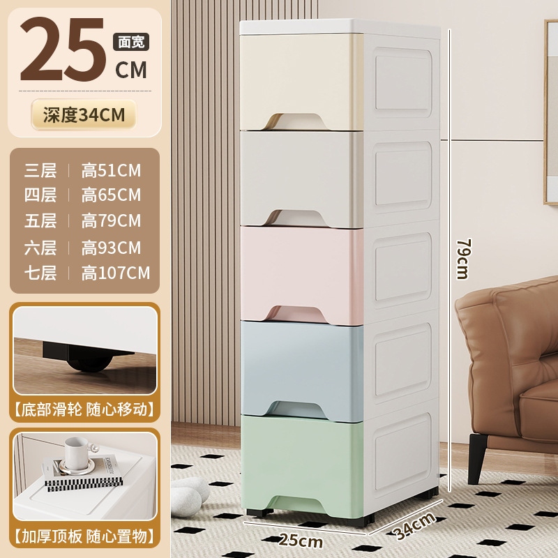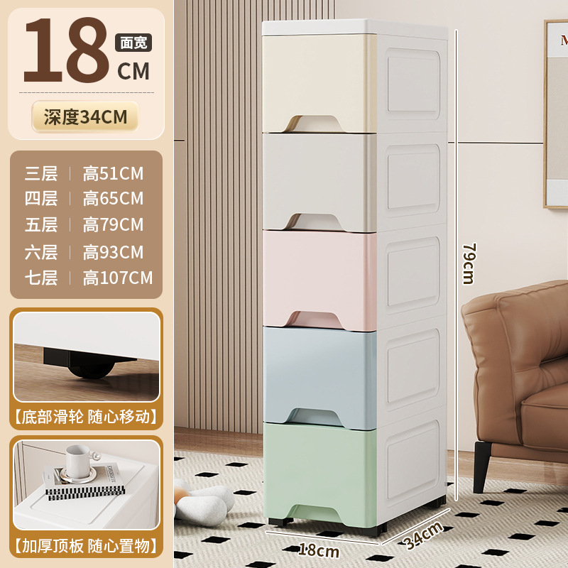 15/18/25cm卫生间夹缝收纳柜抽屉式塑料多层家用窄缝储物柜置物柜