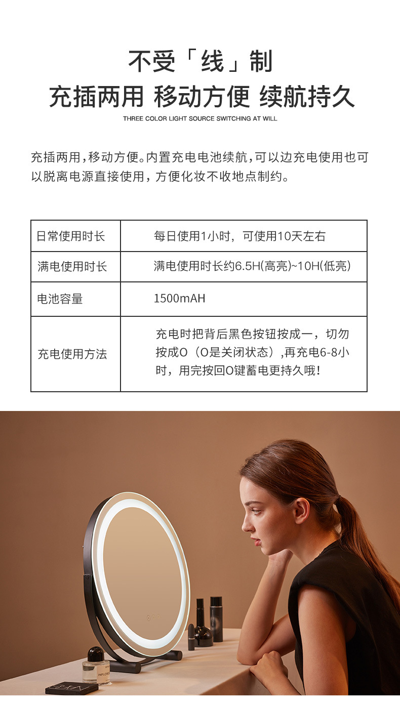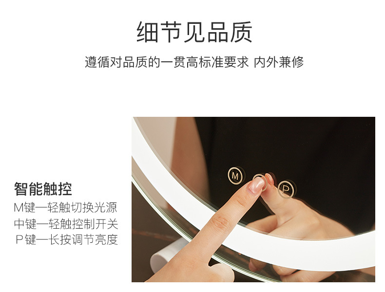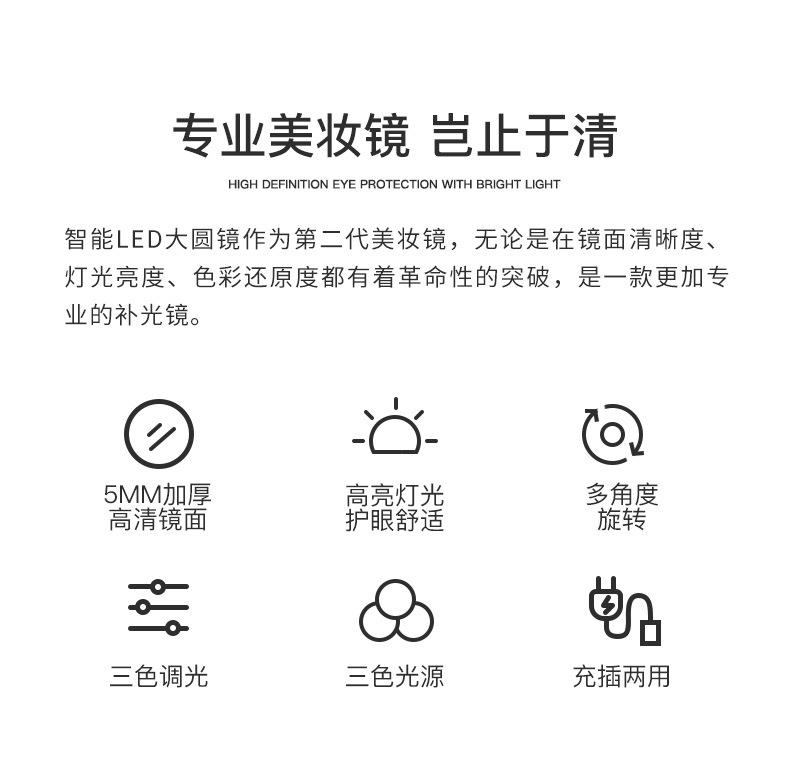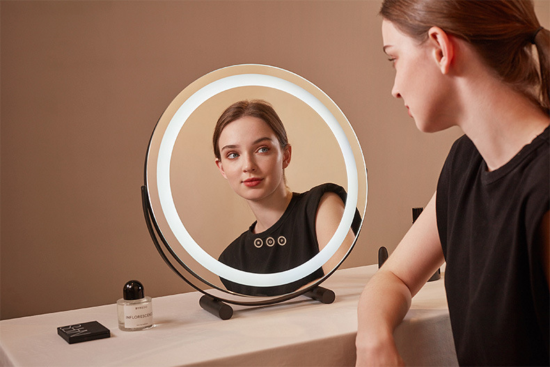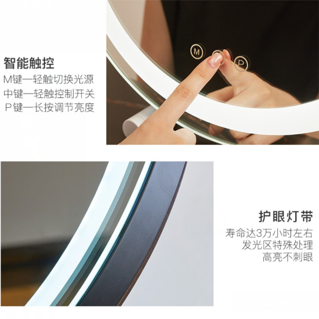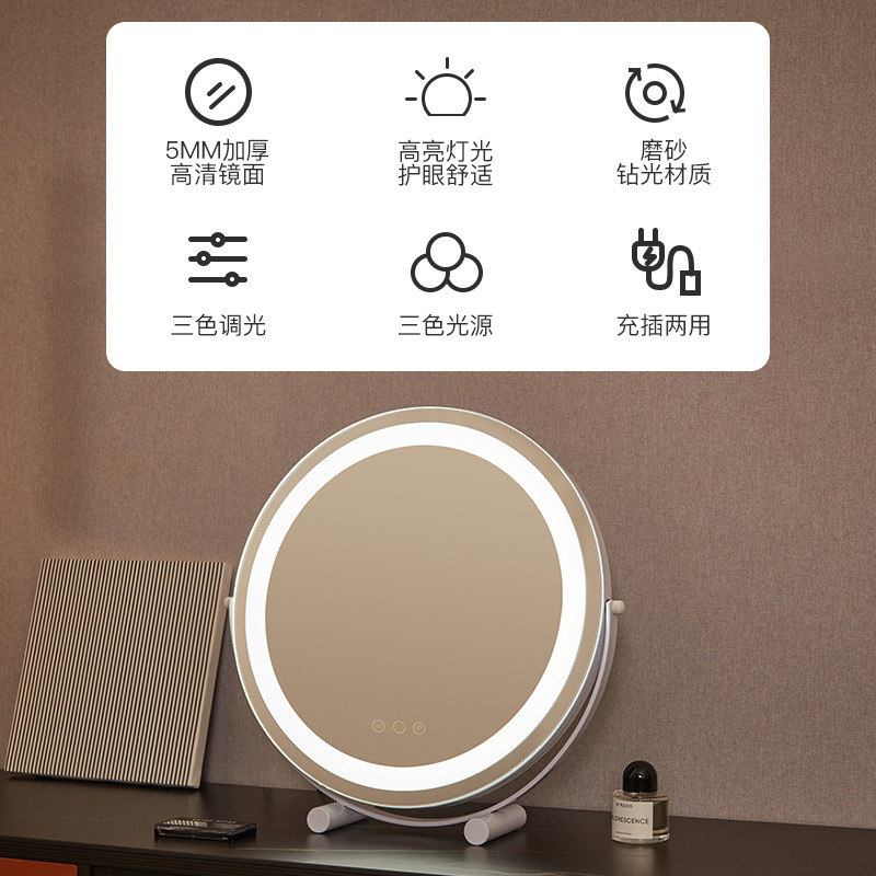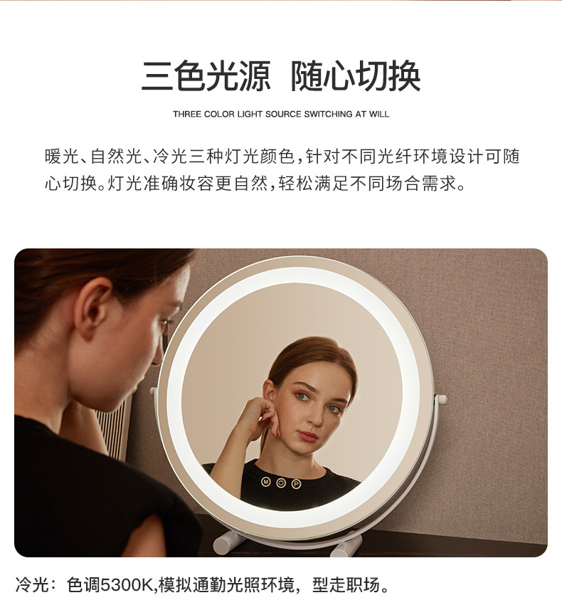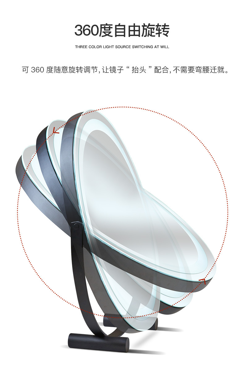 一件代发 网红智能LED化妆镜 金属旋转补光灯镜 宿舍桌面梳妆镜