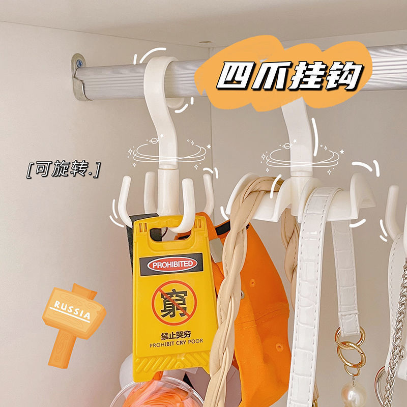 加厚旋转四爪挂钩创意多功能包包收纳挂钩防折痕免打孔衣帽挂架
