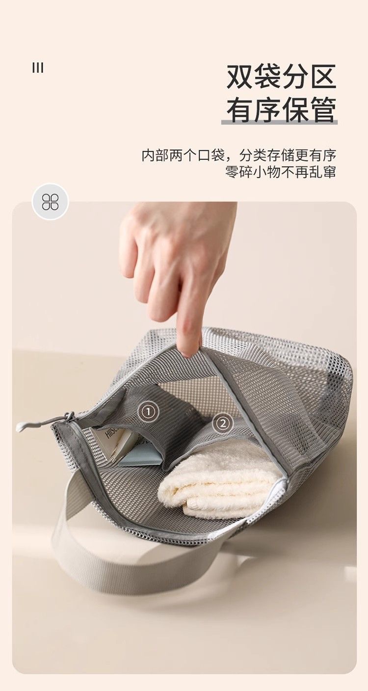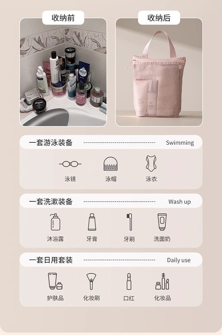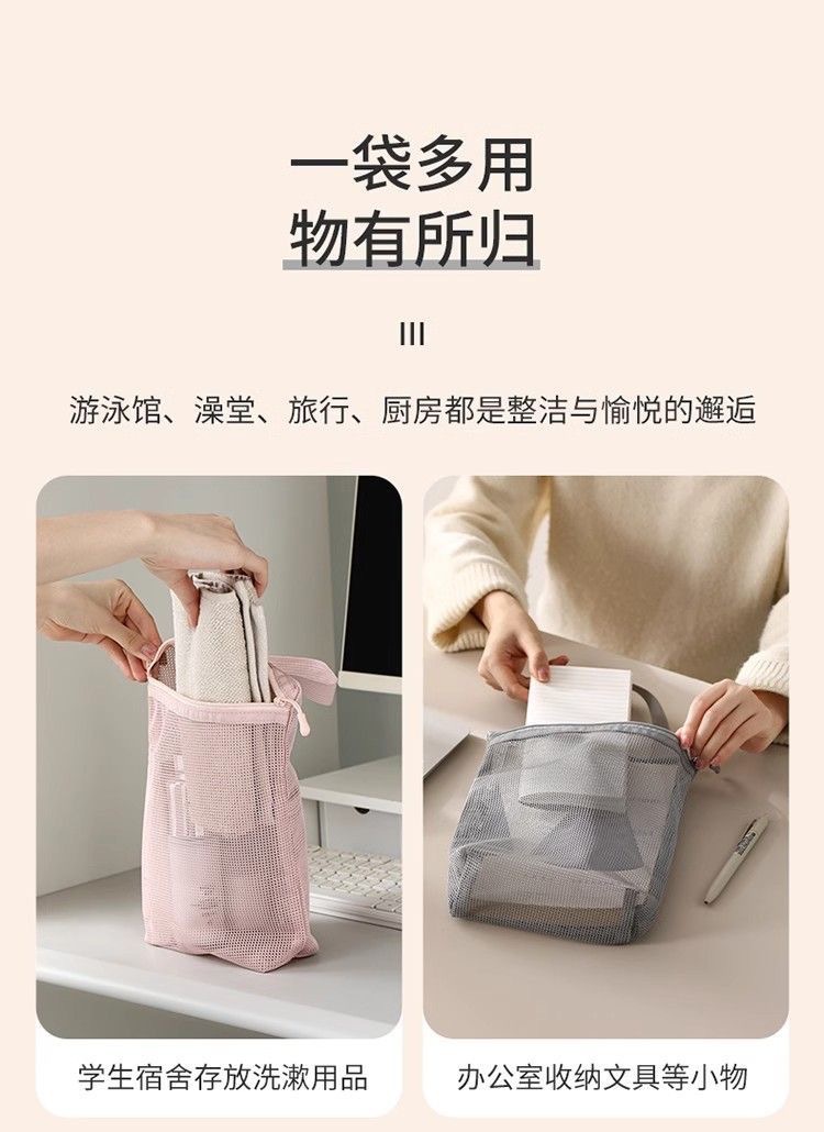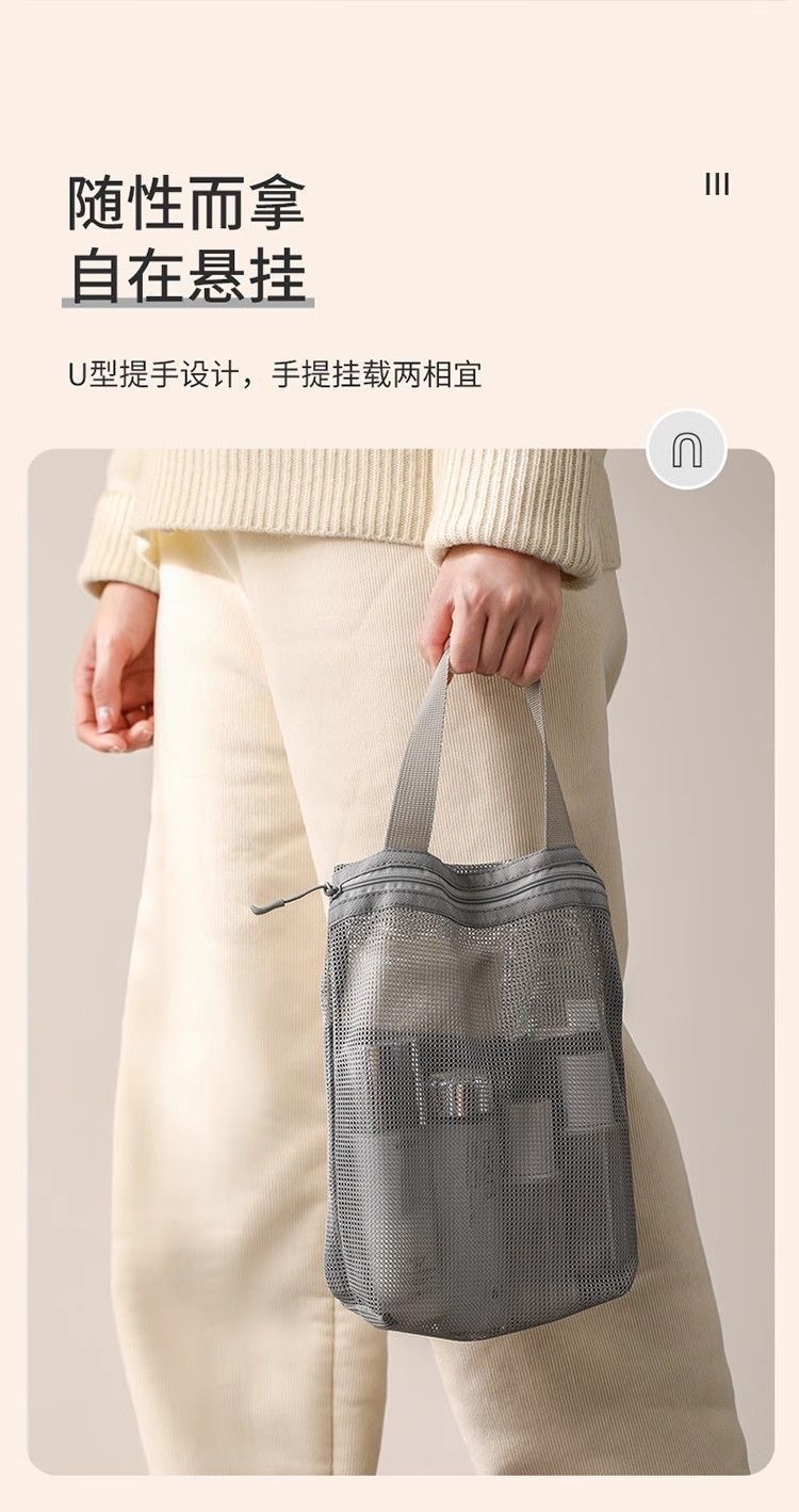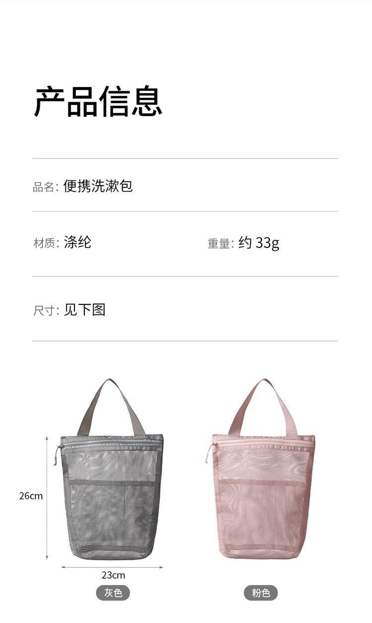ins 简约洗漱包网眼手提化妆包女洗浴健身旅行便携透气沥水收纳袋