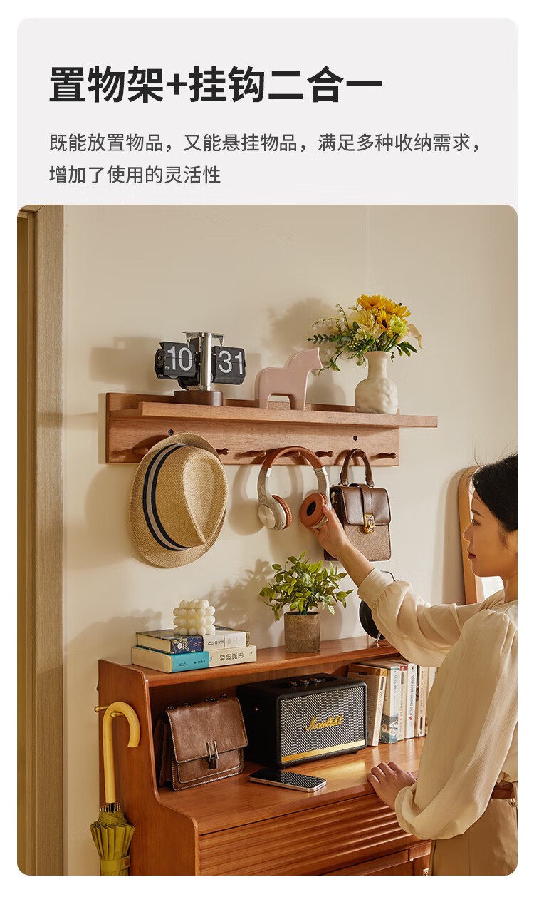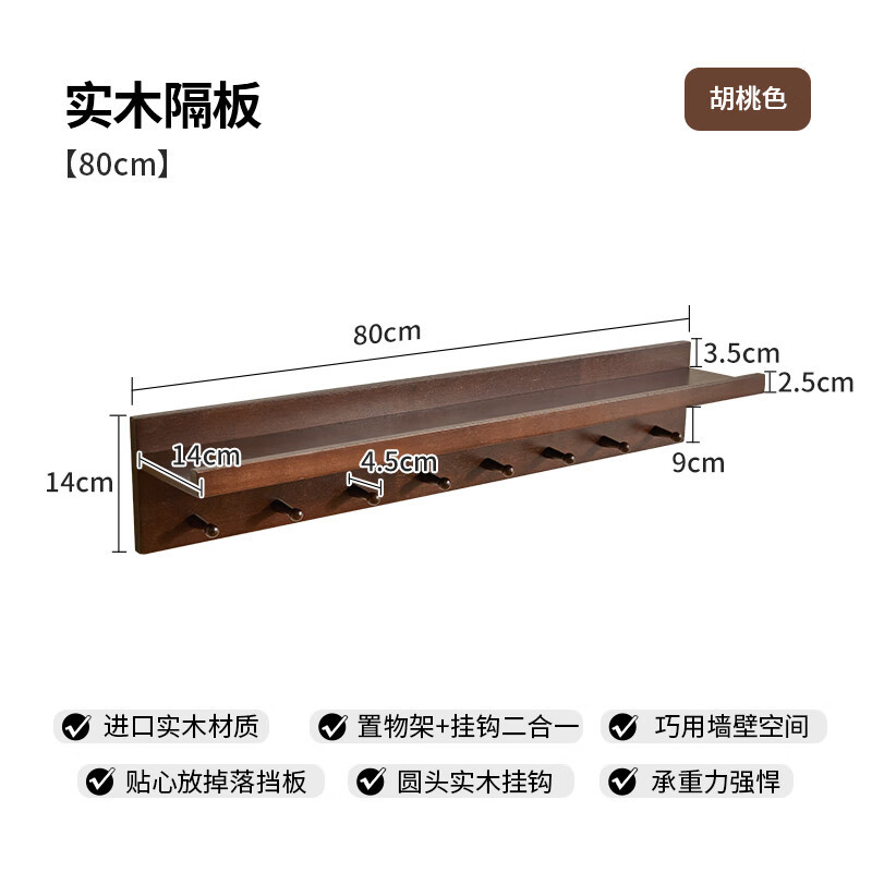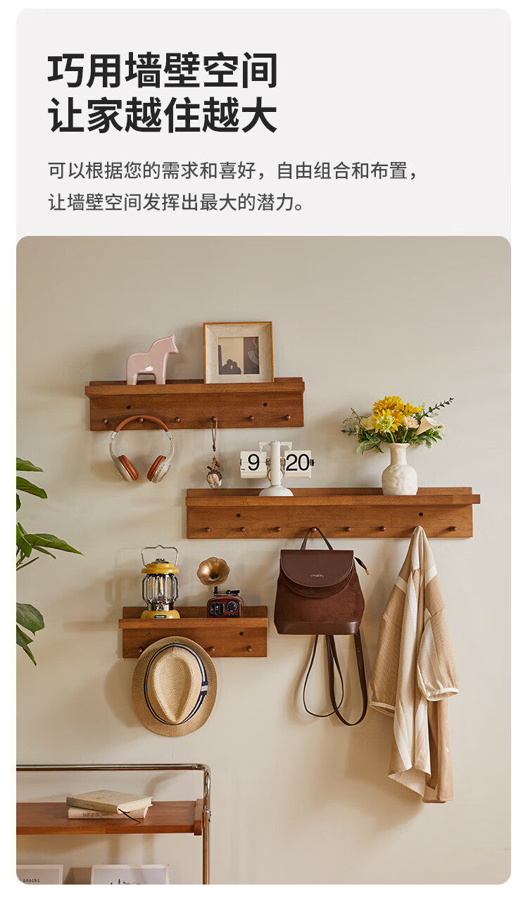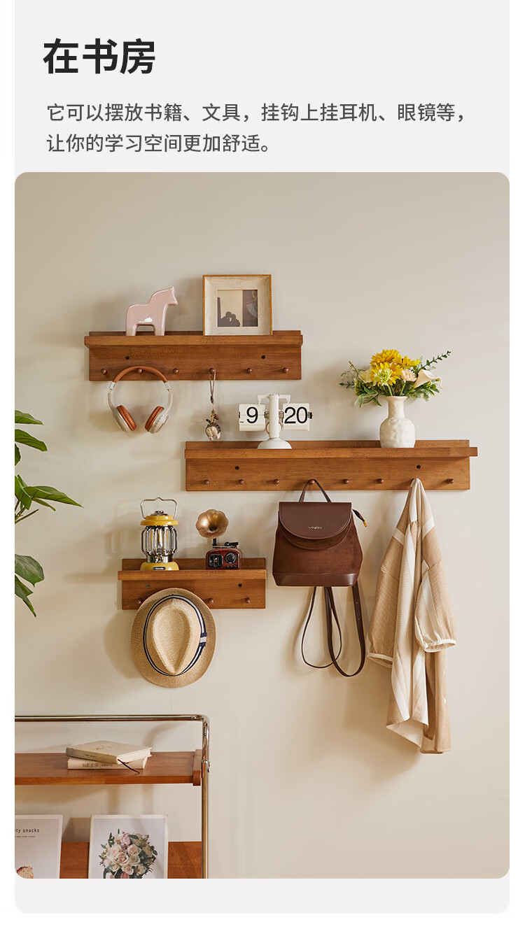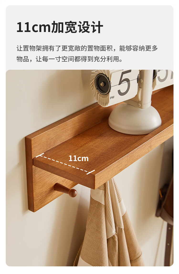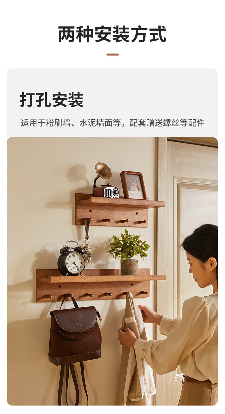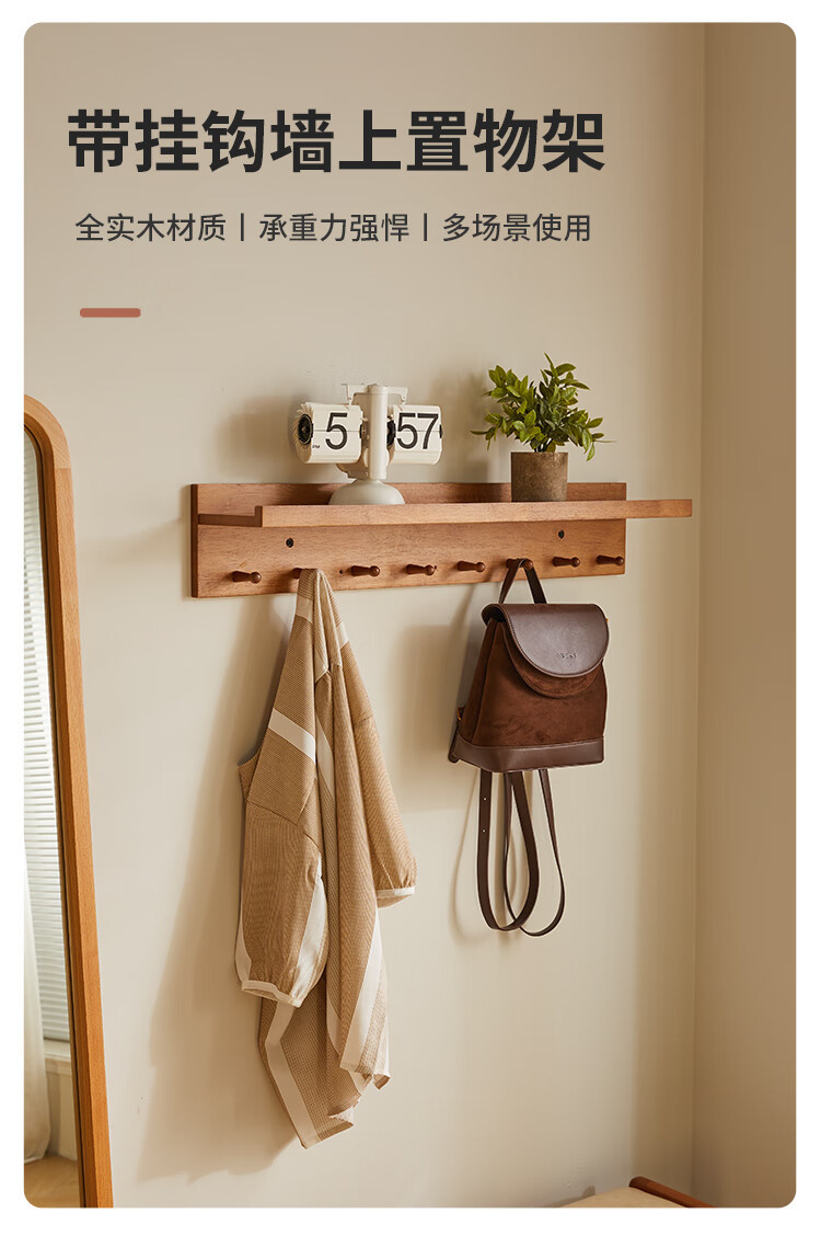 墙上置物架实木壁挂创意门厅挂衣钩带隔板衣帽架层板免打孔收纳架