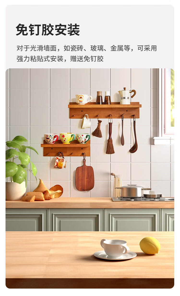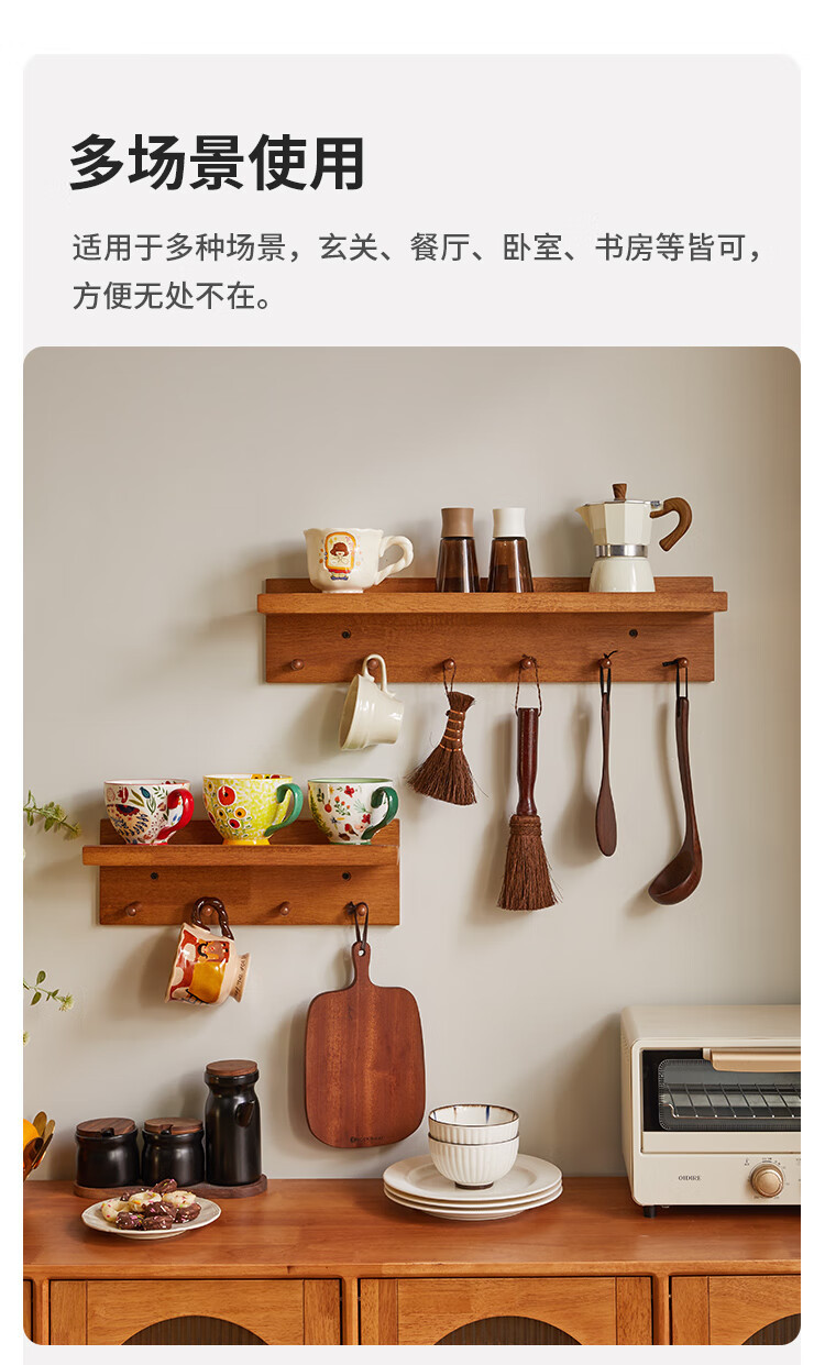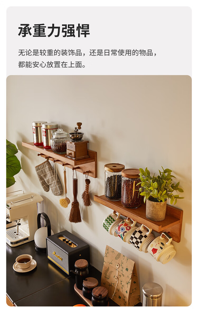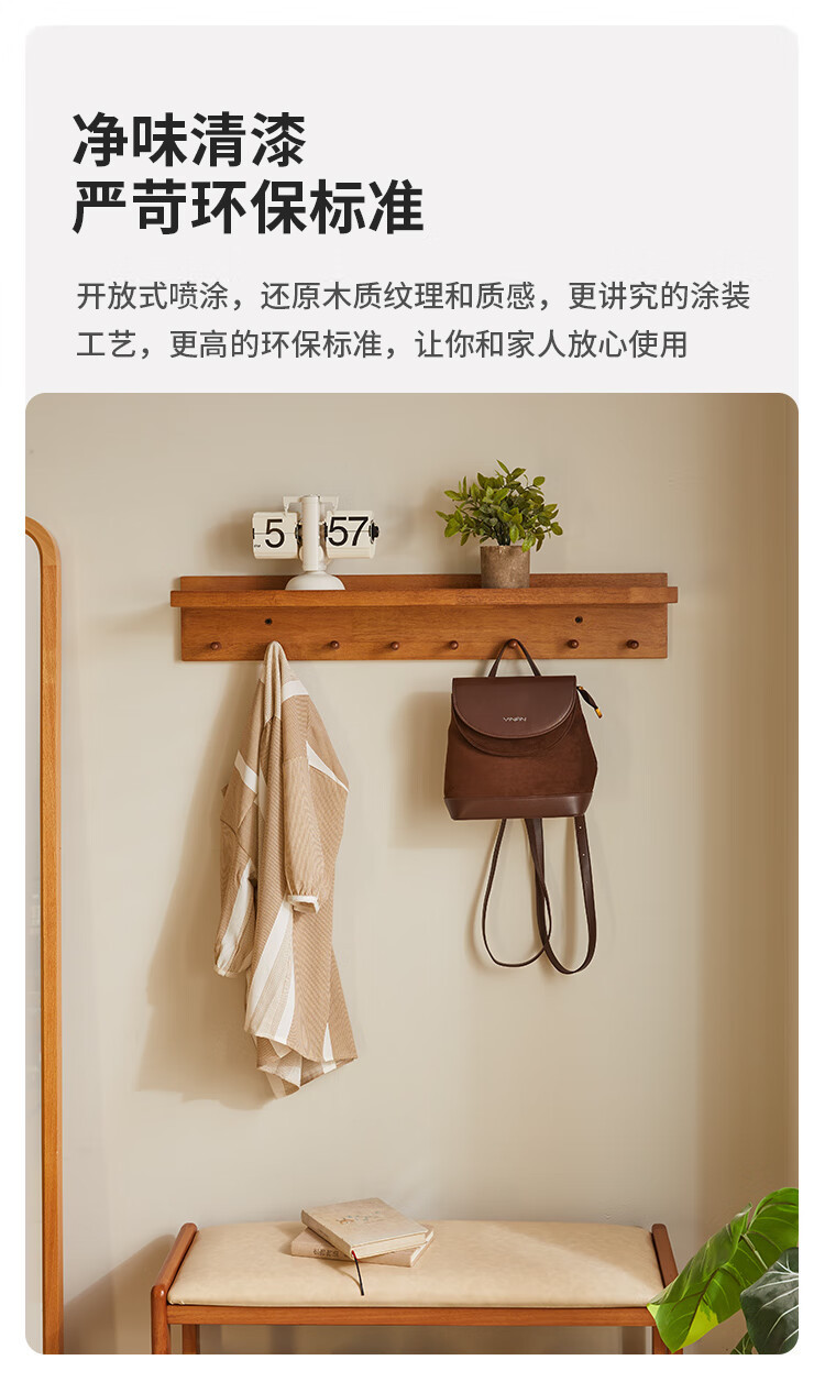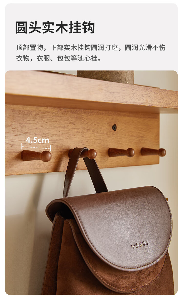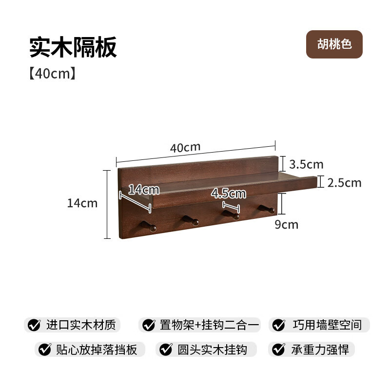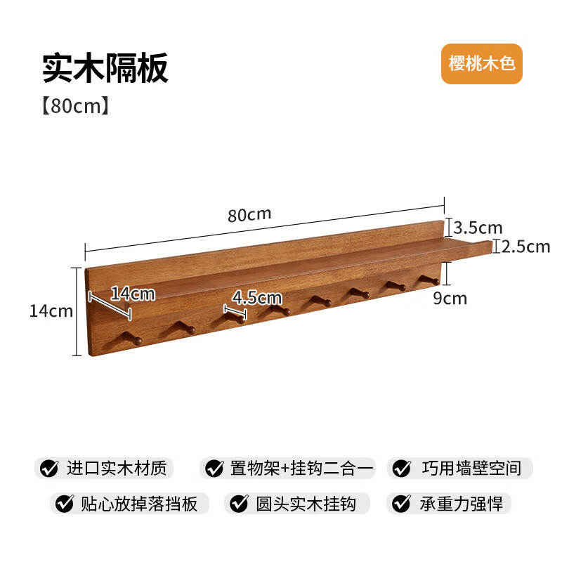 墙上置物架实木壁挂创意门厅挂衣钩带隔板衣帽架层板免打孔收纳架