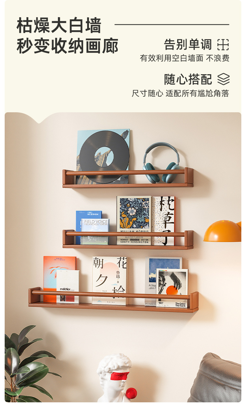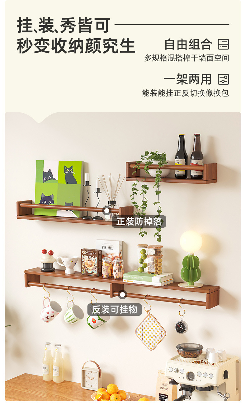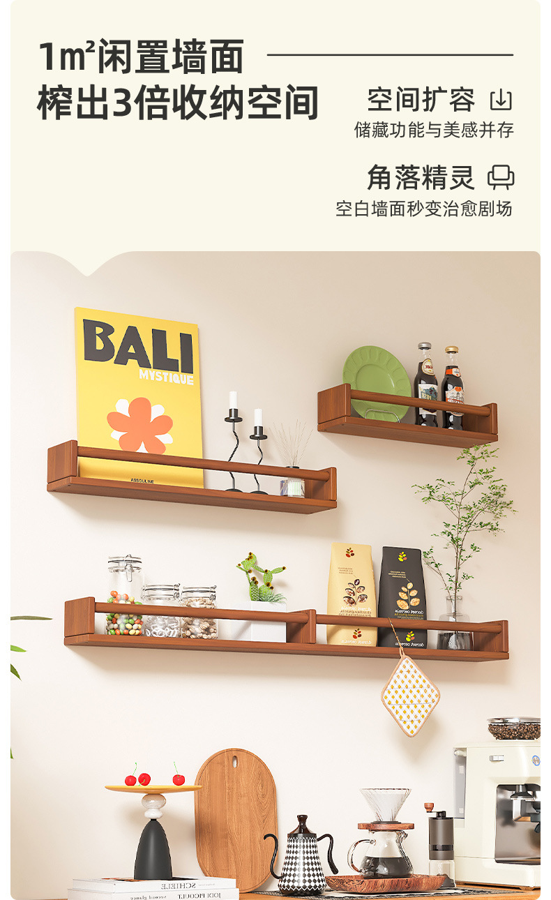 简约壁挂式两用置物架客厅餐厅墙面实木隔板上电视墙上装饰收纳架