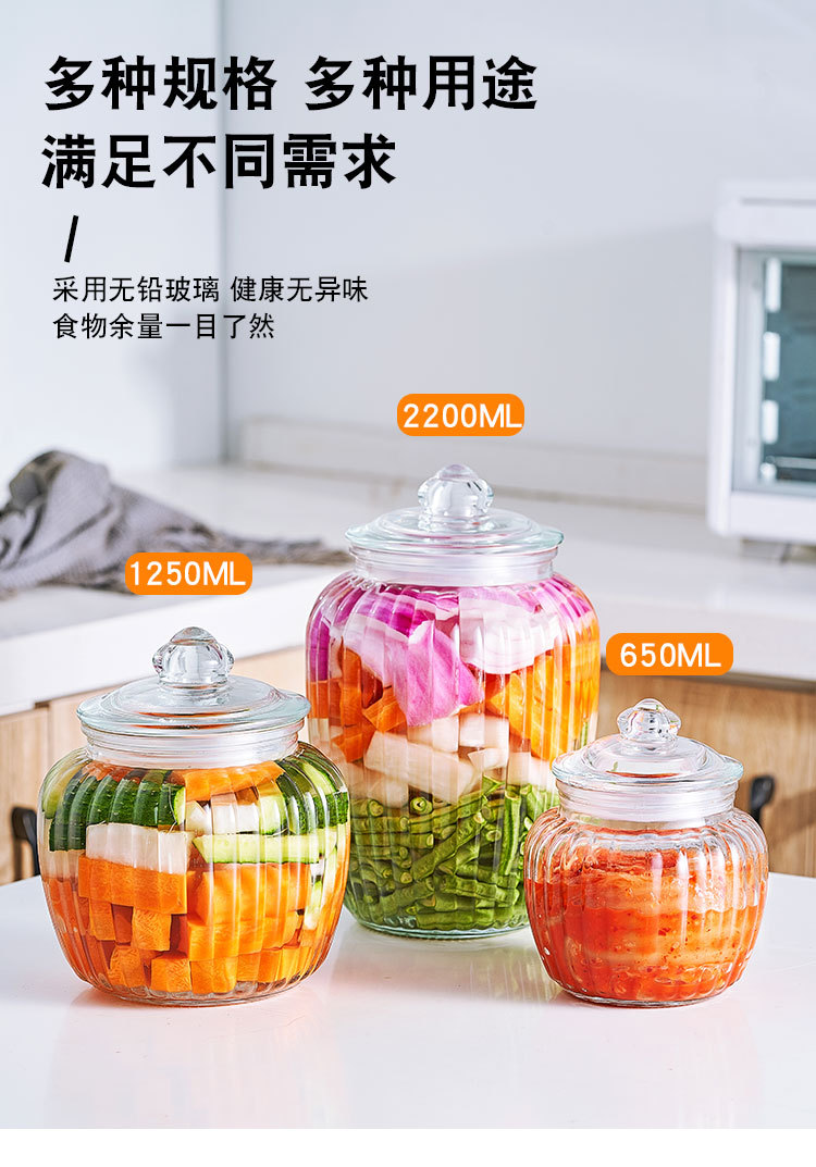 【代发】217玻璃储物罐厨房收纳玻璃密封罐泡菜坛子腌菜杂粮储物