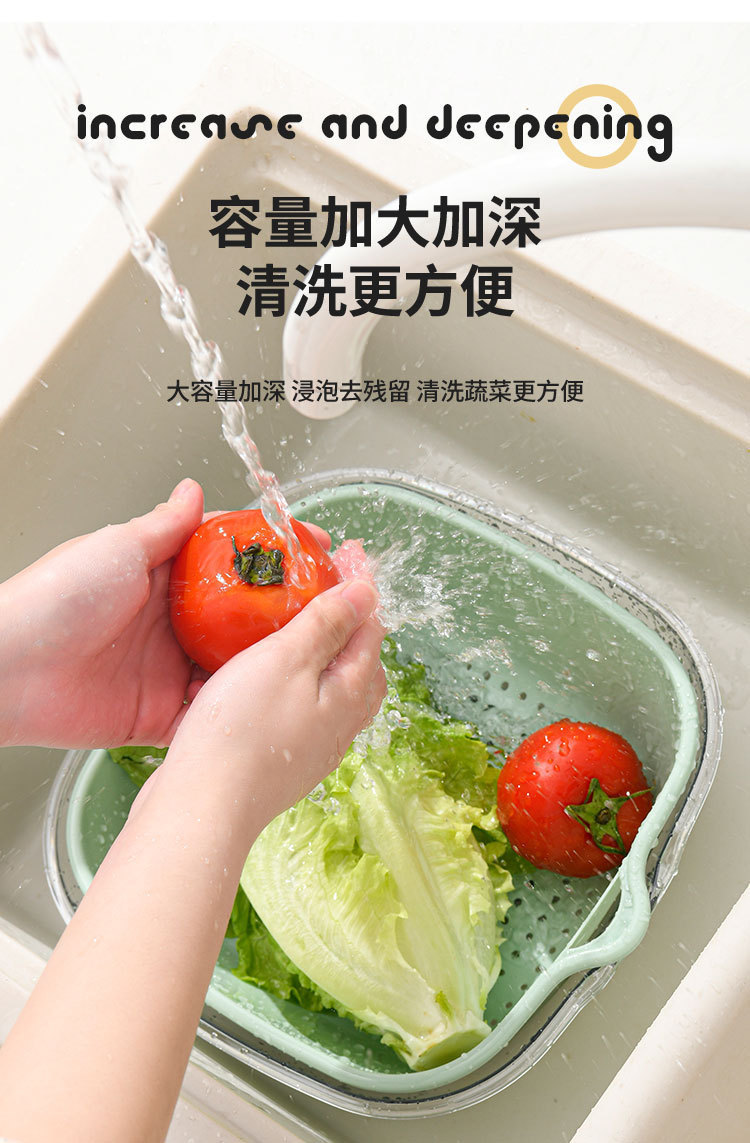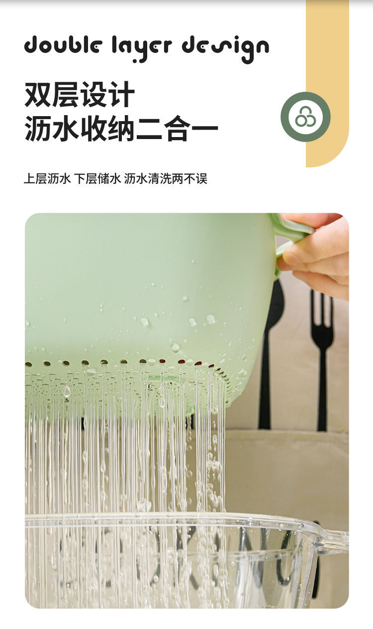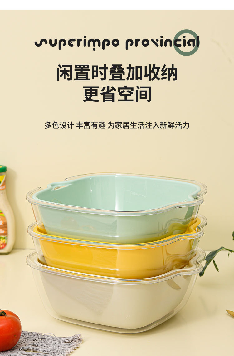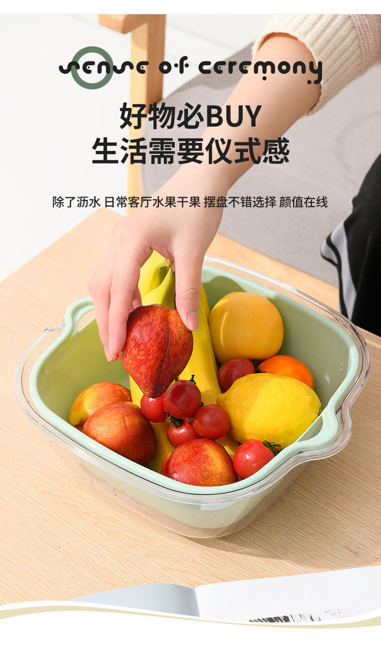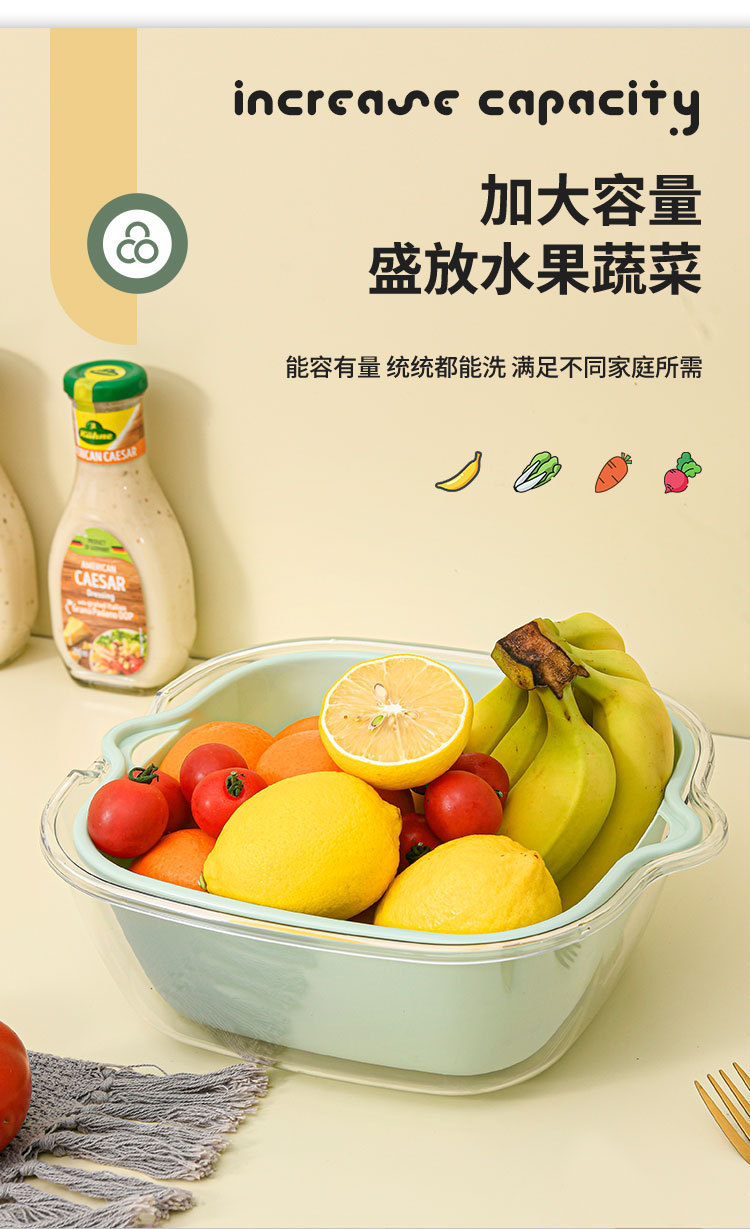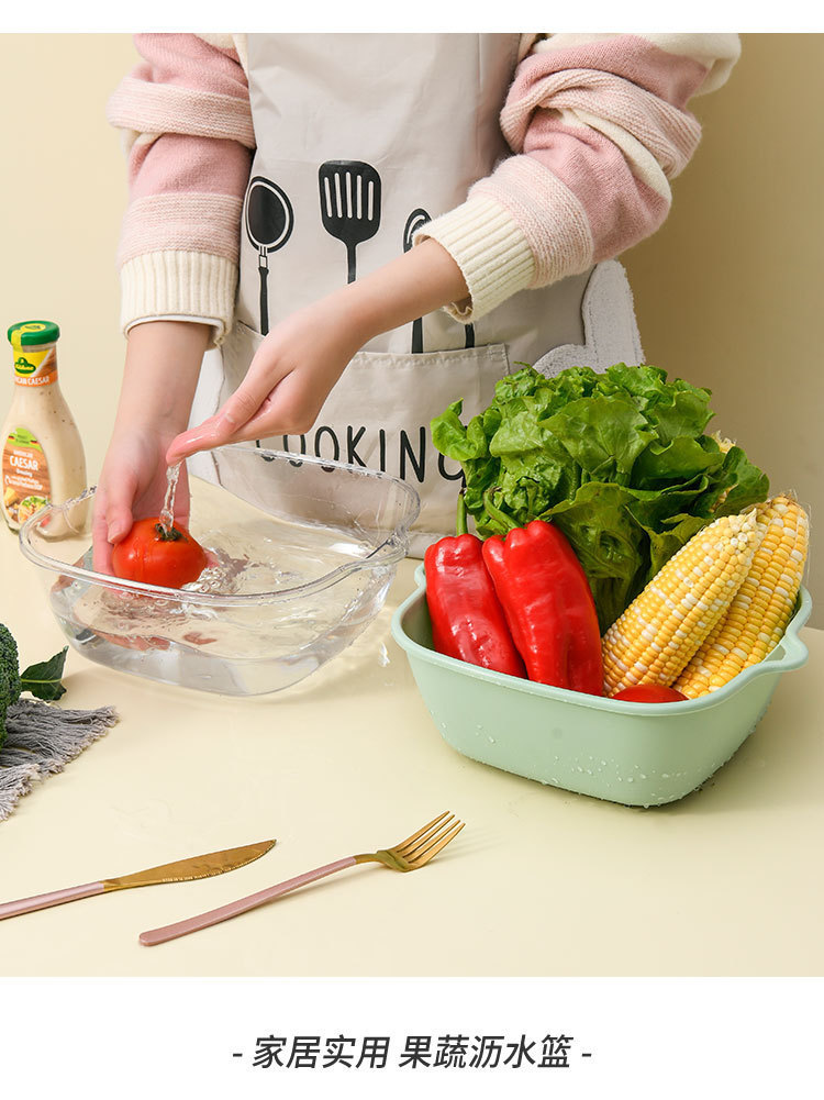 洗菜篮双层PET透明沥水篮家用厨房菜篮子果盘多功能洗水果滤水盆