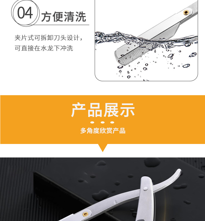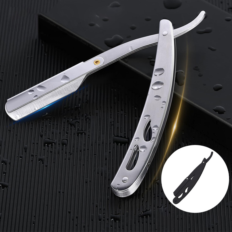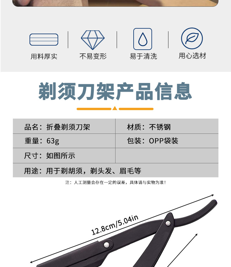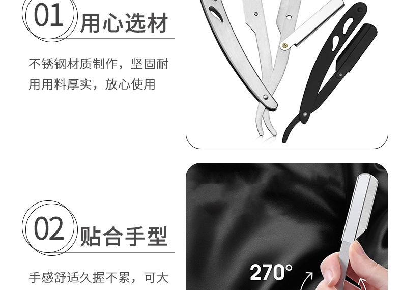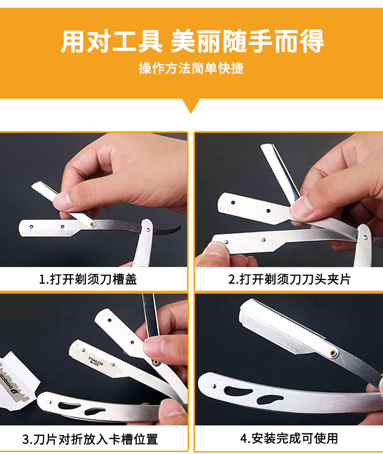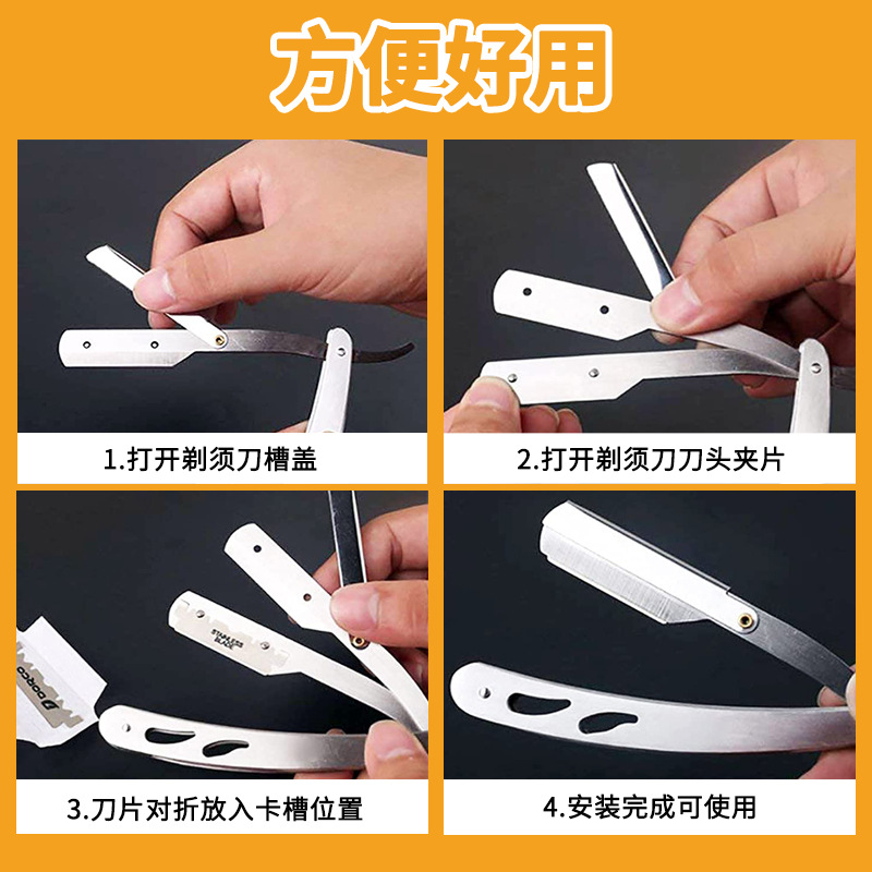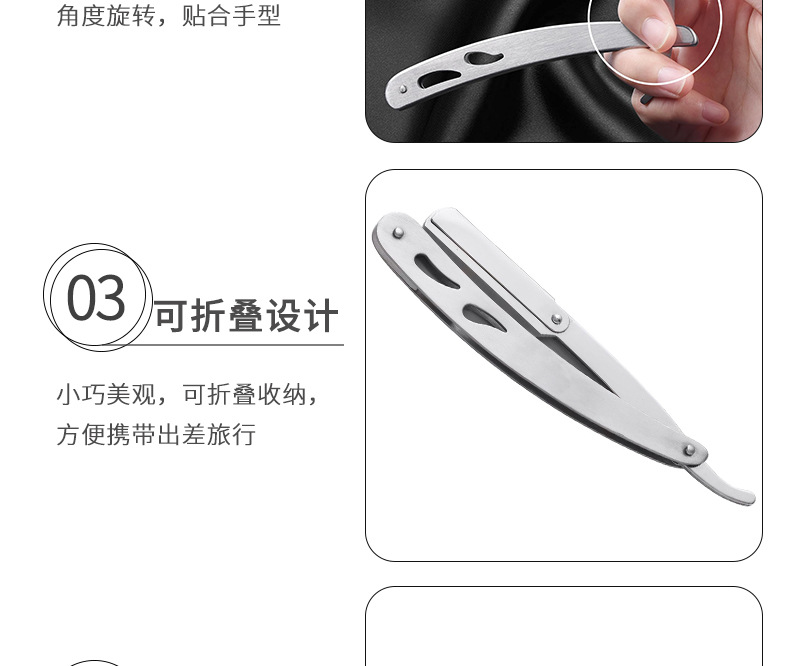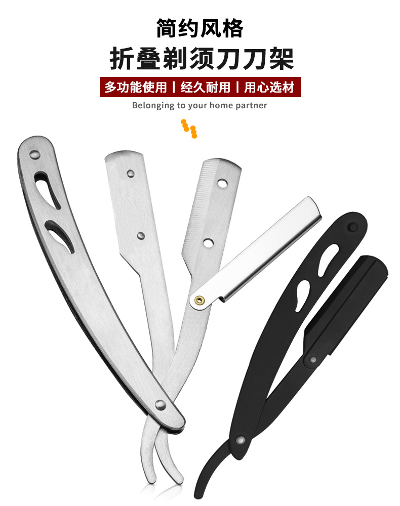 不锈钢折叠式剃须刀 老式男士理发剃刀面部修容刮毛手动刮胡刀架